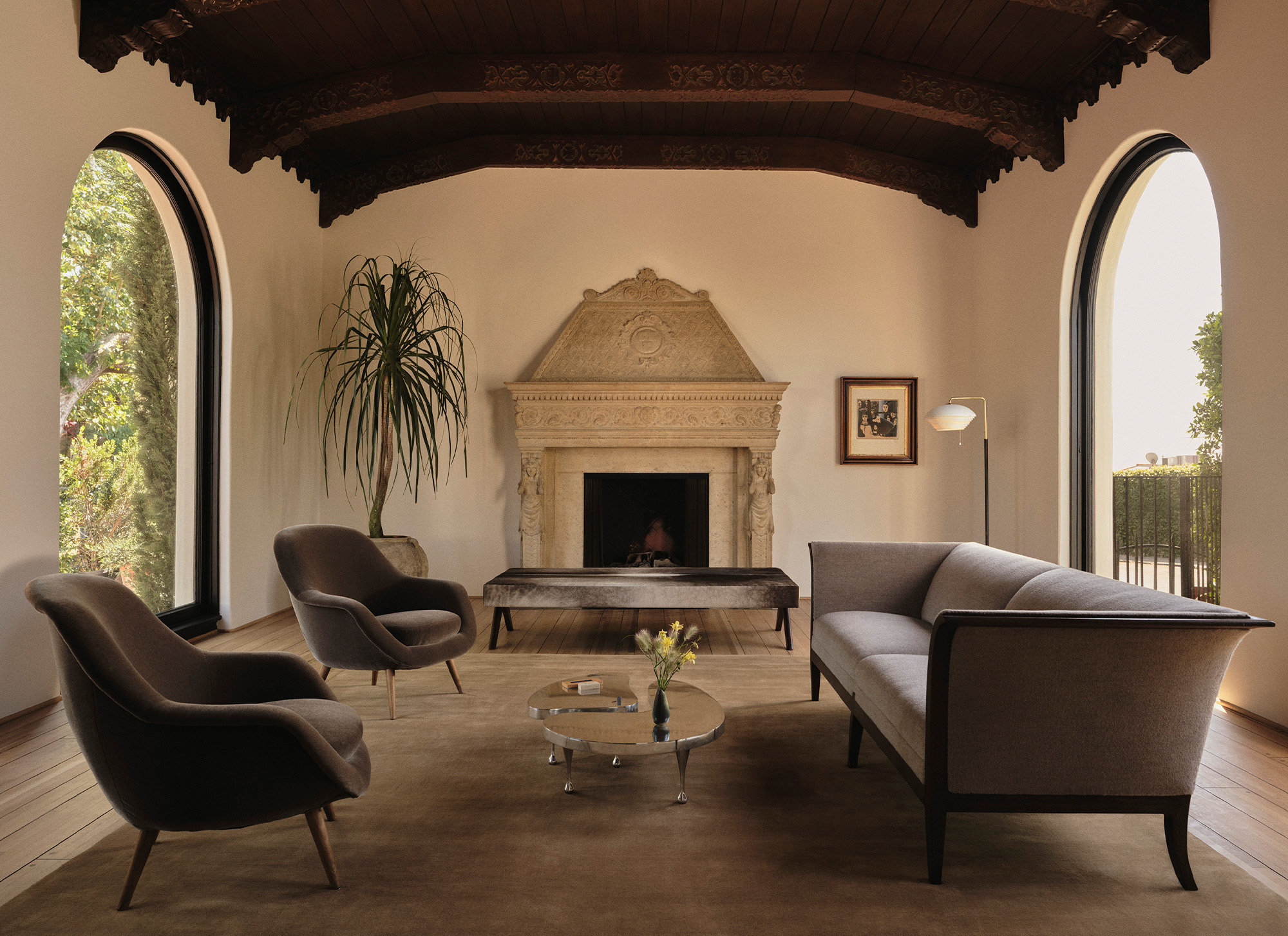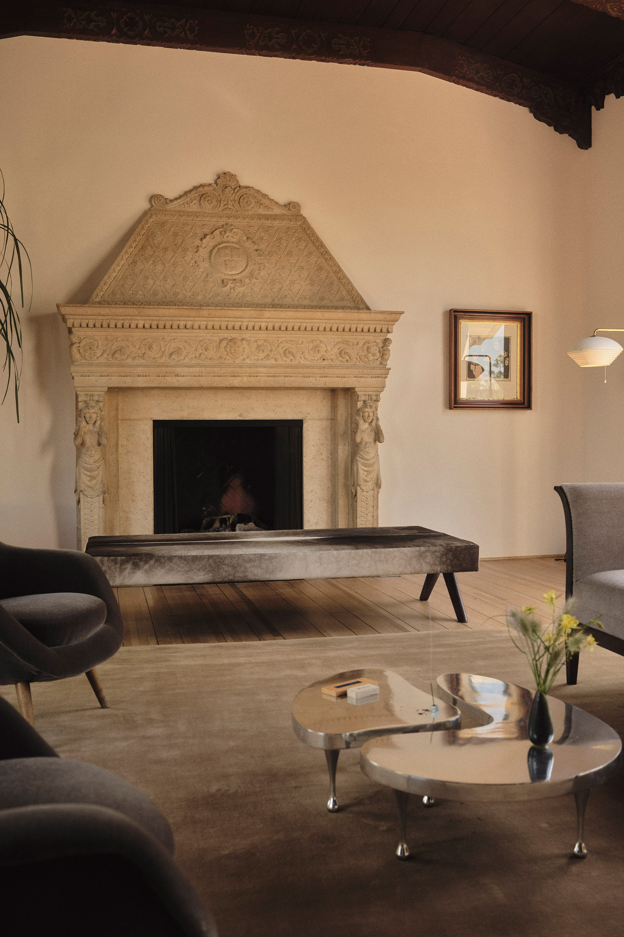 The furnishings layer European modernism into the space: 20th-century pieces by Fritz Henningsen, Alvar Aalto, Hans Bergström, Tito Agnoli and others lend character and patina without overshadowing the architecture. Every piece sits with purpose, reinforcing the home's balance between elegance and ease.