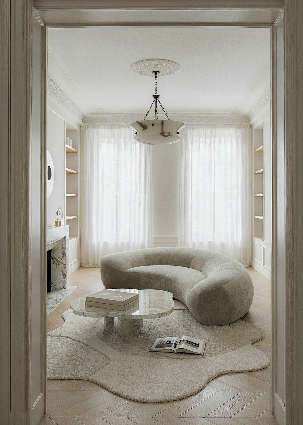 In the center of New York’s energy, this apartment offers something rare: a sense of quiet. The design pairs restored classical details with modern restraint, creating a home that feels both elegant and deeply serene.