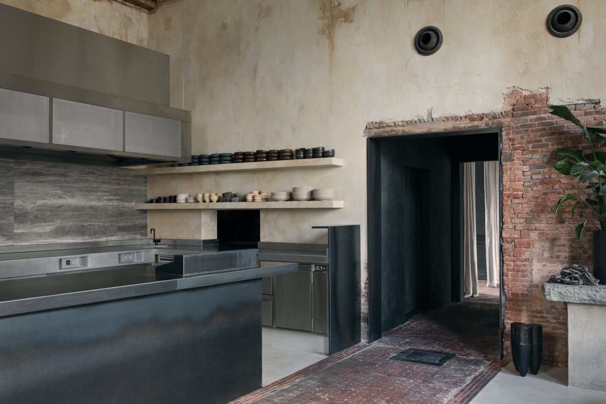 Their collaborated with fellow Belgian designer Arno Declercq who created a sculptural bar counter in burned wood and blackened steel.A moody, cosy backdrop to savour chef Njegos Kalicanin’s genuine cuisine.