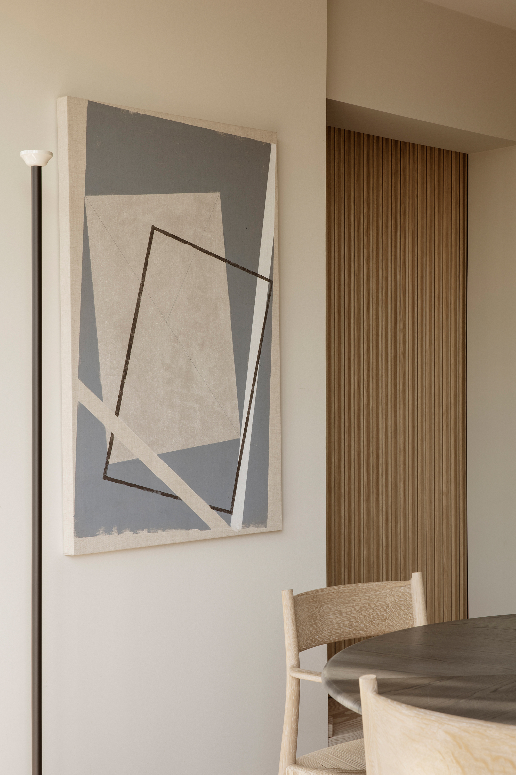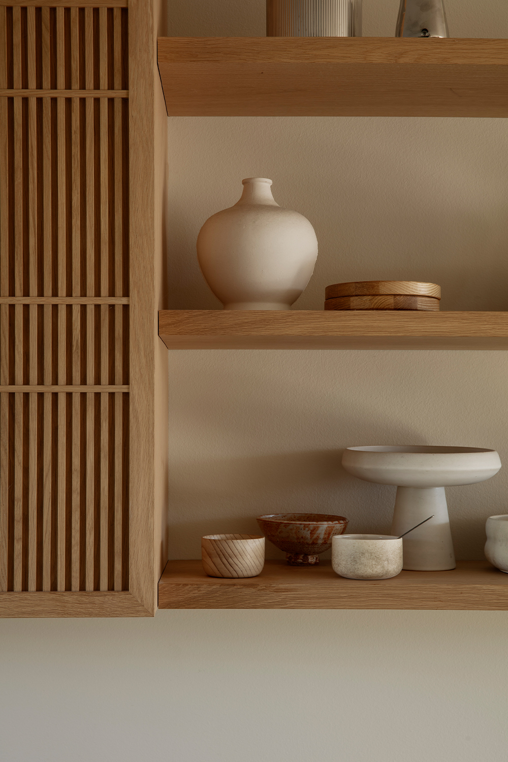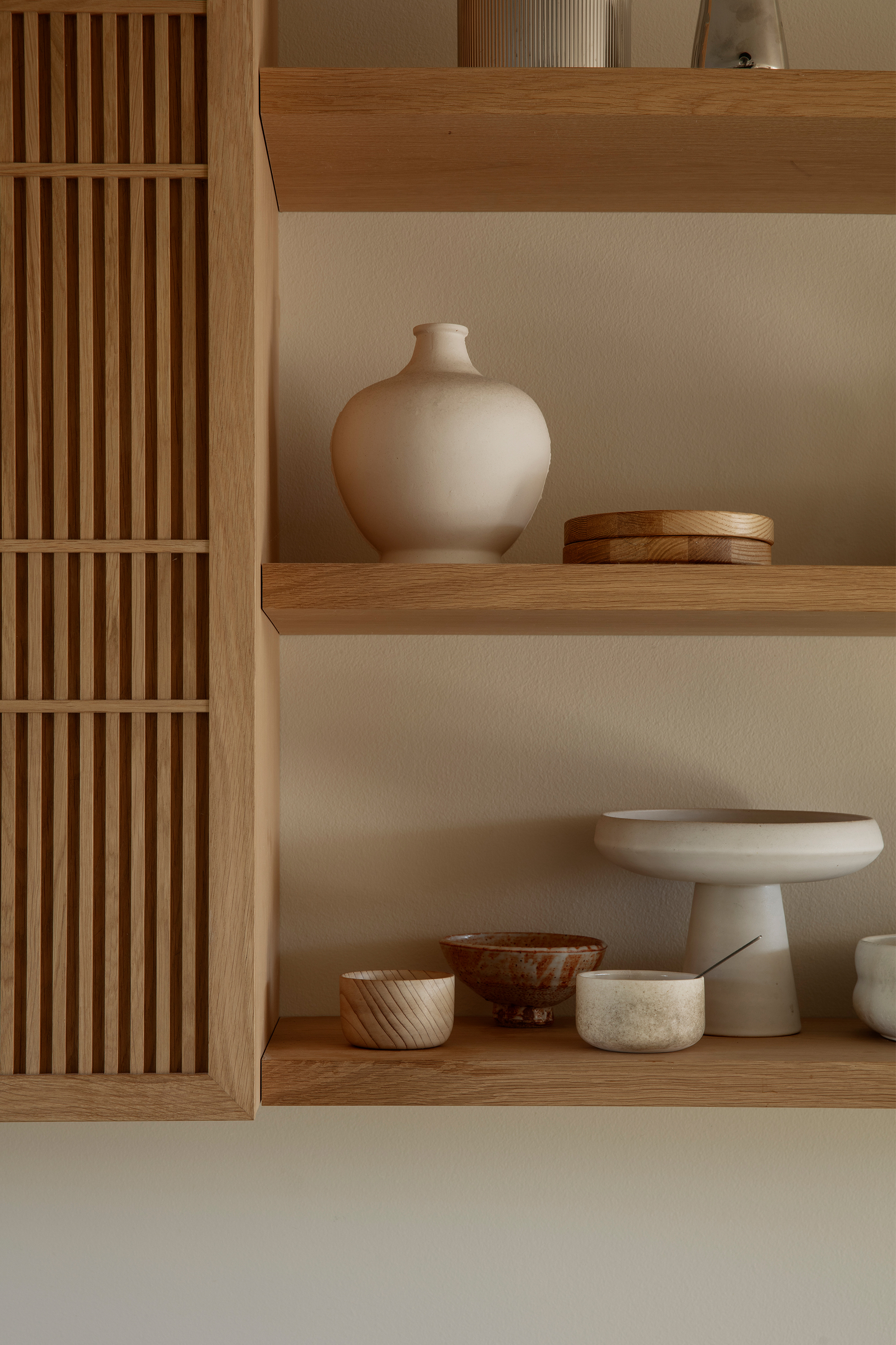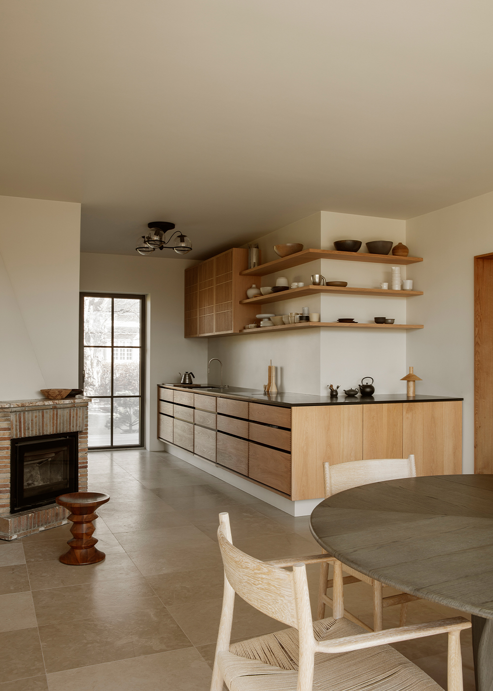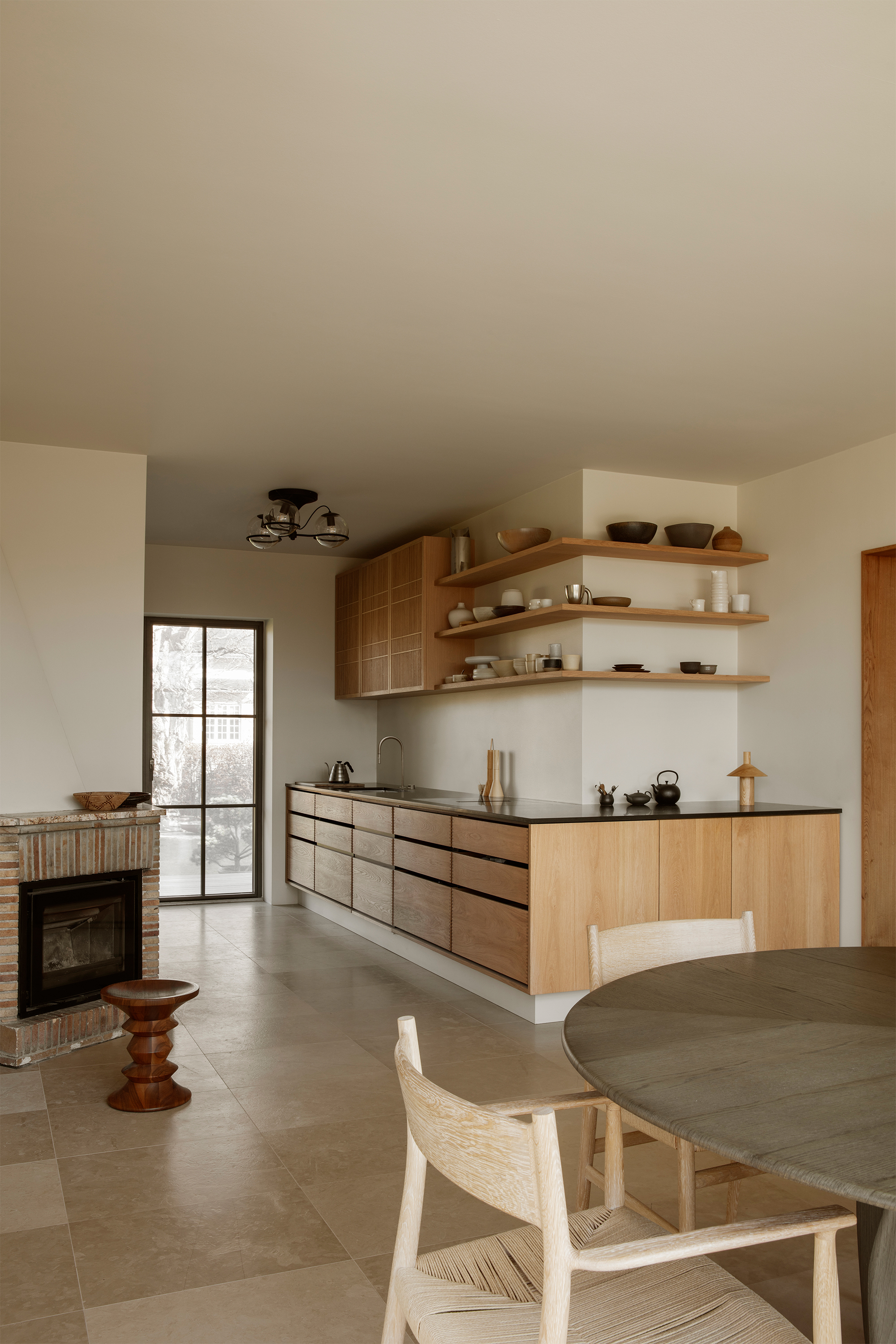 Patina is something that is equally important to both Garde Hvalsøe and Edgecombe. They share the sentiment that the best high-quality materials age with dignity. Wood and stone were employed as key materials as the patinas develop over time and gain character. Yasmin also discusses her broader design philosophy, “My approach is always grounded in a passion for details, materials, colours, textures, light and beauty. How does the floor feel underfoot? How does a surface change over time? I believe when design works, it is felt in the body and it has an energy.”The Garde Hvalsøe kitchen selected was the Solid Minimal in oak wood with a black granite tabletop, and tall cabinets in linoleum. The upper cabinets feature Garde Hvalsøe Koshido fronts, which were designed in collaboration with fellow Danish brand OEO Studio.