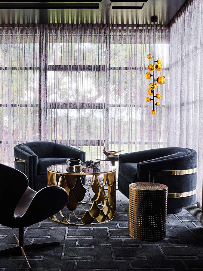 This grand estate in Victoria is a country house like no other. The two-storey, five-bedroom residence is glamorous, luxurious and sexy, a treasure trove of vibrant colours and lavish finishes set against a dramatic backdrop of black-stained timber, ebony and brass.
