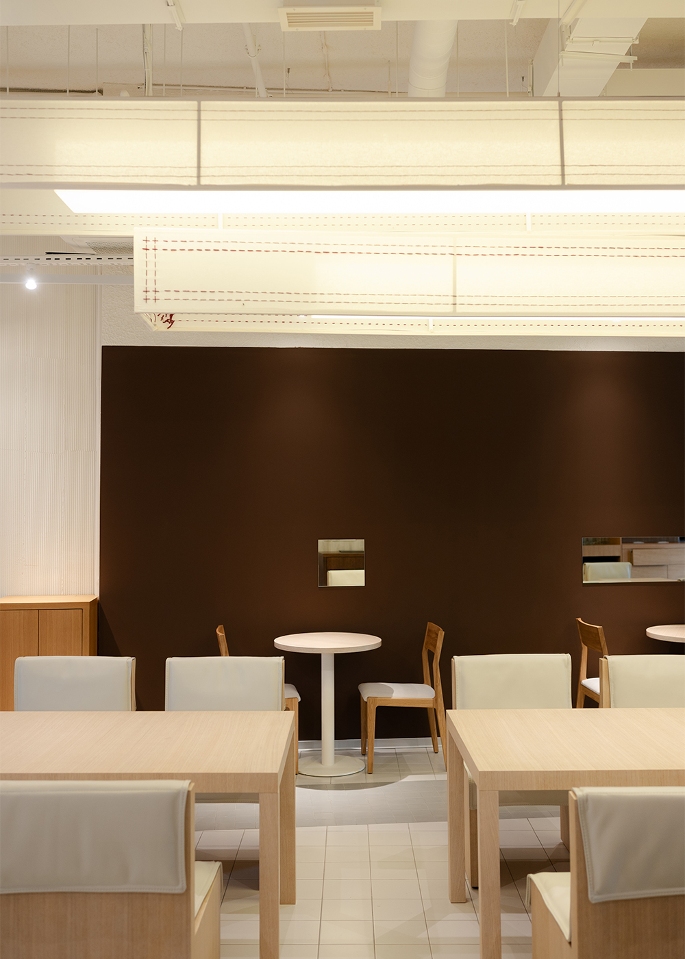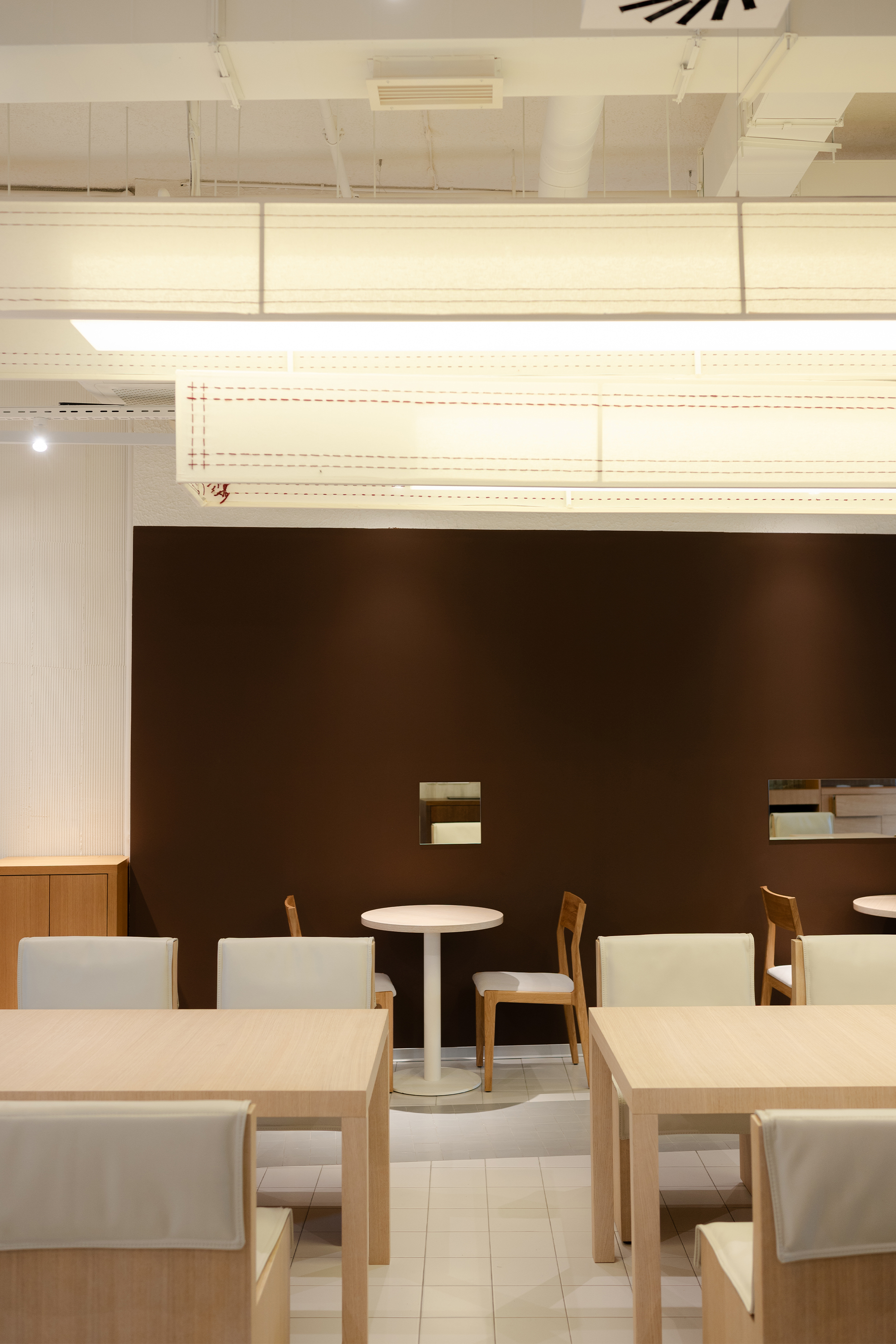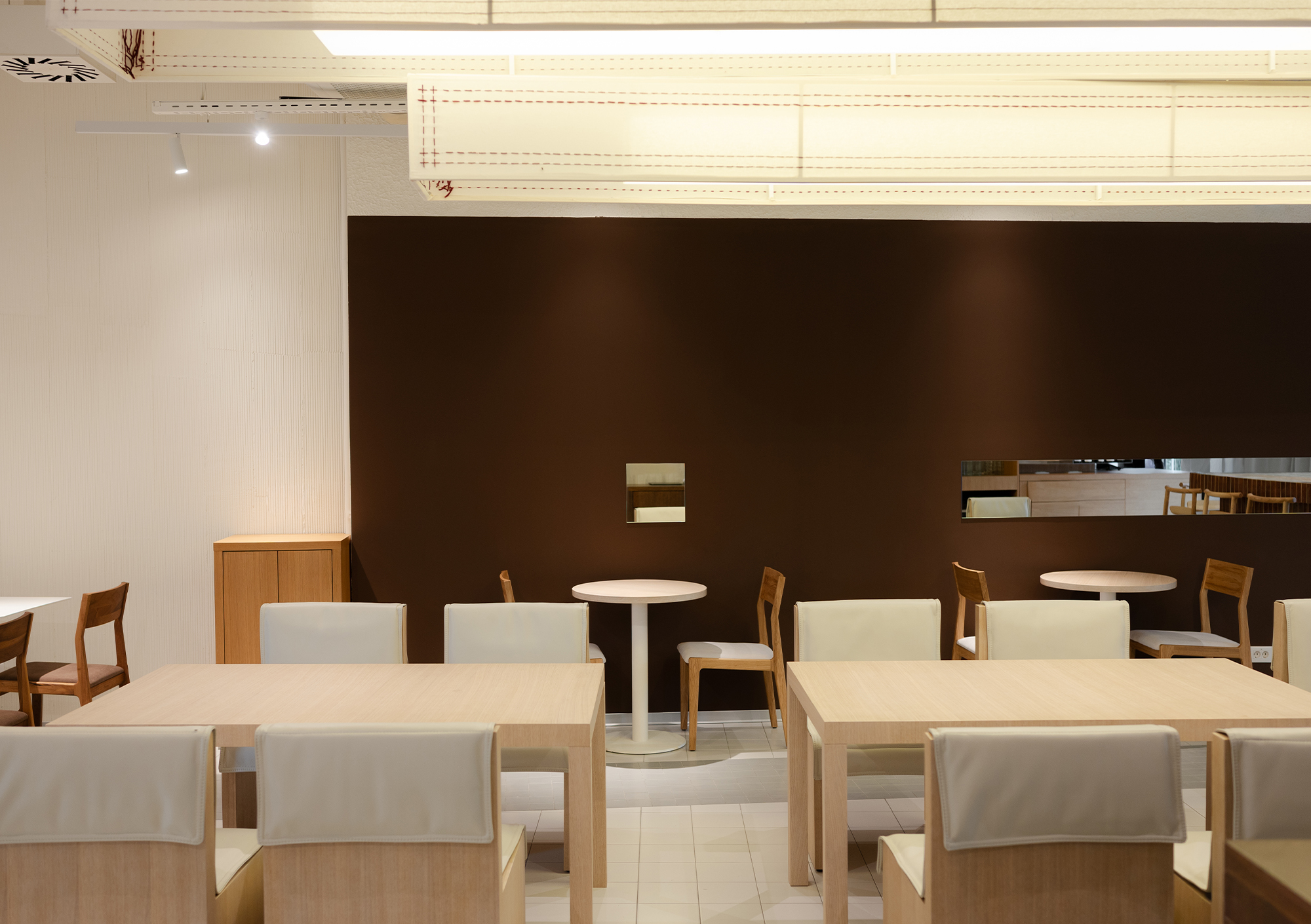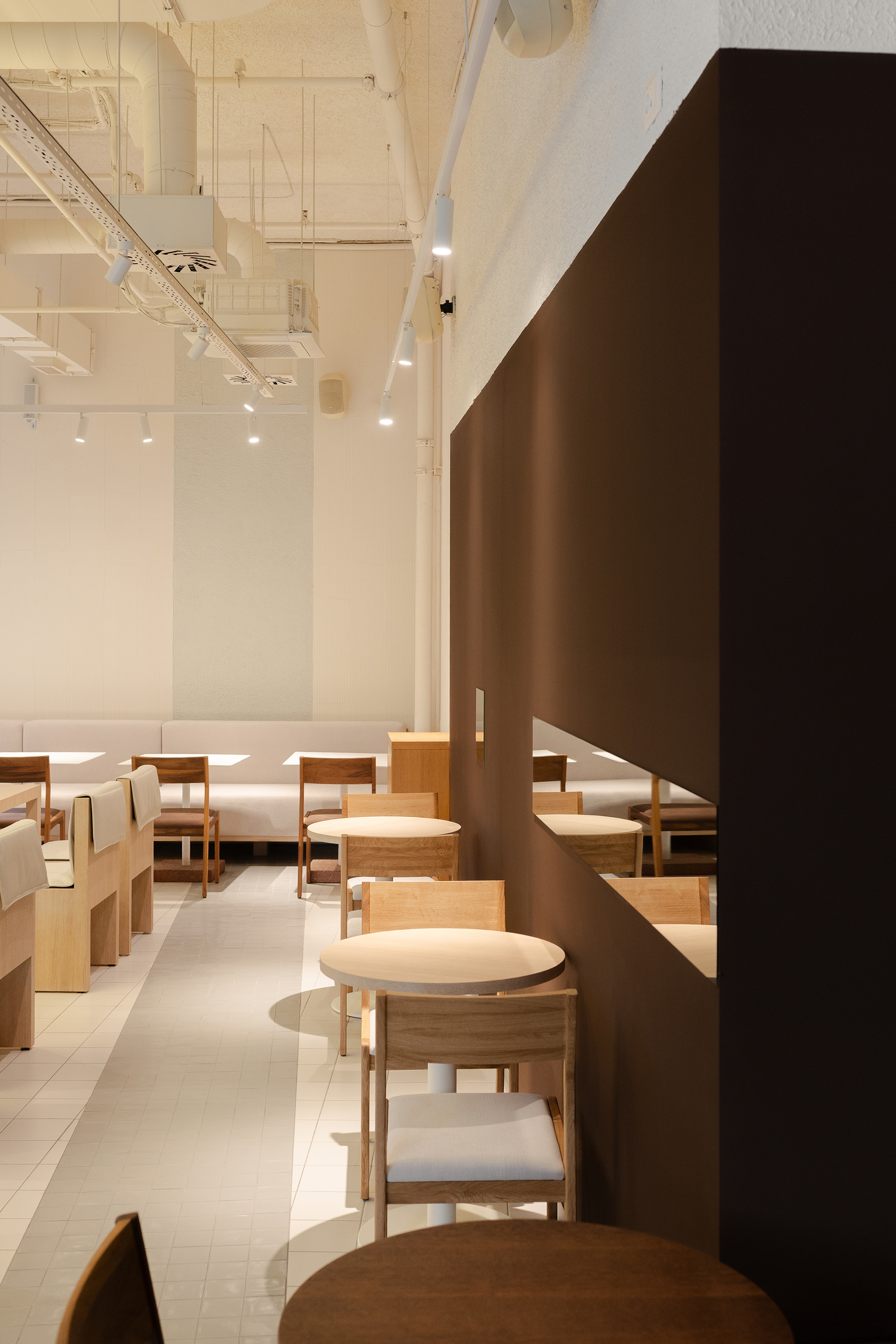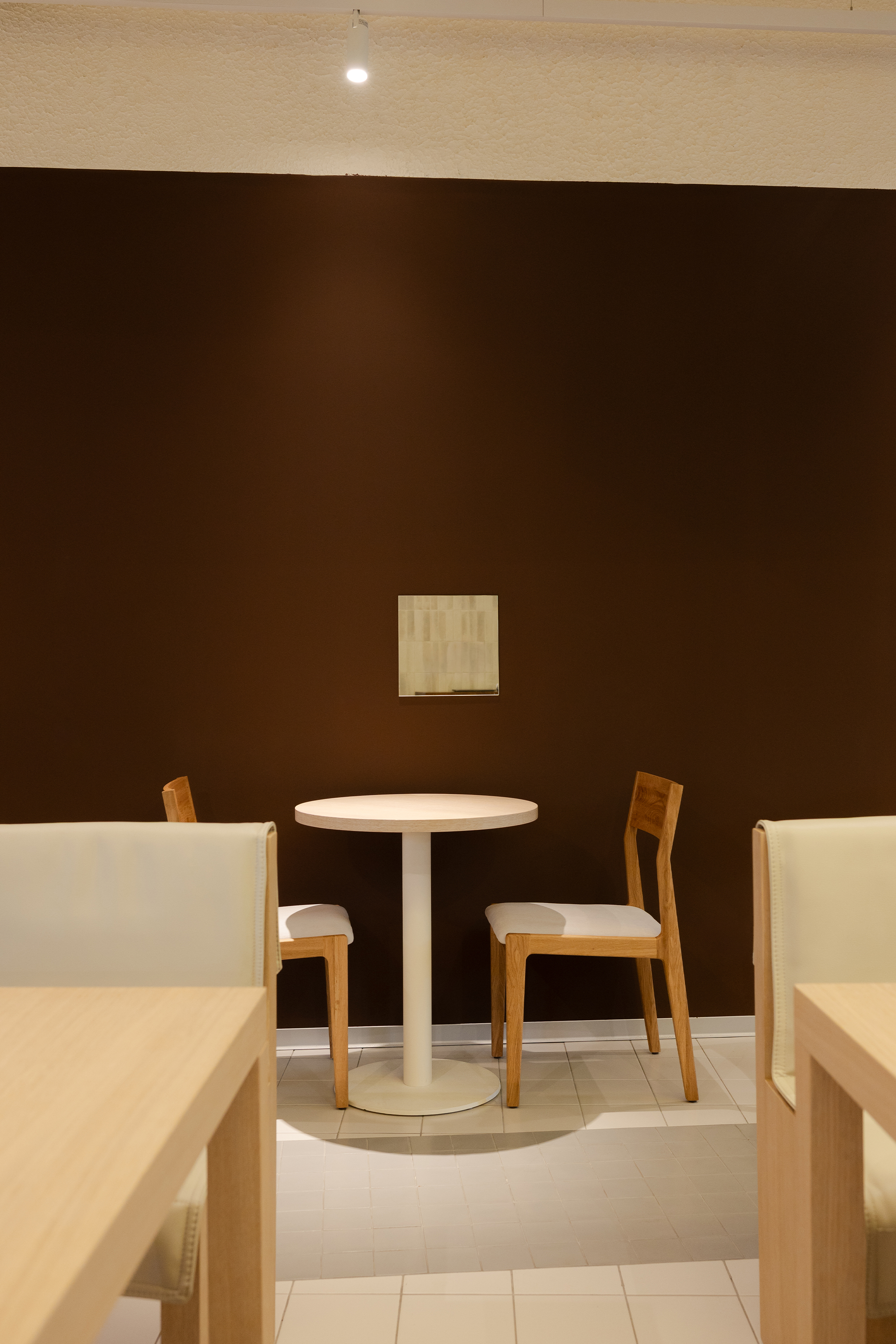 Functionally, the bakery and bistro are united within one space with two entrances, accommodating various formats — from a quick breakfast with coffee and pastry to a relaxed dinner with a glass of wine. Natural materials such as wood veneer, concrete, fabric, and stainless steel define the palette. The tactile contrast of surfaces is complemented by subtle ceramic tones, while embroidered details add a graphic accent. The careful balance of materials and forms creates an interior that feels warm and sensory, yet rational and functional.