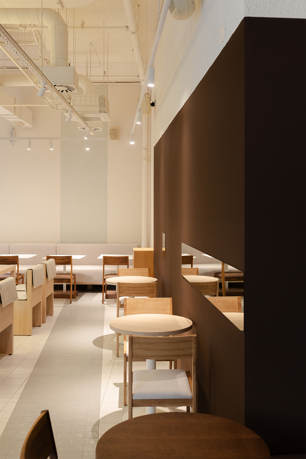 Guests can observe not just the final product but also the stages of its creation: they can peek into the kitchen, notice the shape of the baking mold, or sit on soft “puff-pastry” cushions at a shared table. The color palette is based on the brand’s identity, enriched with nuances that reference the local Serbian context. The space is designed to shift its atmosphere throughout the day — morning, afternoon, and evening — with materials and shades selected to match each scenario.