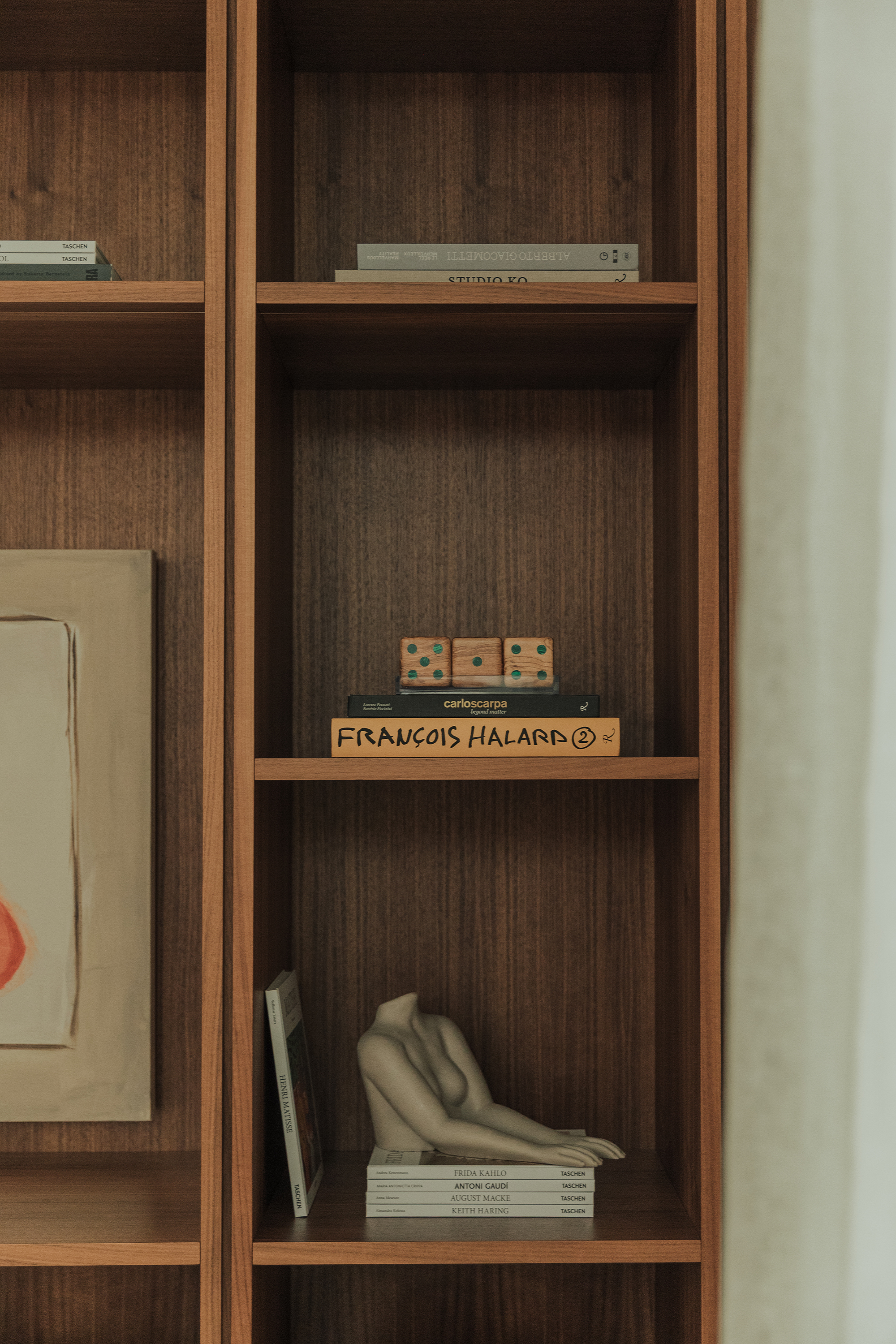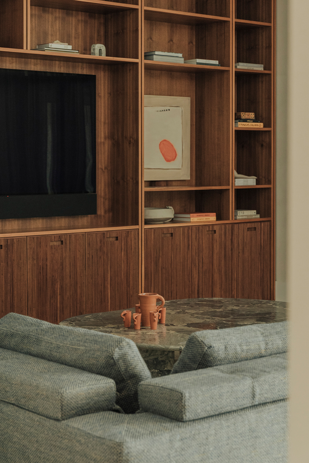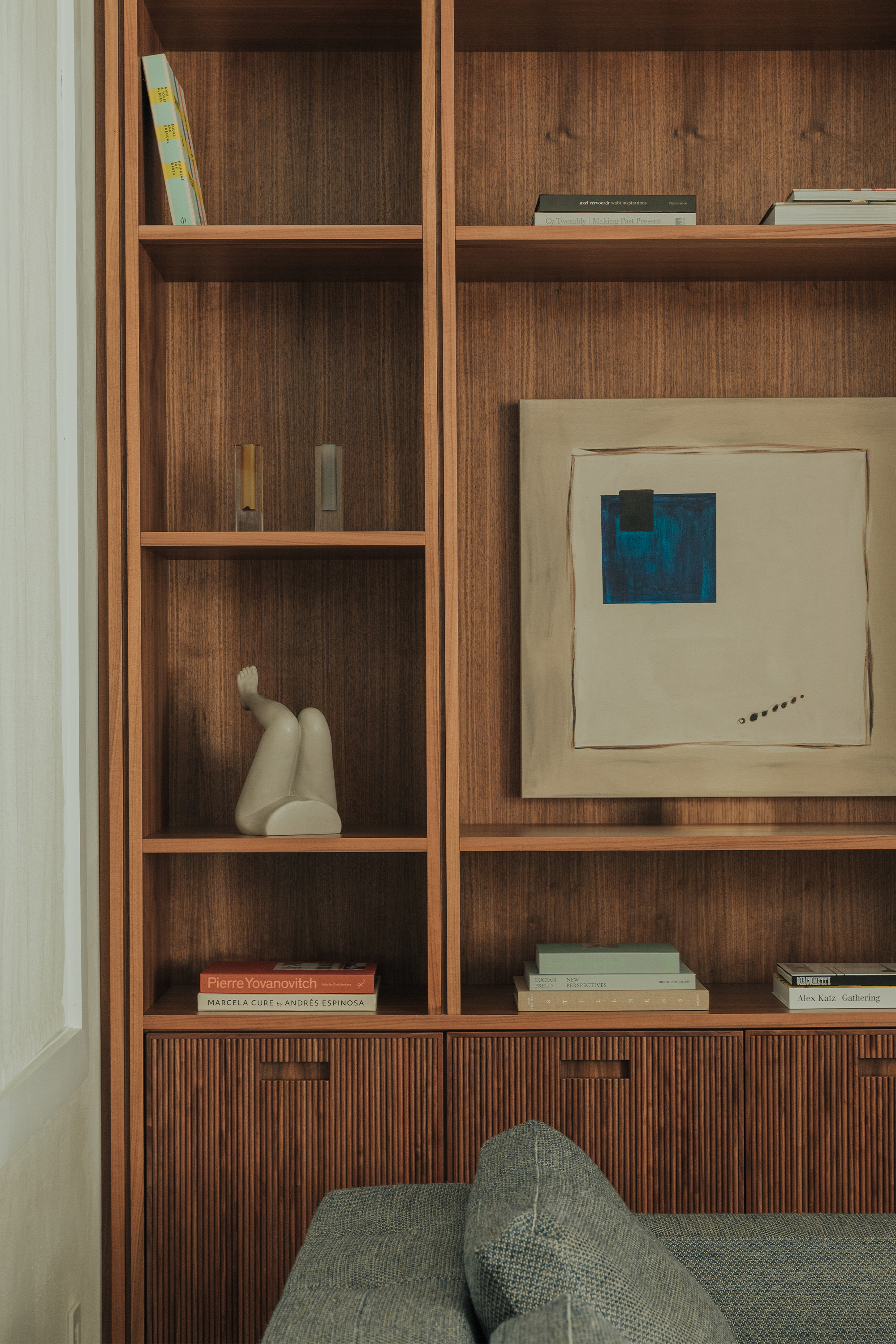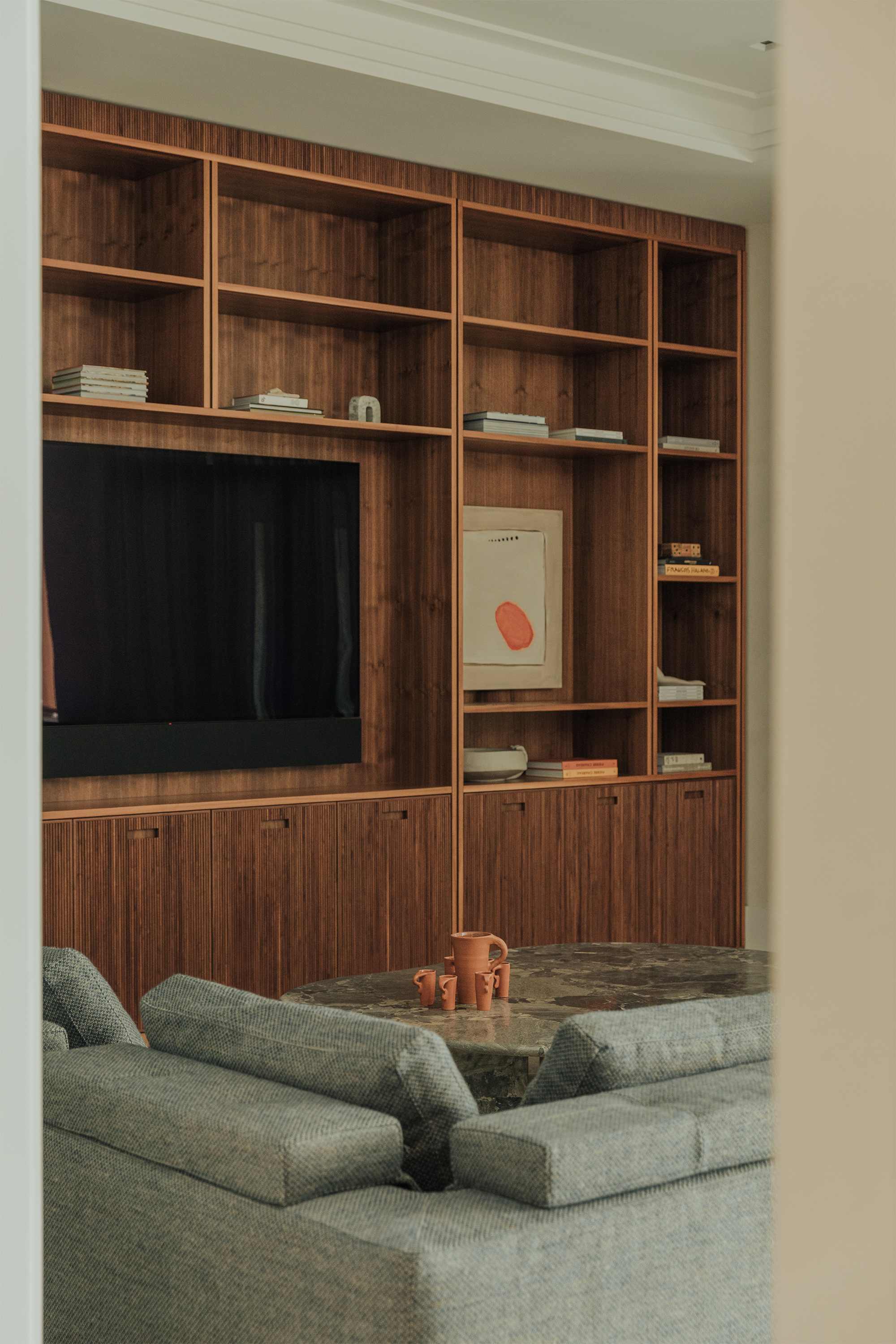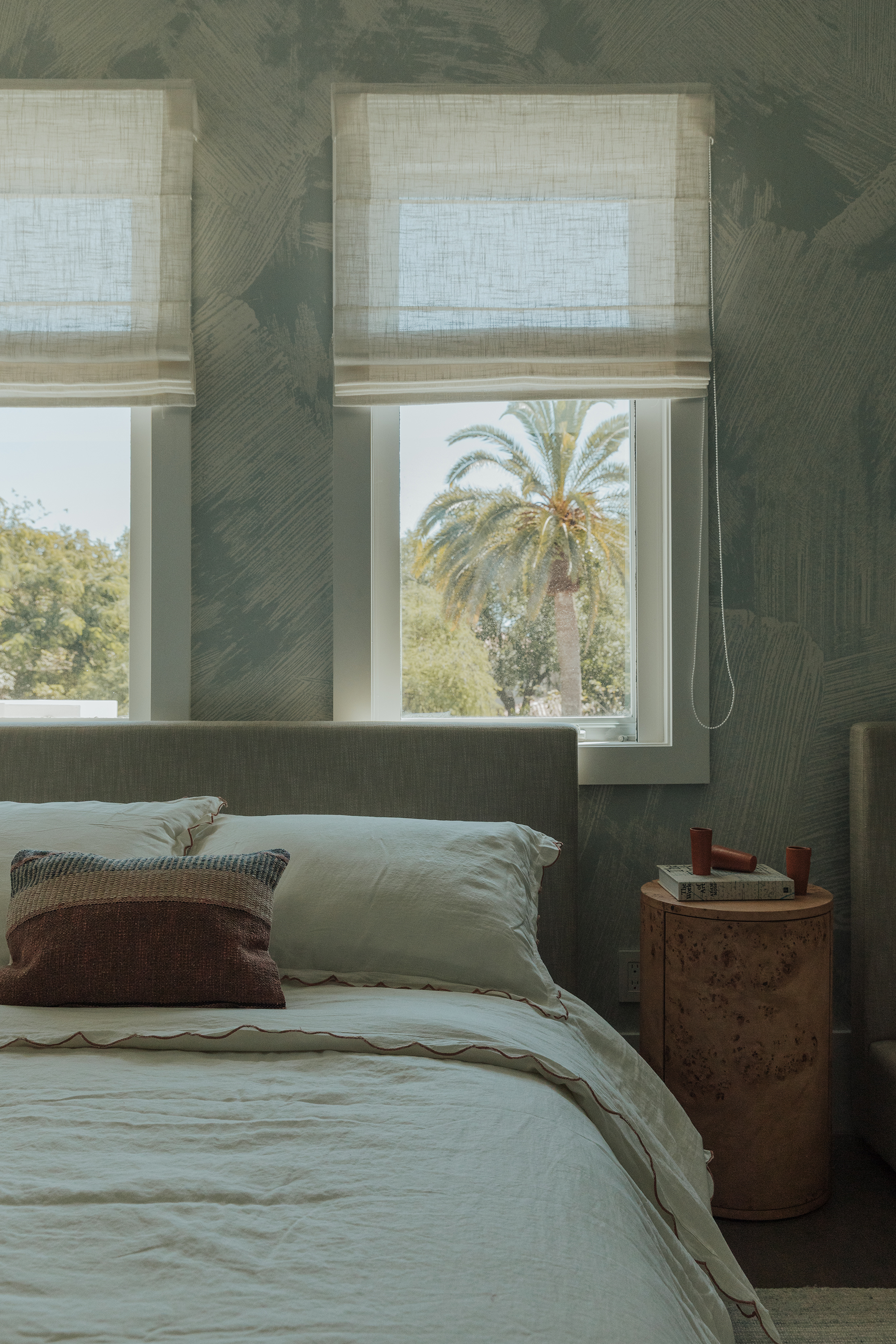 Bedrooms: Across the bedrooms, thoughtful layers come through in textured wallpapers and custom-selected rugs by Beni Rugs and Soho Home. Furniture pieces introduce clean lines and sculptural forms, while carefully chosen lighting adds a warm, architectural glow. Artwork completes each space with a quiet, graphic elegance that feels curated and personal.