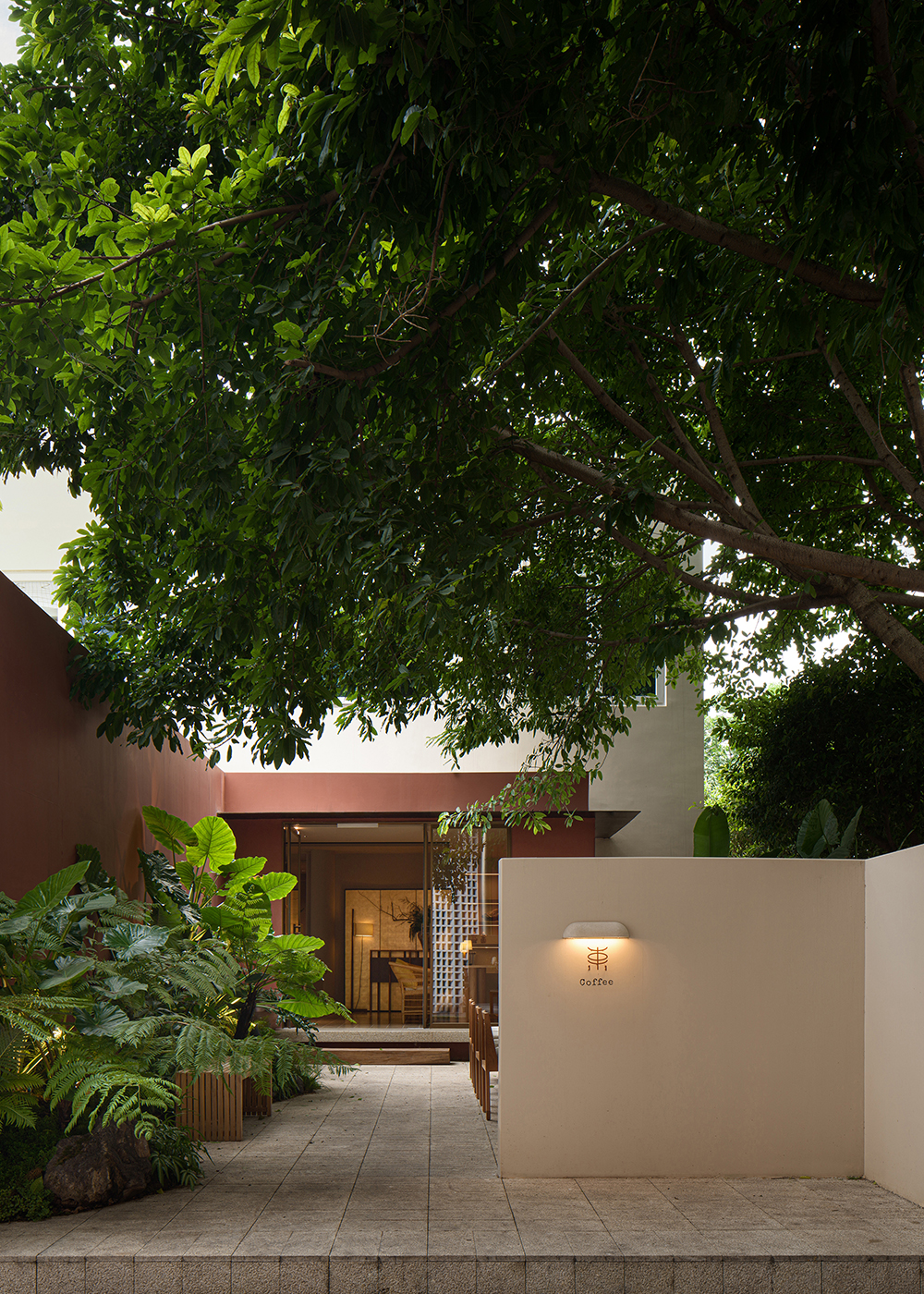 Inside, the aroma of coffee fills the air, but the soould of the space lies in the lush, green courtyard. A few umbrellas, scattered tables, and dappled sunlight filtering through the leaves create a living stage. This café has become the bridge betwwn design and the public, nurturing creativity in nature’s embrace. Instead of pursuing flashy forms, the design focuses on people’s authentic feelings within the space, breaking boundaries to bring the landscape indoors, achieving an aesthetic unity of commercial logic and humanistic spirit.