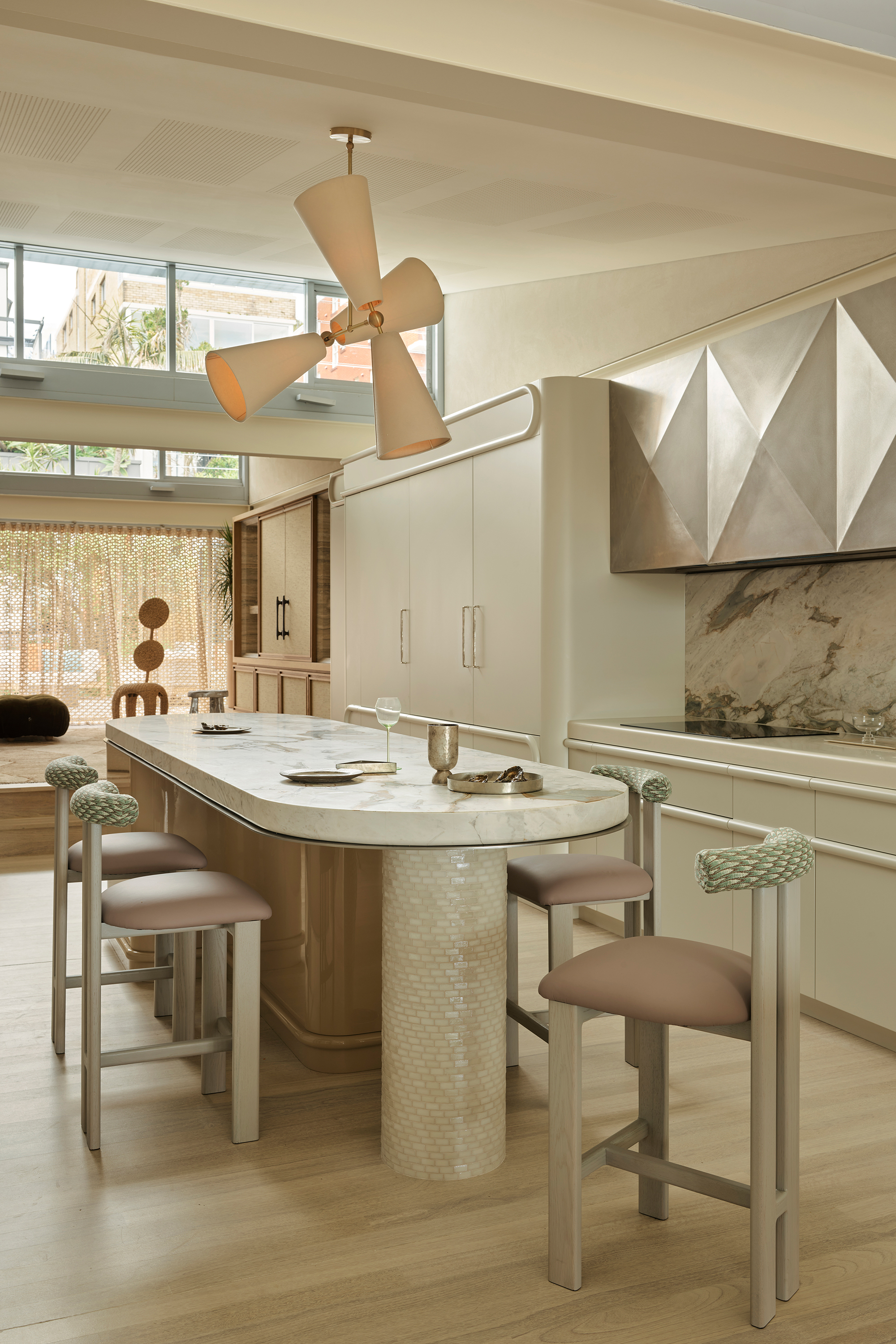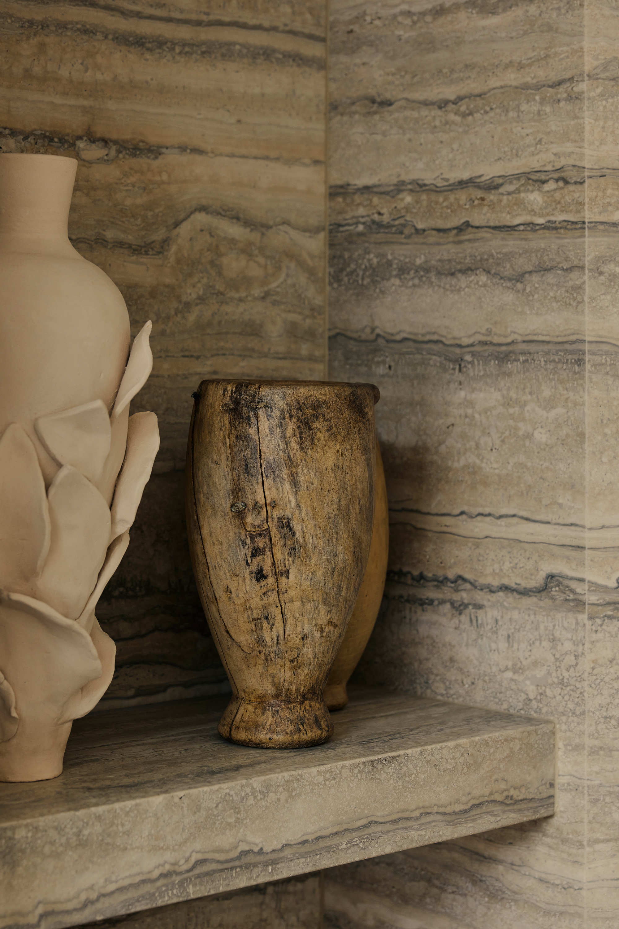 Meticulous detailing and custom pieces are framed by design icons. The furnishing story of vintage global collector punctuated by tribal organics creates an exciting dialogue that is chic, low key and irresistibly serene.