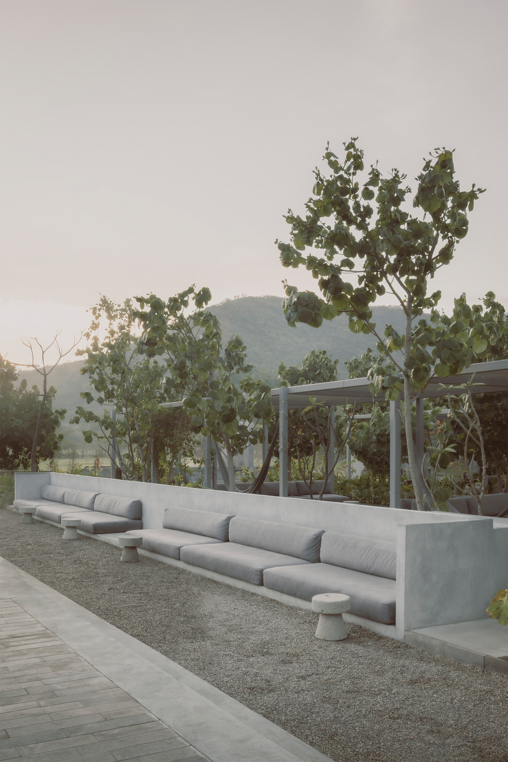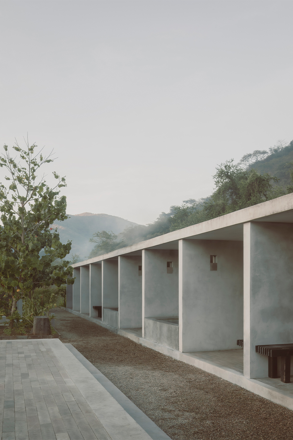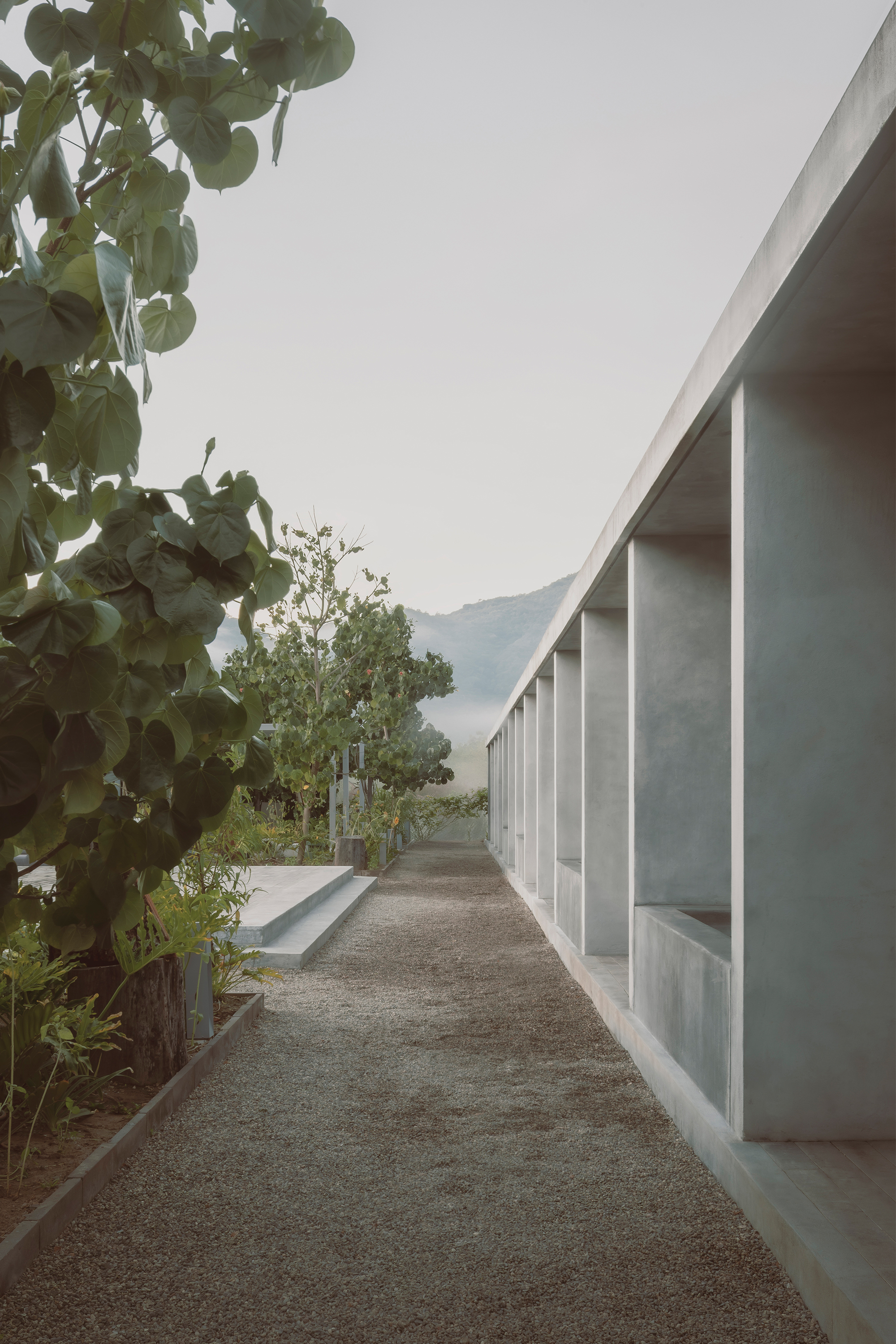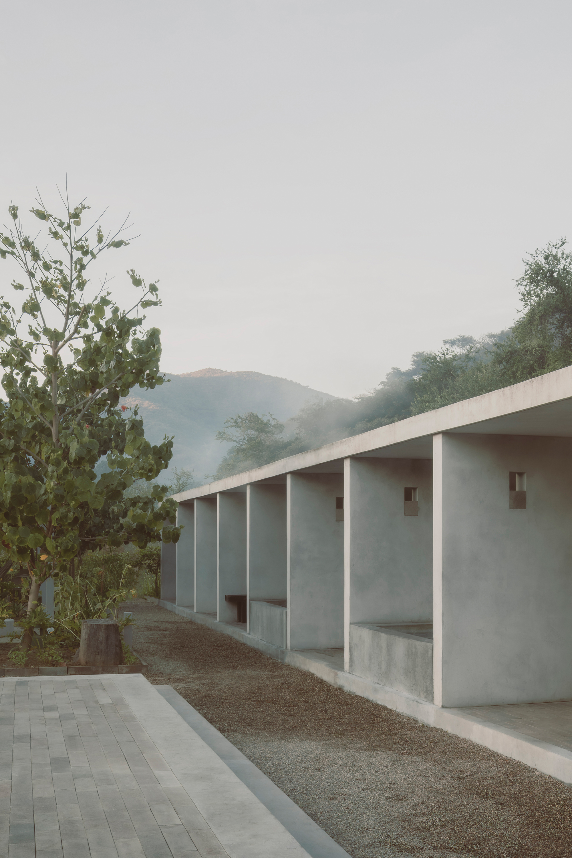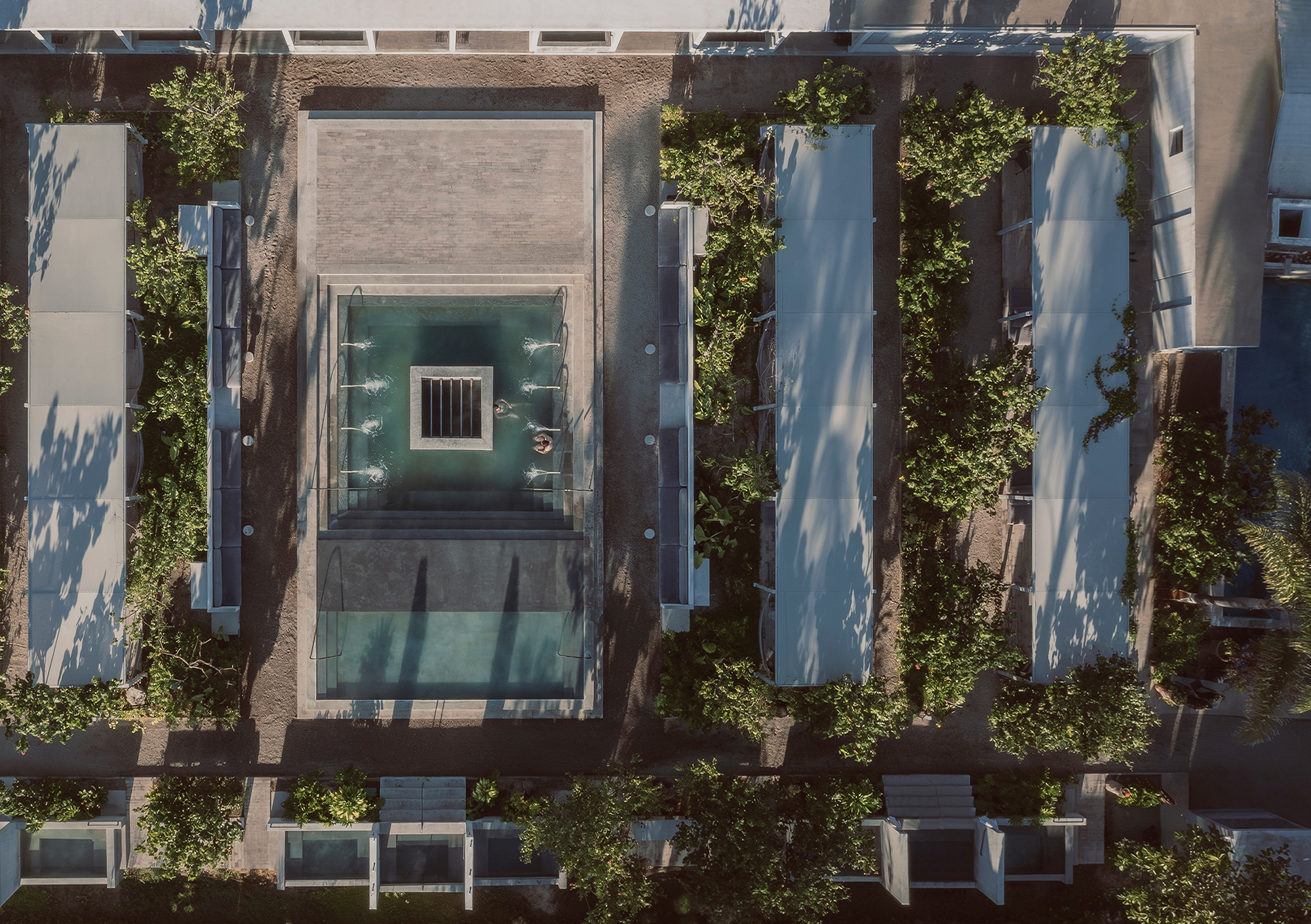 The garden’s architecture is minimal but precise. The materials –pigmented plasters, gravel, local stones– are chosen to blend with the environment rather than stand out from it. There is no artifice: only planes, shadows, and paths that invite a slowing down, a conscious immersion in temperature, gravity, and sound. Jardin de Aguas Termales is a choreography of heat and coolness, of emptiness and body. A place where water springs from the earth’s center and, in passing through it, one returns to oneself.