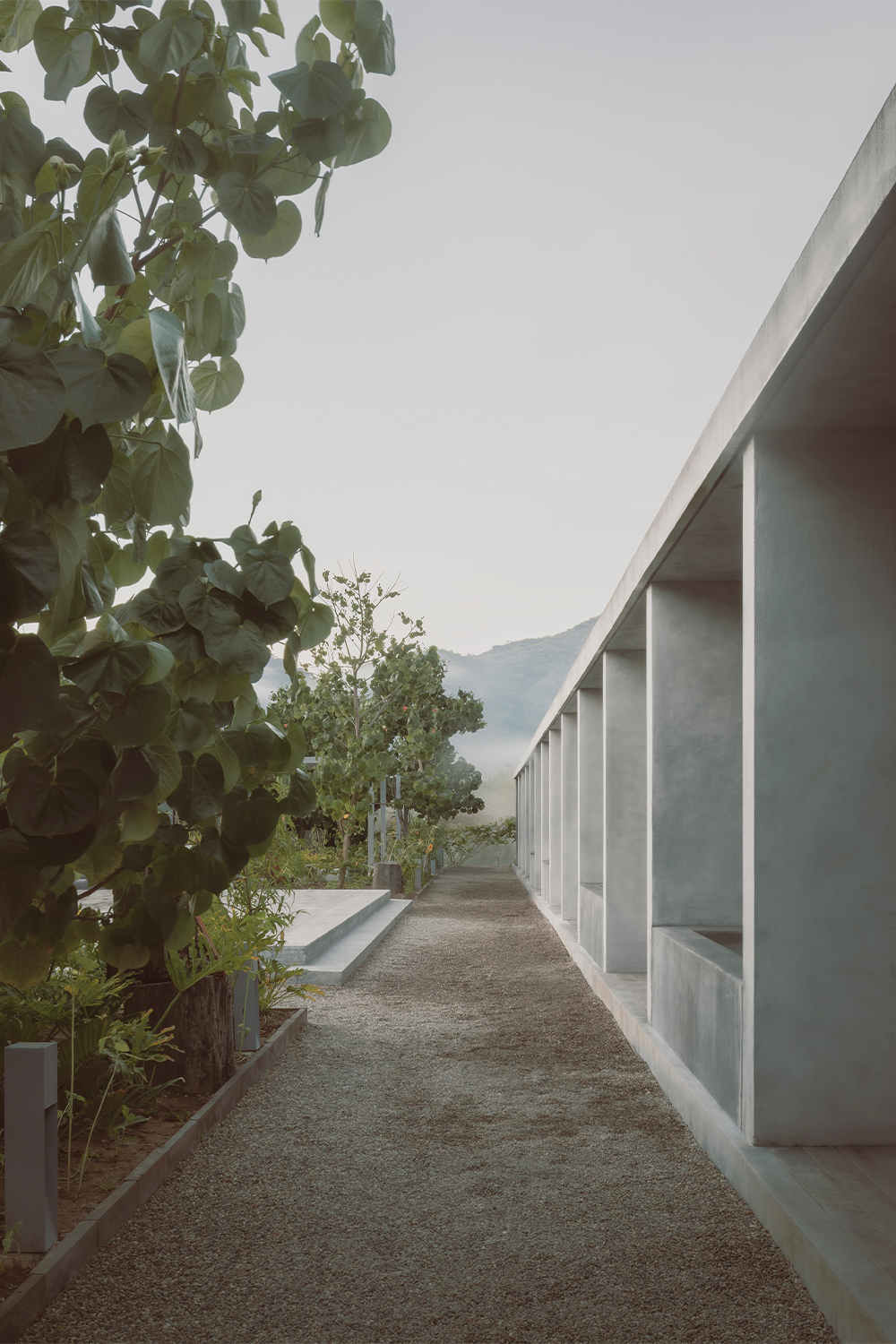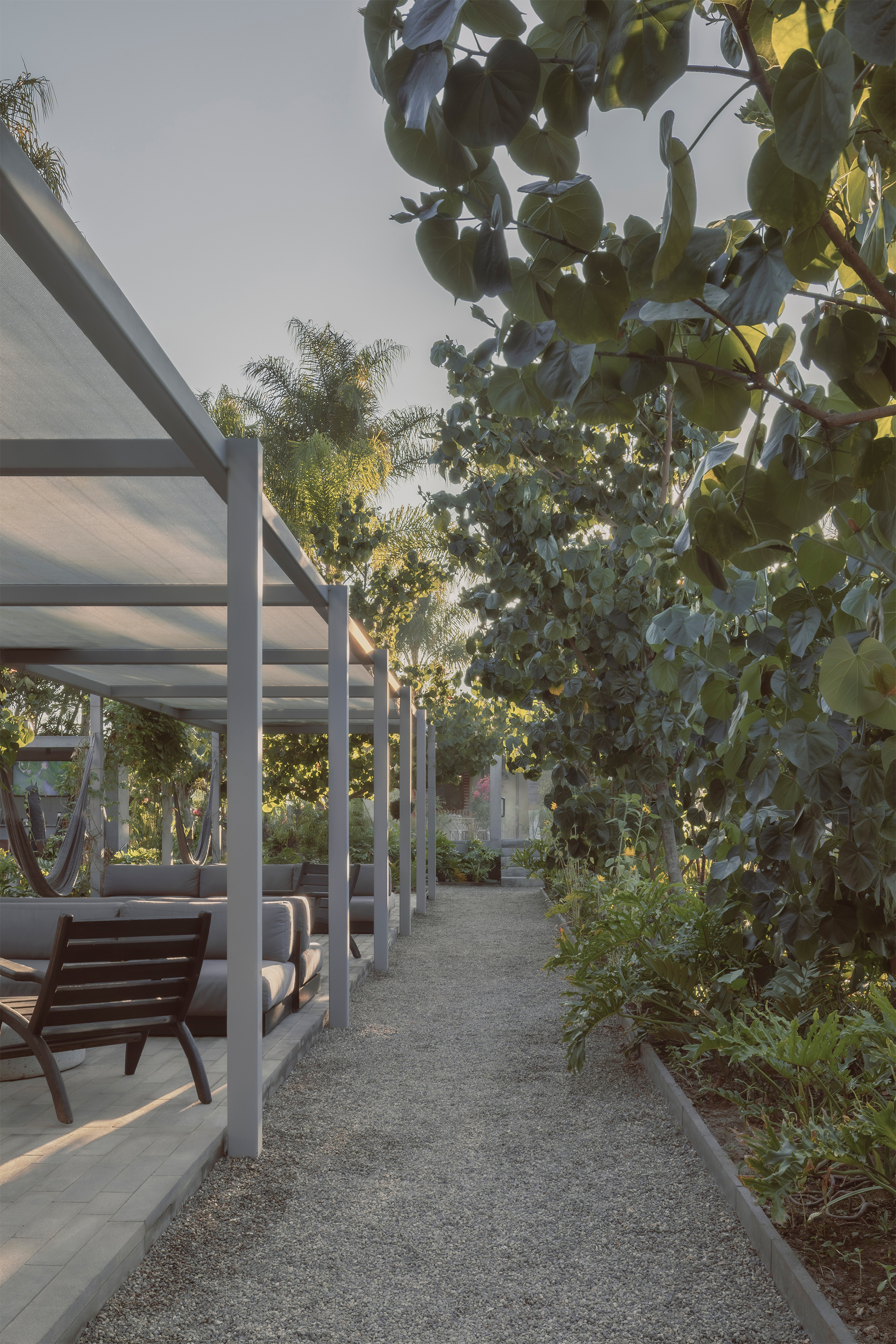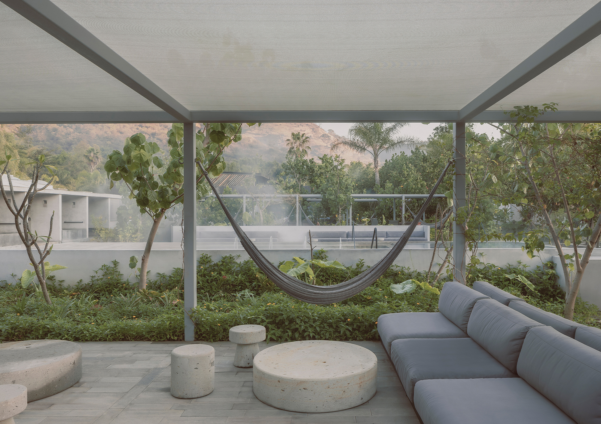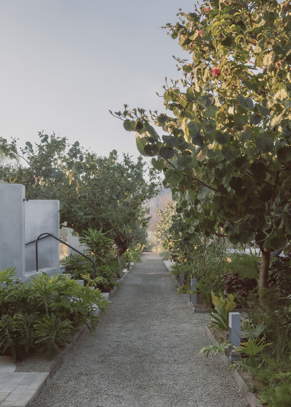 The garden’s architecture is minimal but precise. The materials –pigmented plasters, gravel, local stones– are chosen to blend with the environment rather than stand out from it. There is no artifice: only planes, shadows, and paths that invite a slowing down, a conscious immersion in temperature, gravity, and sound. Jardin de Aguas Termales is a choreography of heat and coolness, of emptiness and body. A place where water springs from the earth’s center and, in passing through it, one returns to oneself.