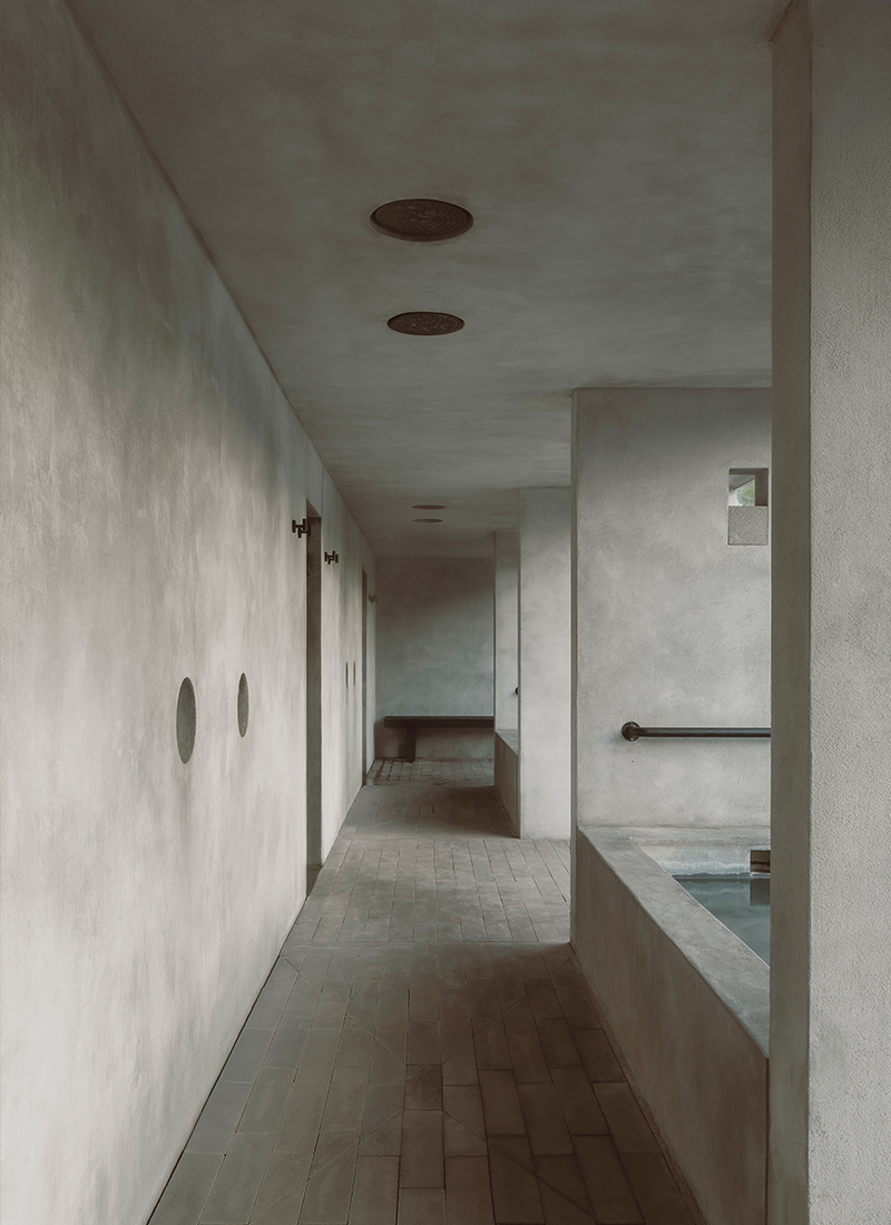 The entire hot spring garden is a arrangement of cold and heat, space and body - water gushes out from the depths of the earth, and in the moment one travels through it, one quietly returns to oneself. -