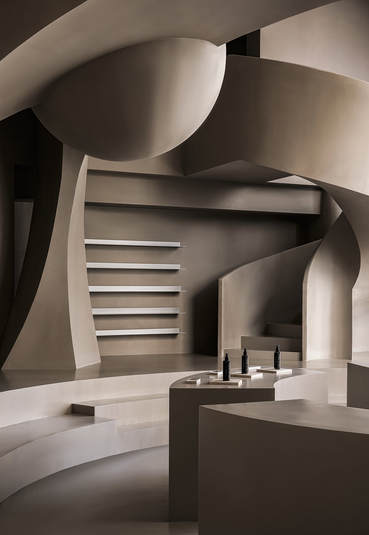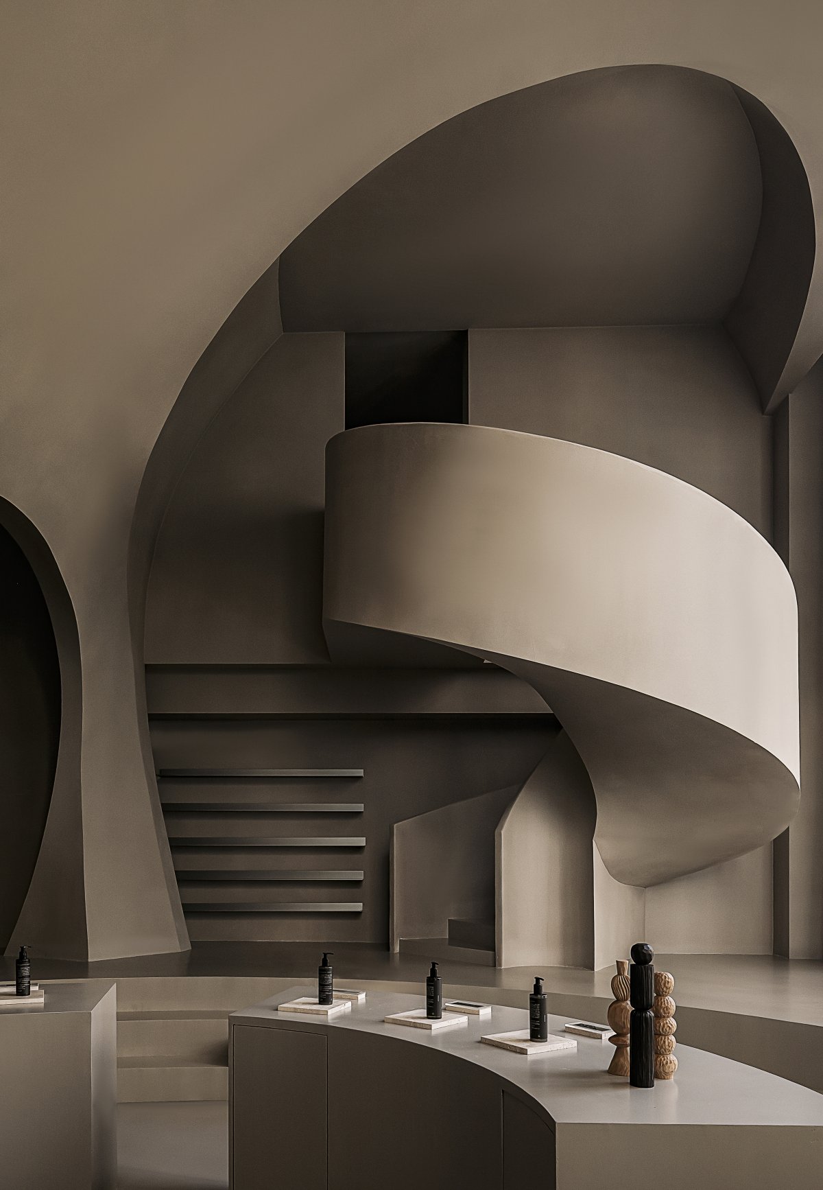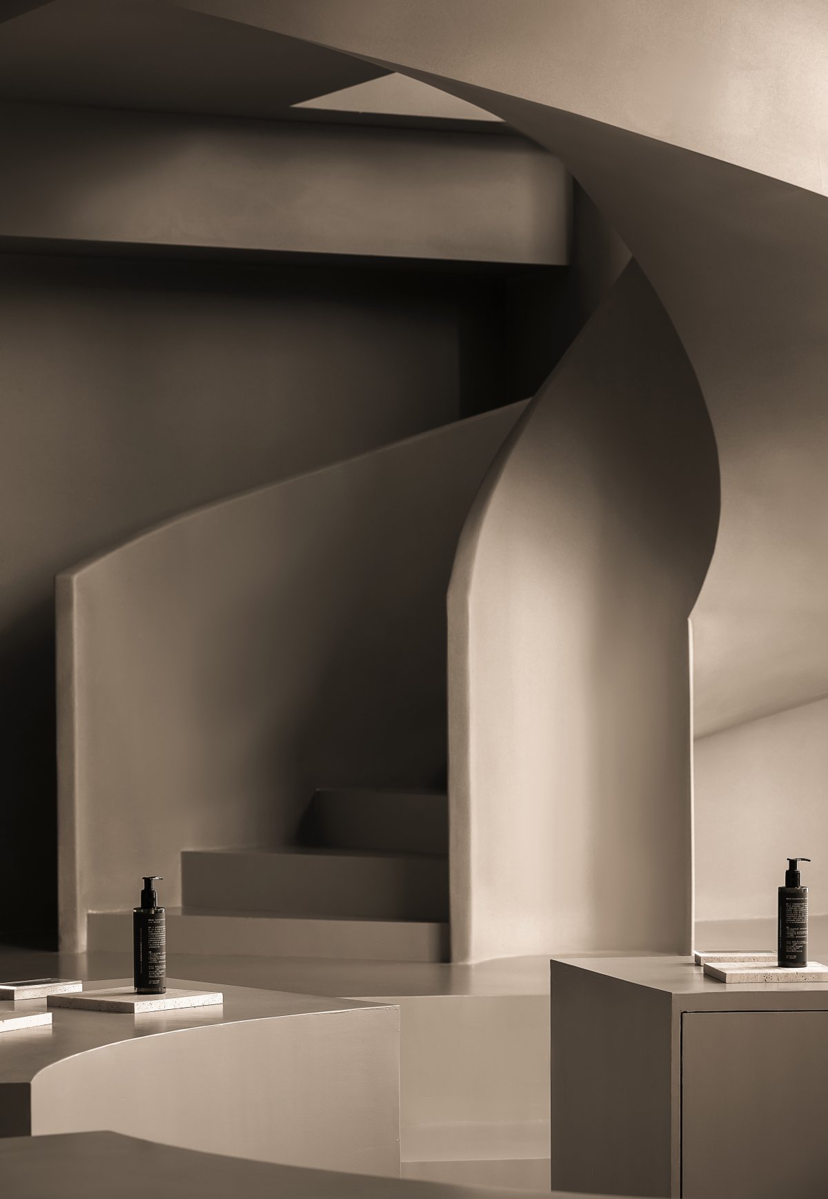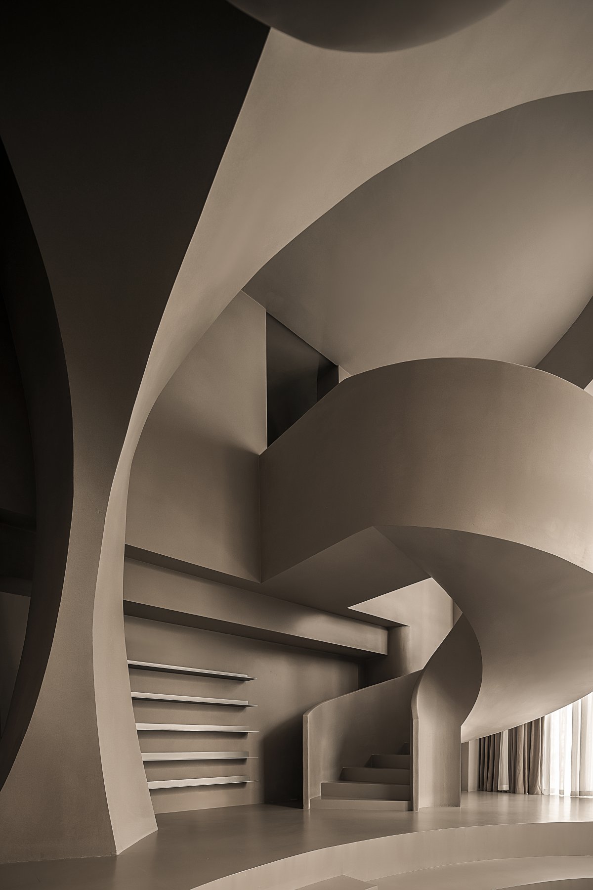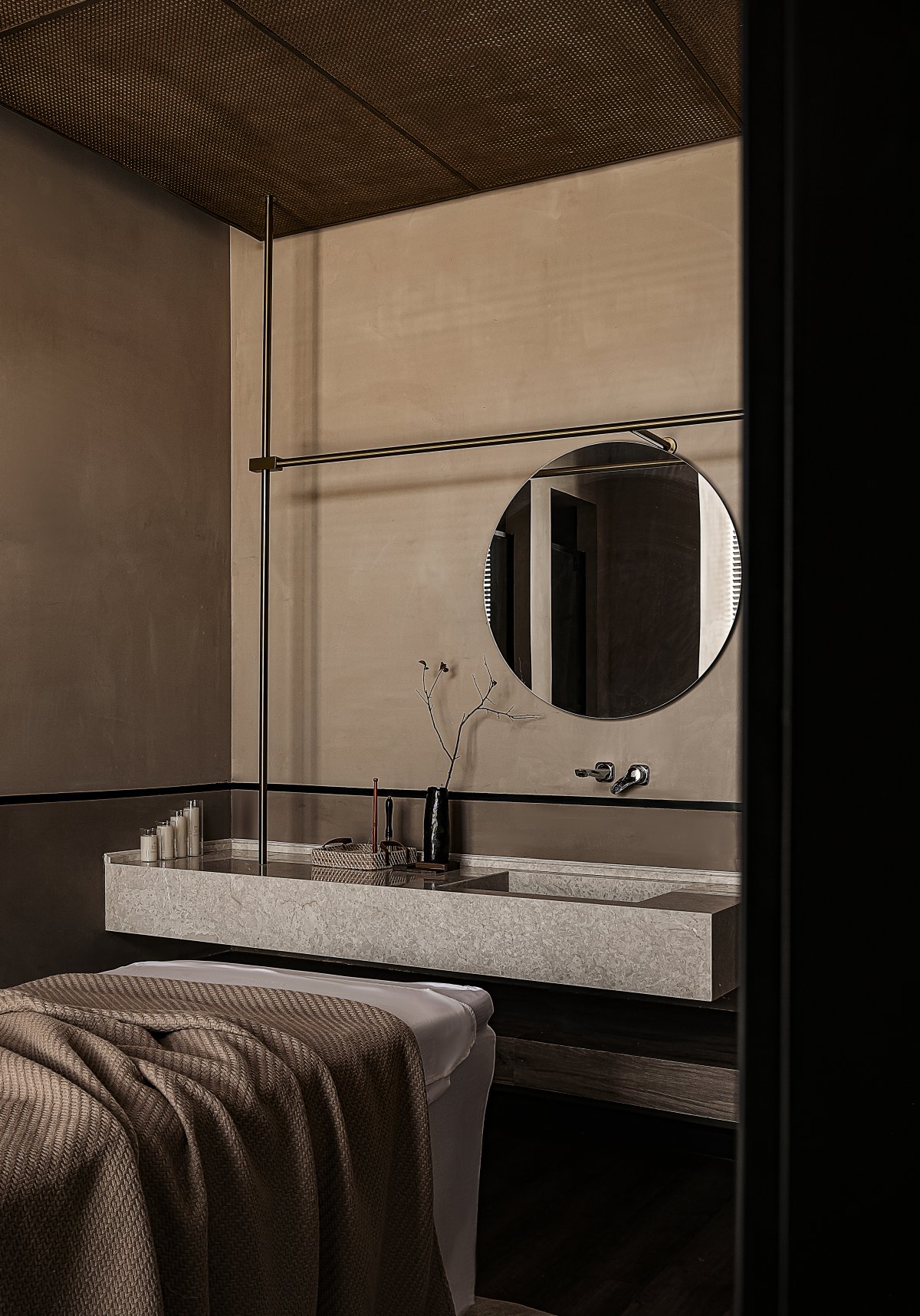 The design aims to create a unique spatial atmosphere for the SPA and to give value and meaning to the space. This concept is finally expressed in the geometric form of curved lines and surfaces, and the façade design advocates simplicity and simplicity, eliminates superfluous decorative decoration, is extremely frugal, highlights the sense of design, and is dynamic and varied in the creation of space. The flooring at the atrium position combined with the branching lines creates an open and flowing indoor public space.