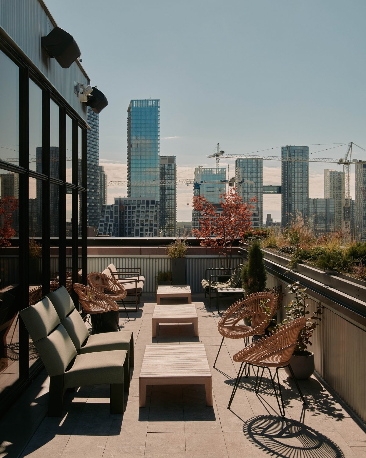 Evangeline officially opens this Friday, October 21. The all-season rooftop bar and lounge crowns the recently opened Ace Hotel Toronto, sitting 14 stories high and offering sweeping views of the surrounding skyline. The 80-seat lounge, designed by acclaimed Toronto studio Shim-Sutcliffe Architects with interiors by Atelier Ace, is spread across a cozy indoor area framed by two fireplaces and a sprawling outdoor patio.