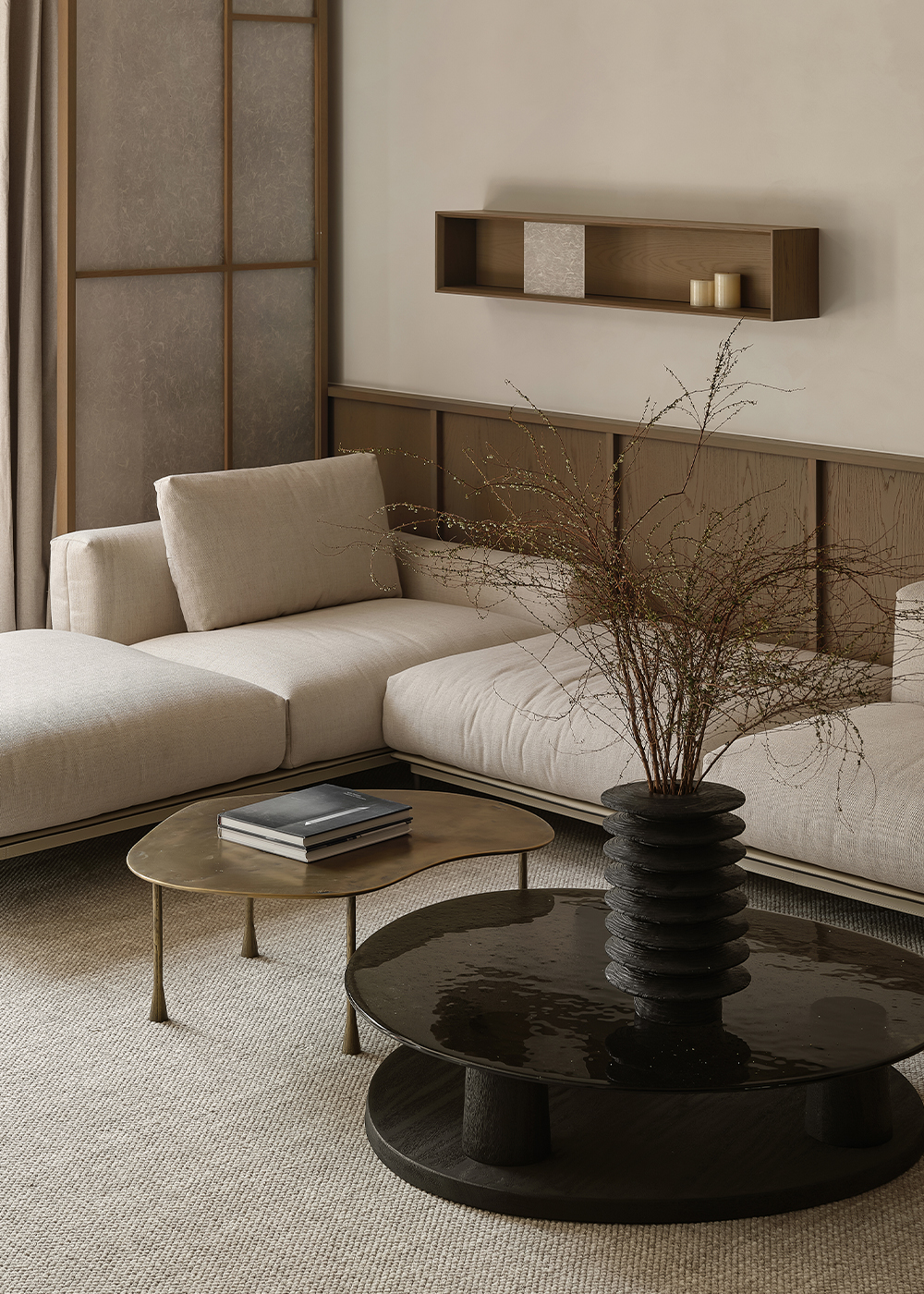 The staircase, as a medium connecting spaces, is not merely a tool for vertical circulation—it also becomes a channel for the flow of light and sightlines. The glass elevator is transparent and light, allowing light to pass through unobstructed while reflecting the subtle traces of life unfolding within the space. We firmly believe that true comfort does not stem from elaborate construction, but from respecting and responding to the rhythms of nature. When the wind passes through the atrium and light falls onto the floor, the space begins to breathe.