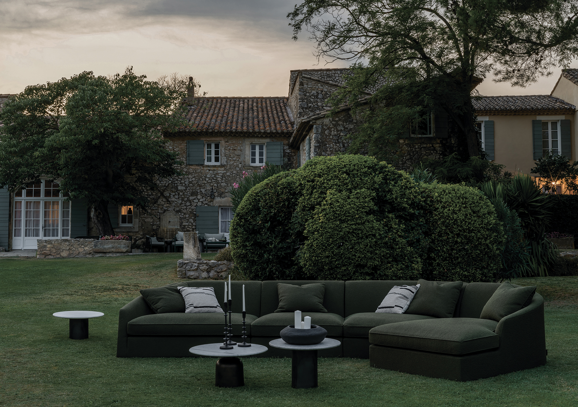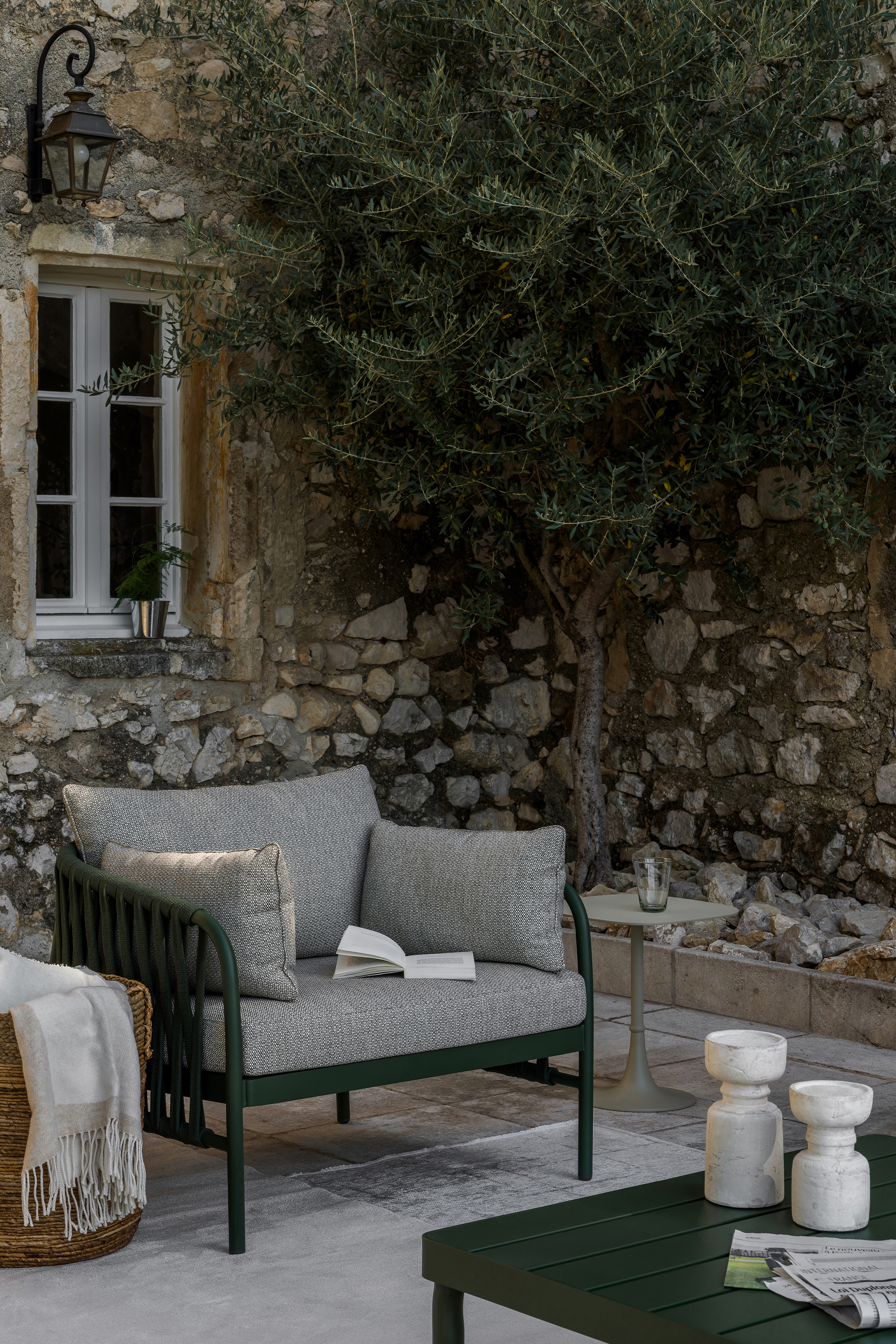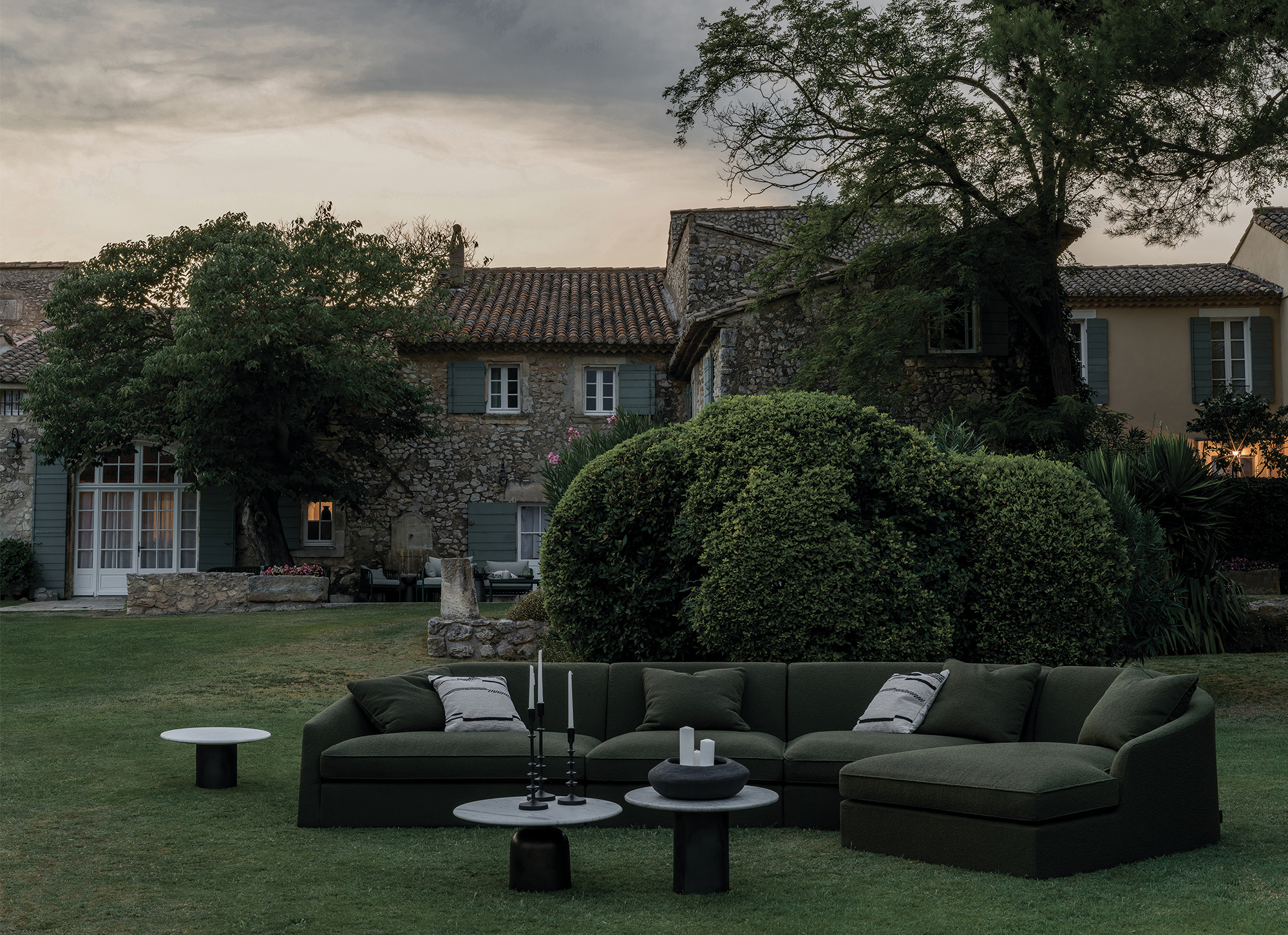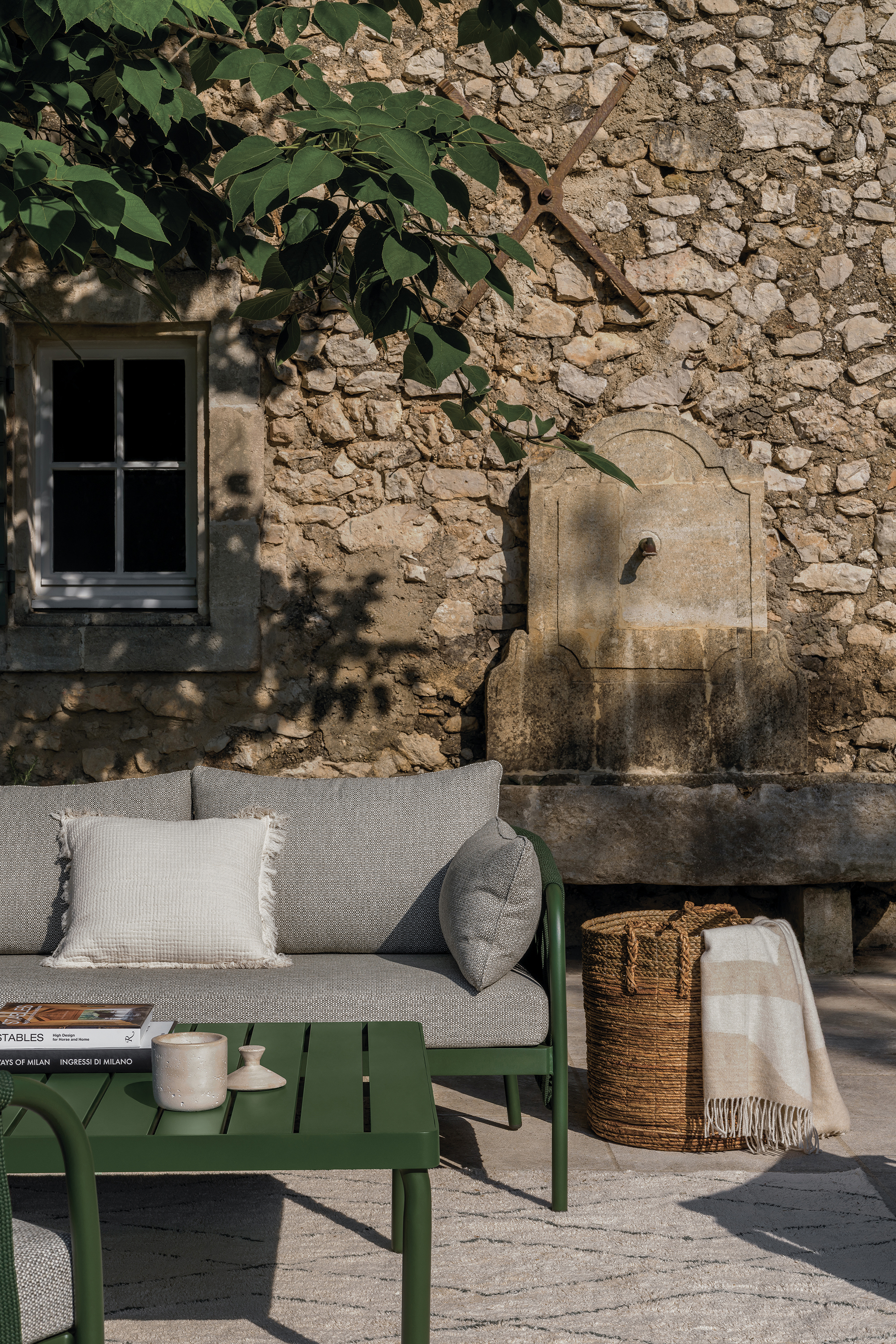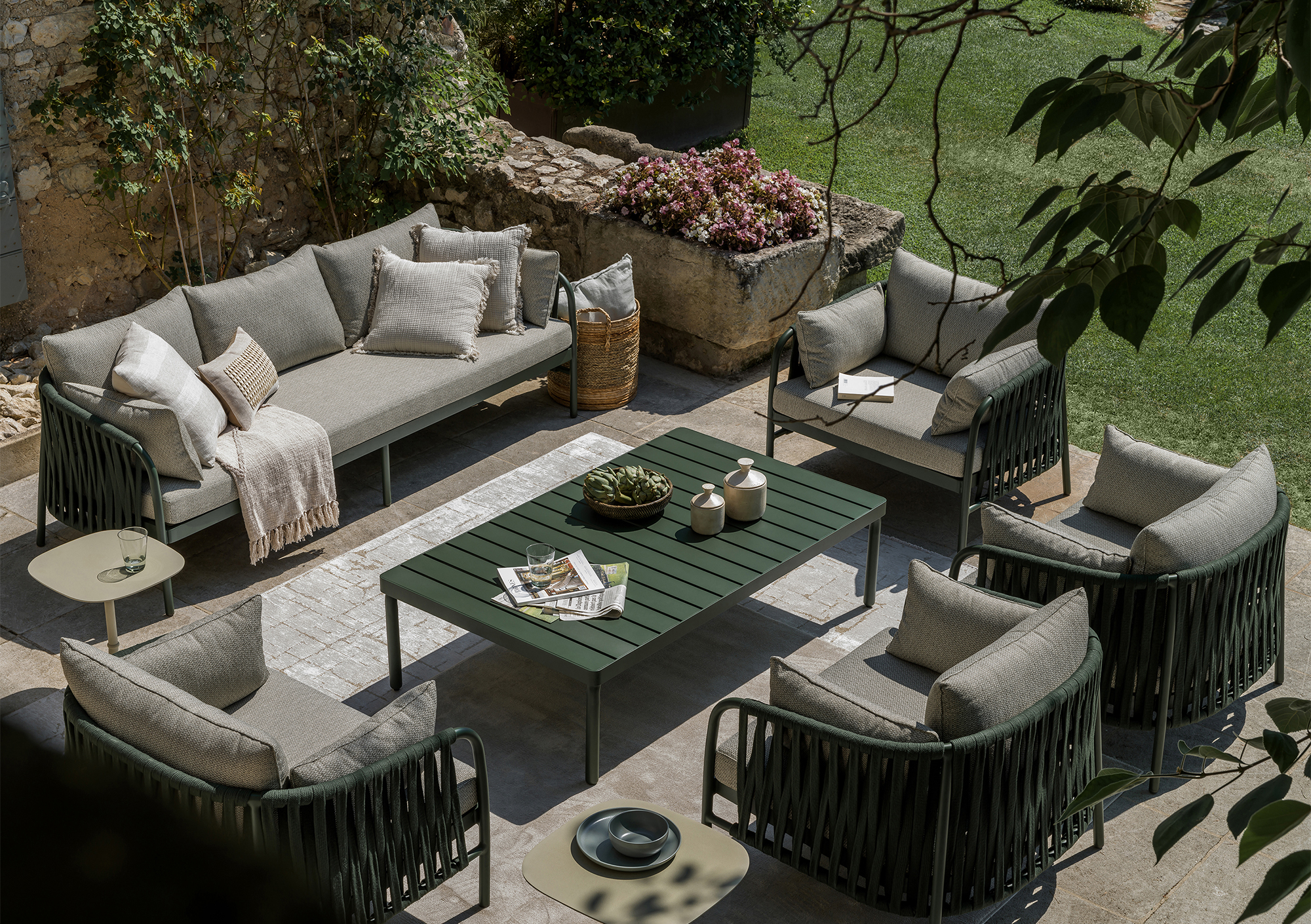 The Taormina outdoor furniture collection echoes the olive trees and metal shutters of the historic building. Bathed in the Provençal sunlight and amidst lush flowers, the series looks utterly poetic, as if created for this very setting, becoming an integral part of it.