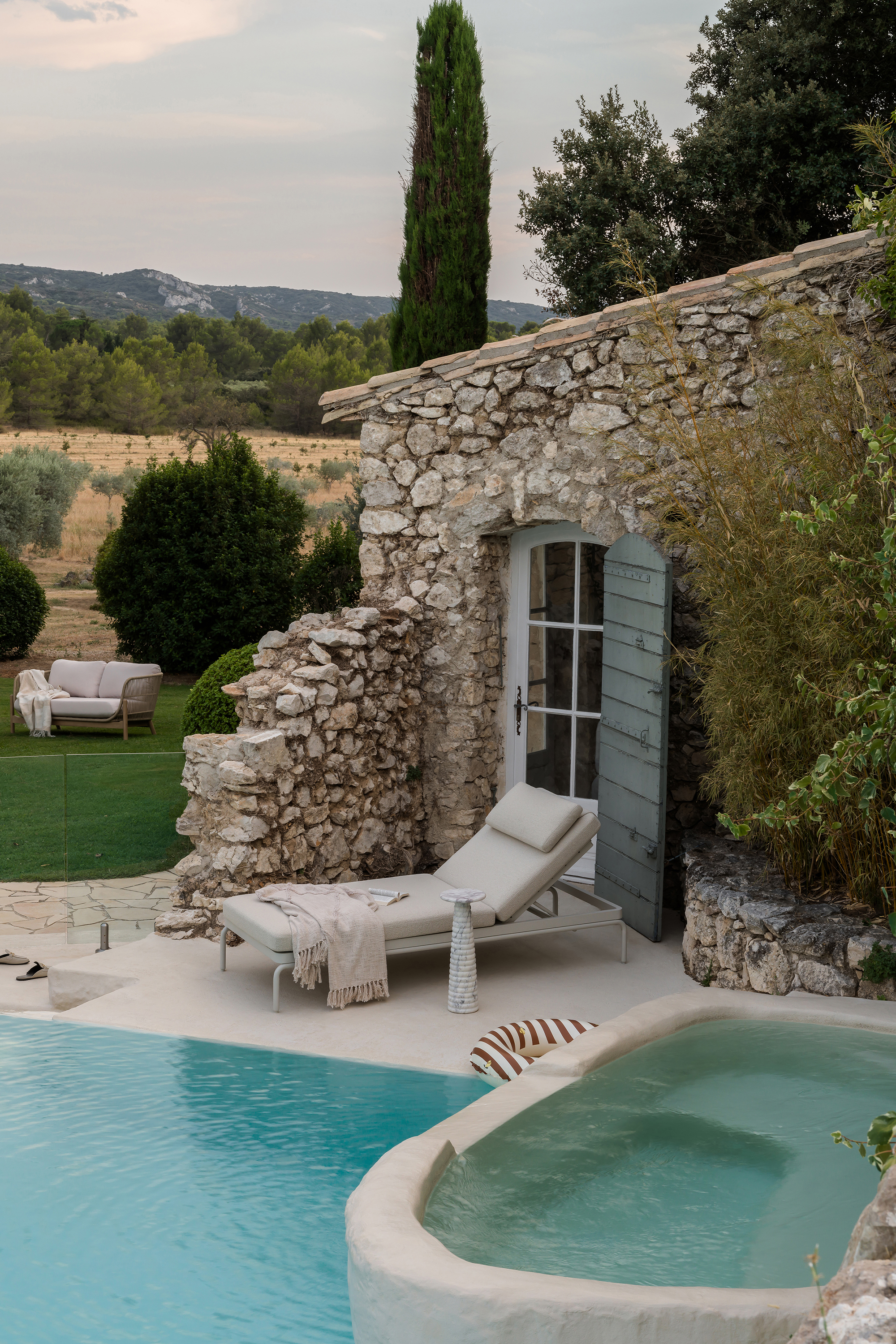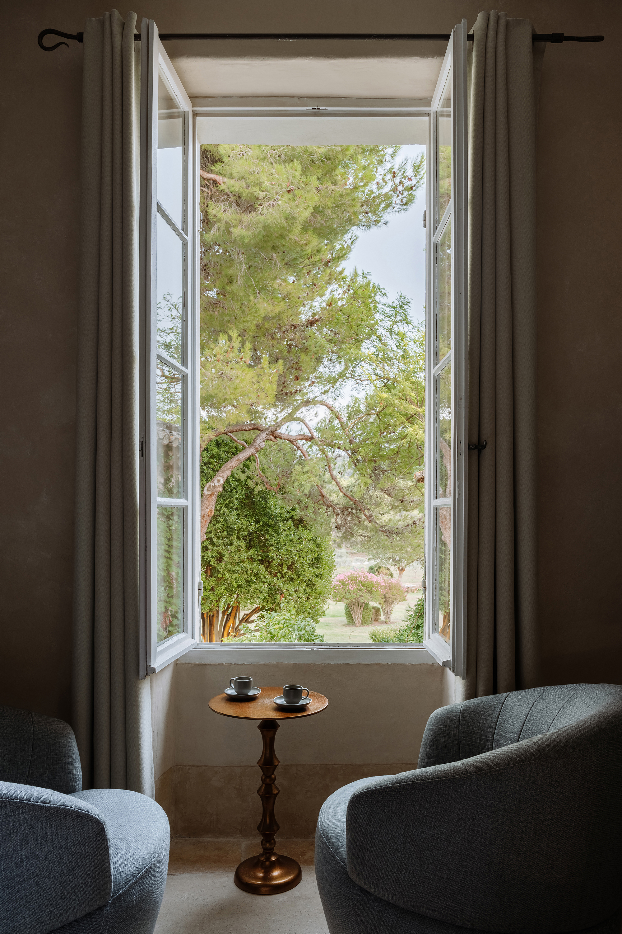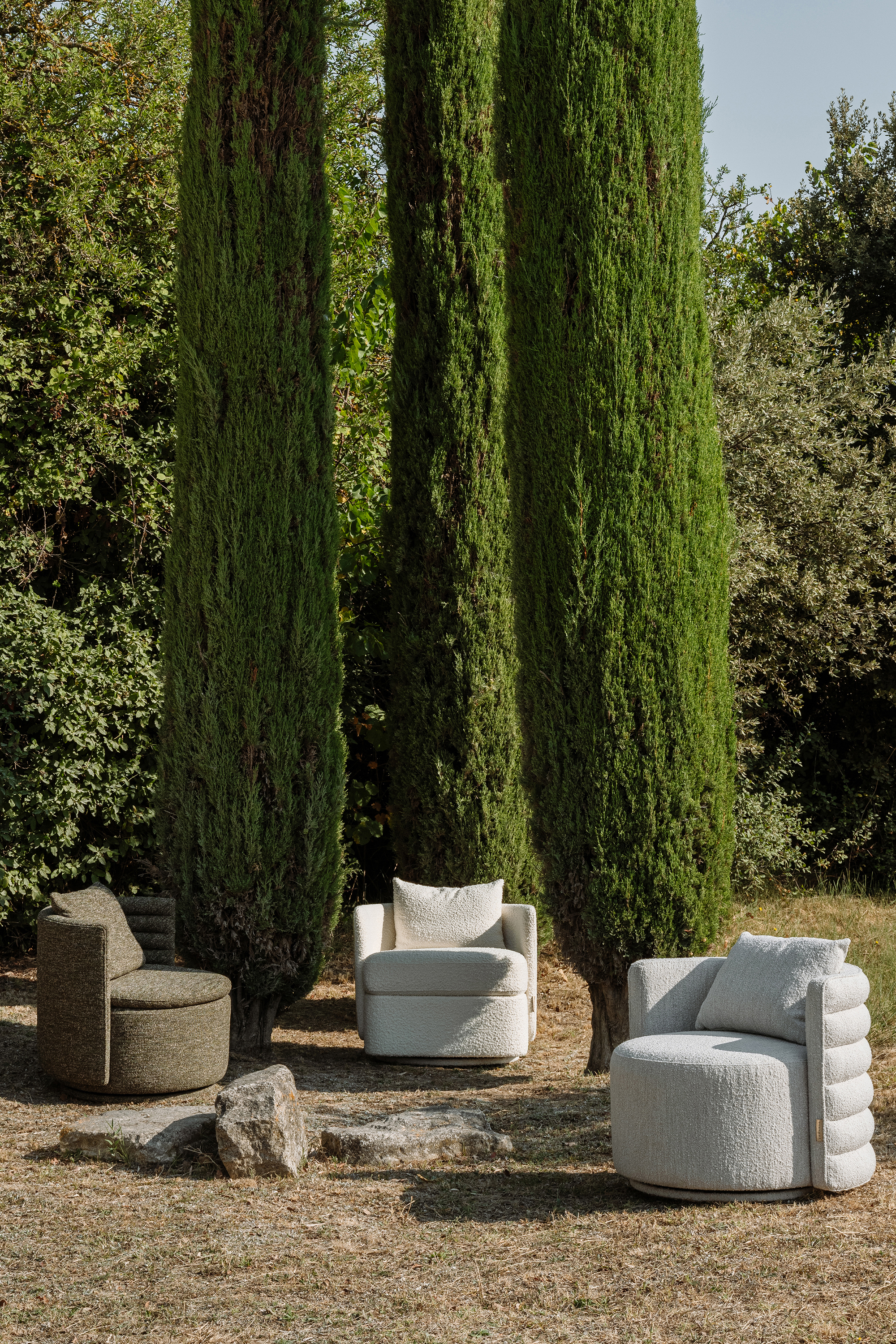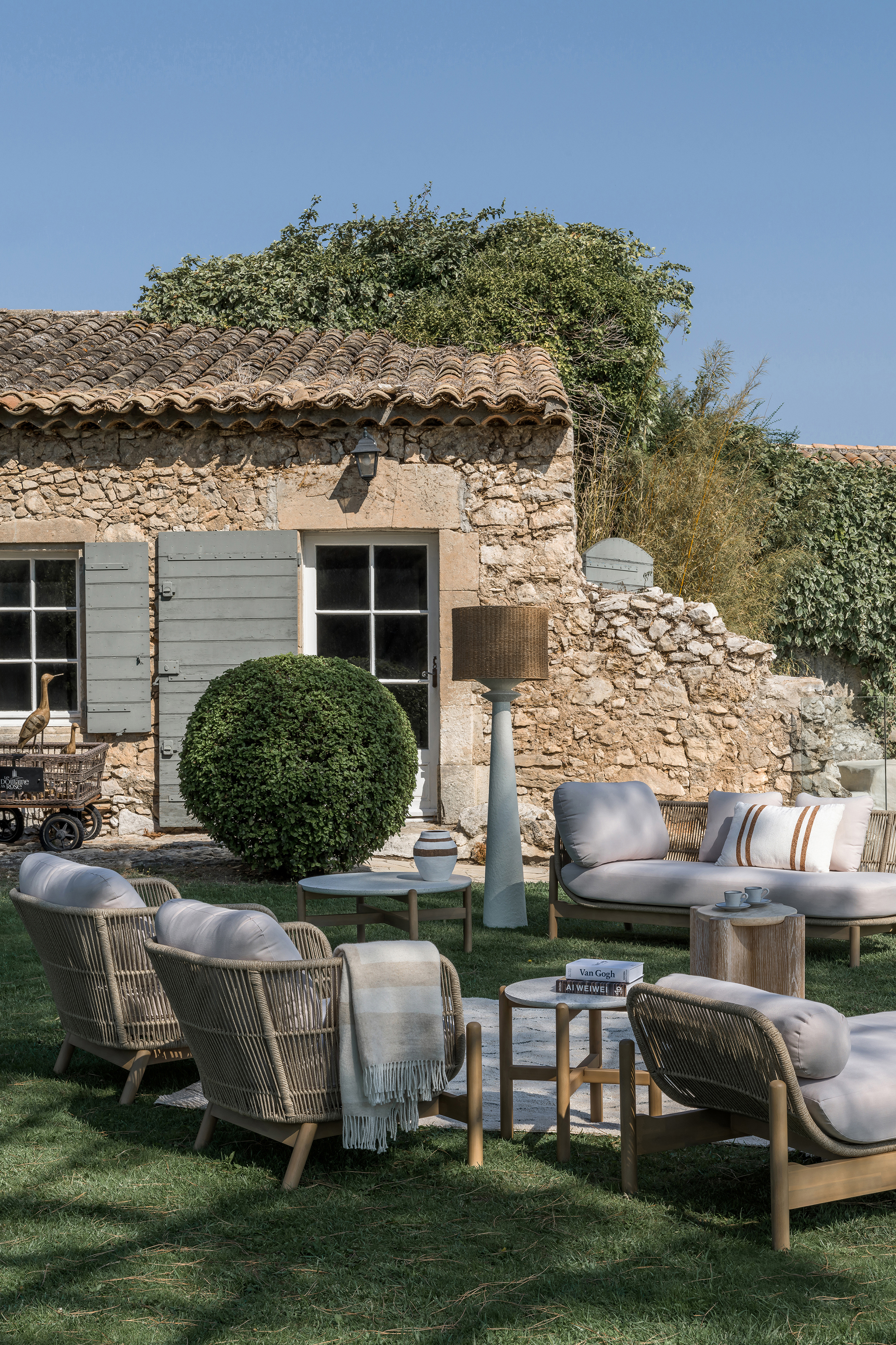 The Taormina outdoor furniture collection echoes the olive trees and metal shutters of the historic building. Bathed in the Provençal sunlight and amidst lush flowers, the series looks utterly poetic, as if created for this very setting, becoming an integral part of it.