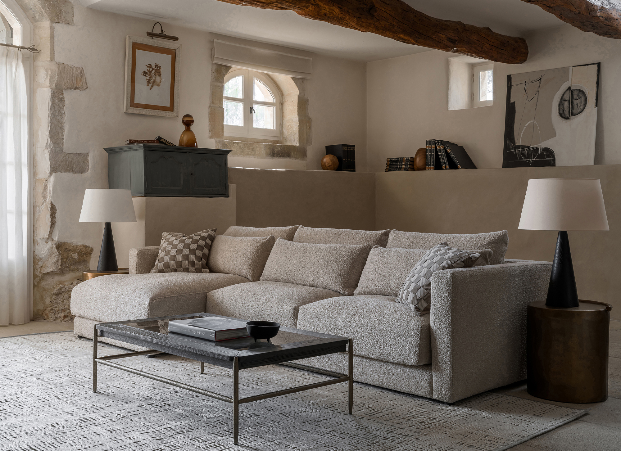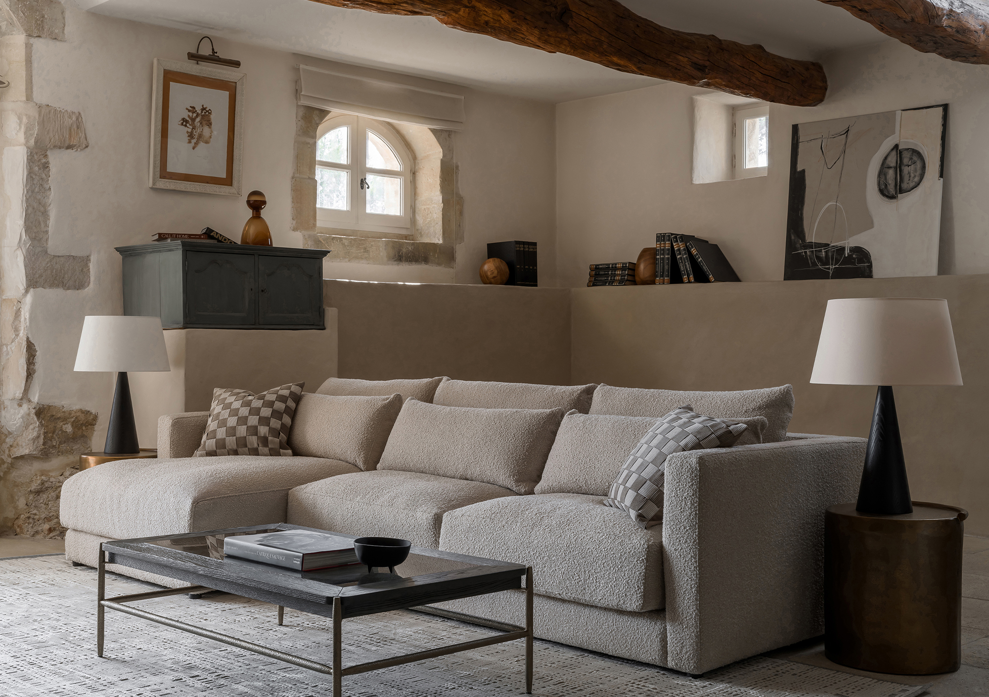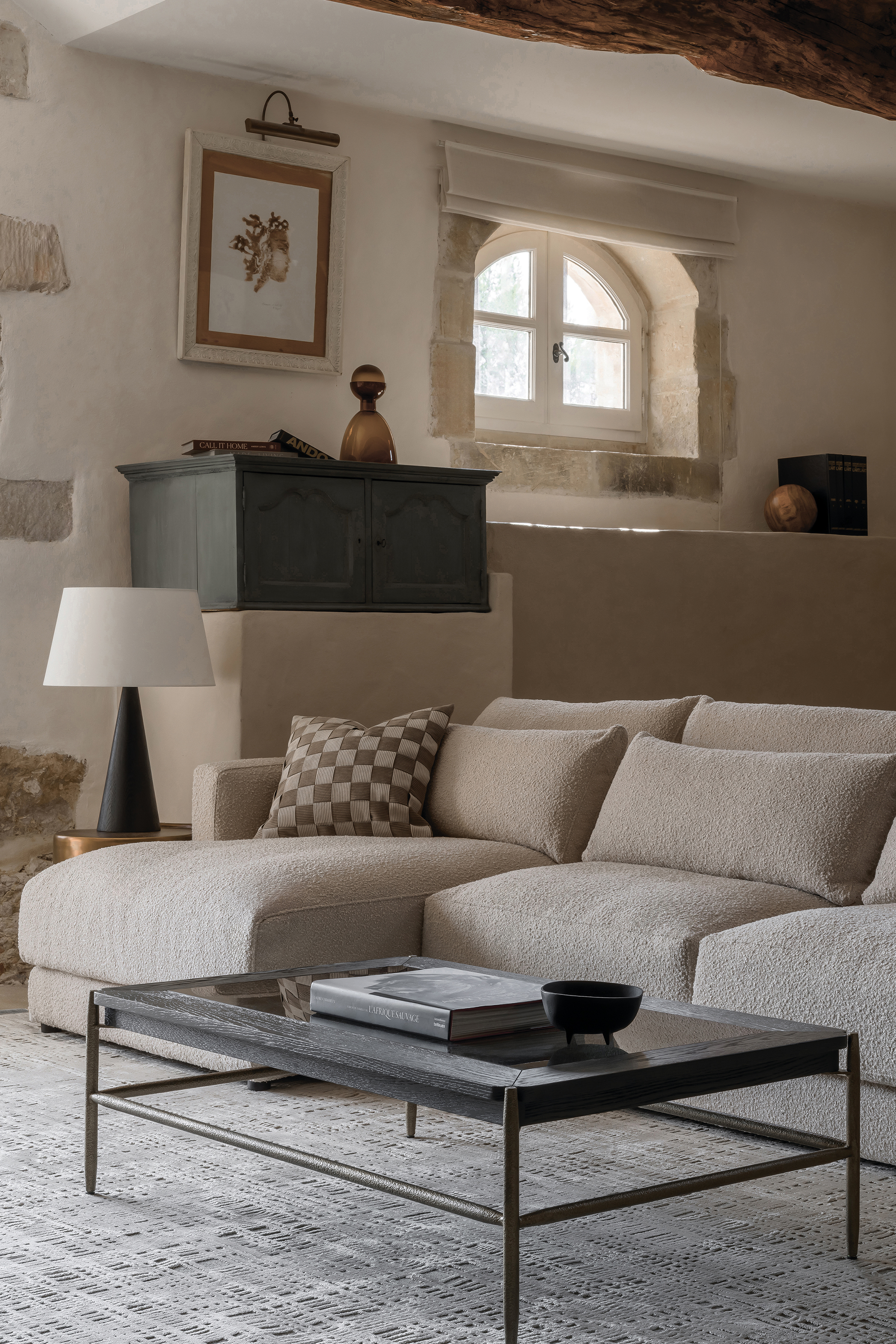 In Provence, time flows differently. Here, you forget the hustle and bustle and begin to cherish every moment, finding beauty in the ordinary. The embodiment of absolute comfort is the corner sofa with soft curves that echo the fireplace portal in the living room. It invites you to slow down and embark on a mental journey with a book by a French classic, accompanied by the crackle of burning logs.