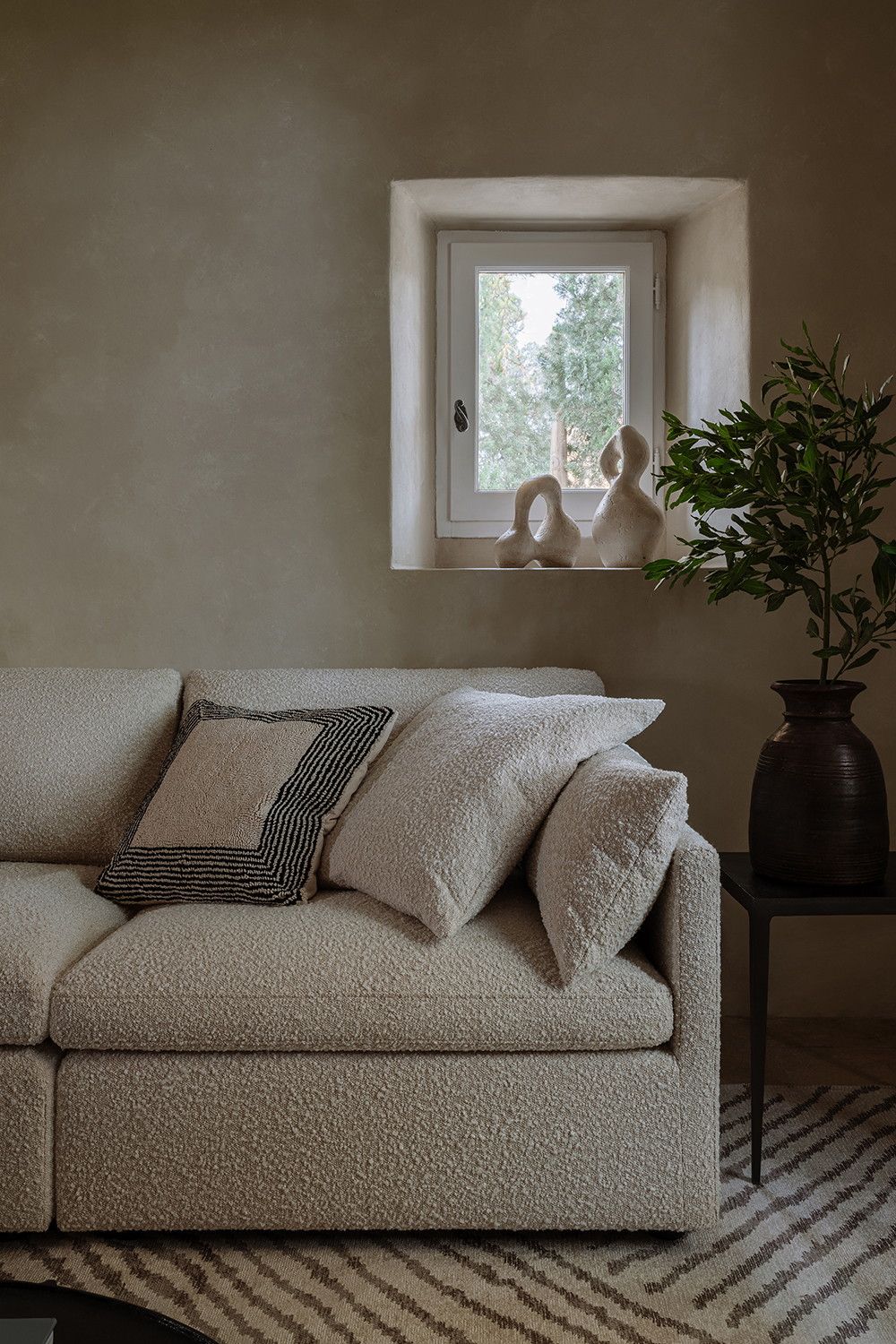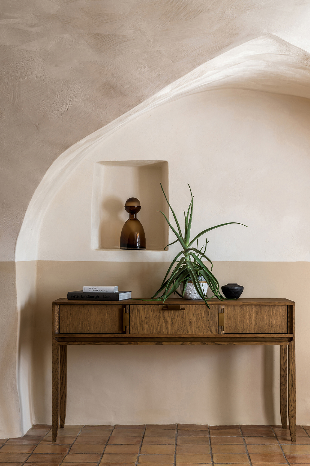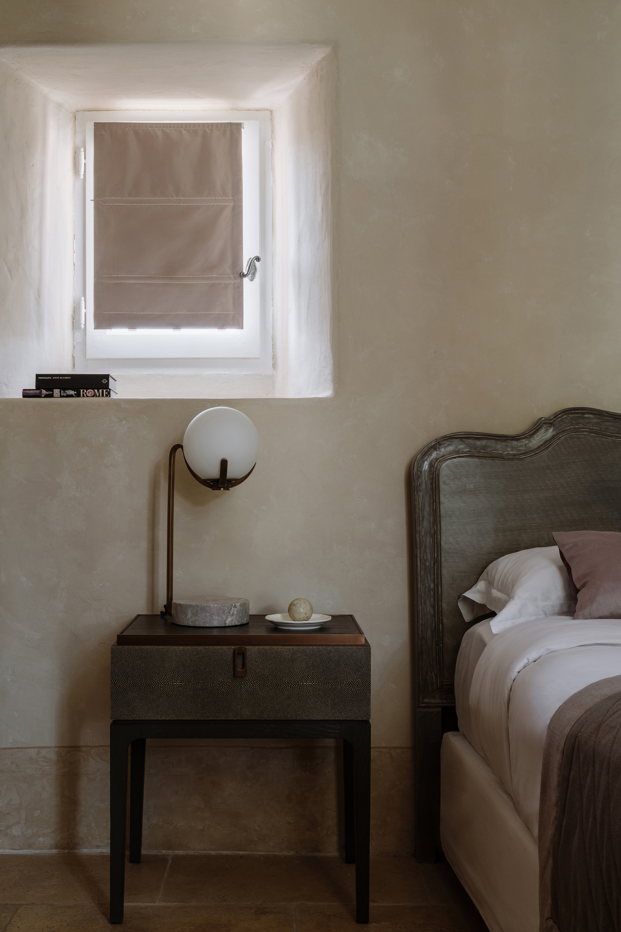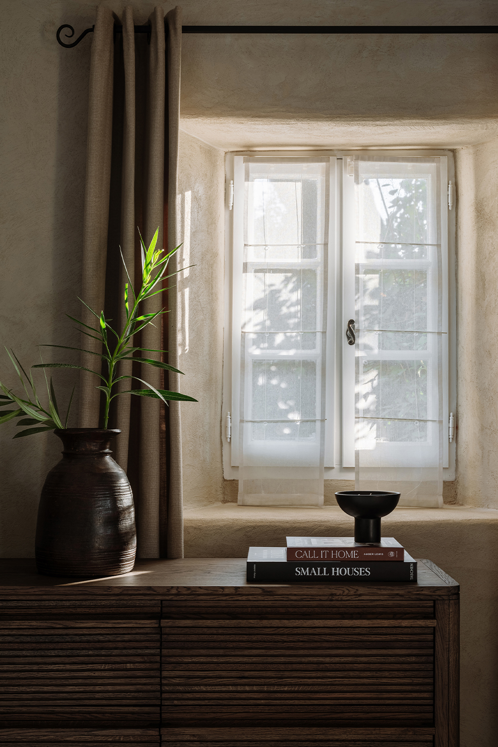 It was here that the curatorial project was born, in which the international furniture brand Dantone Home acted as a mediator in a dialogue between the 17th-century genius loci and contemporary design, between rural charm and timeless elegance. Step inside to discover historic interiors in a remarkable state of preservation: vaulted ceilings, arches, stone steps, spiral staircases, surfaces bearing the patina of time, antique floor tiles, and centuries-old beams.