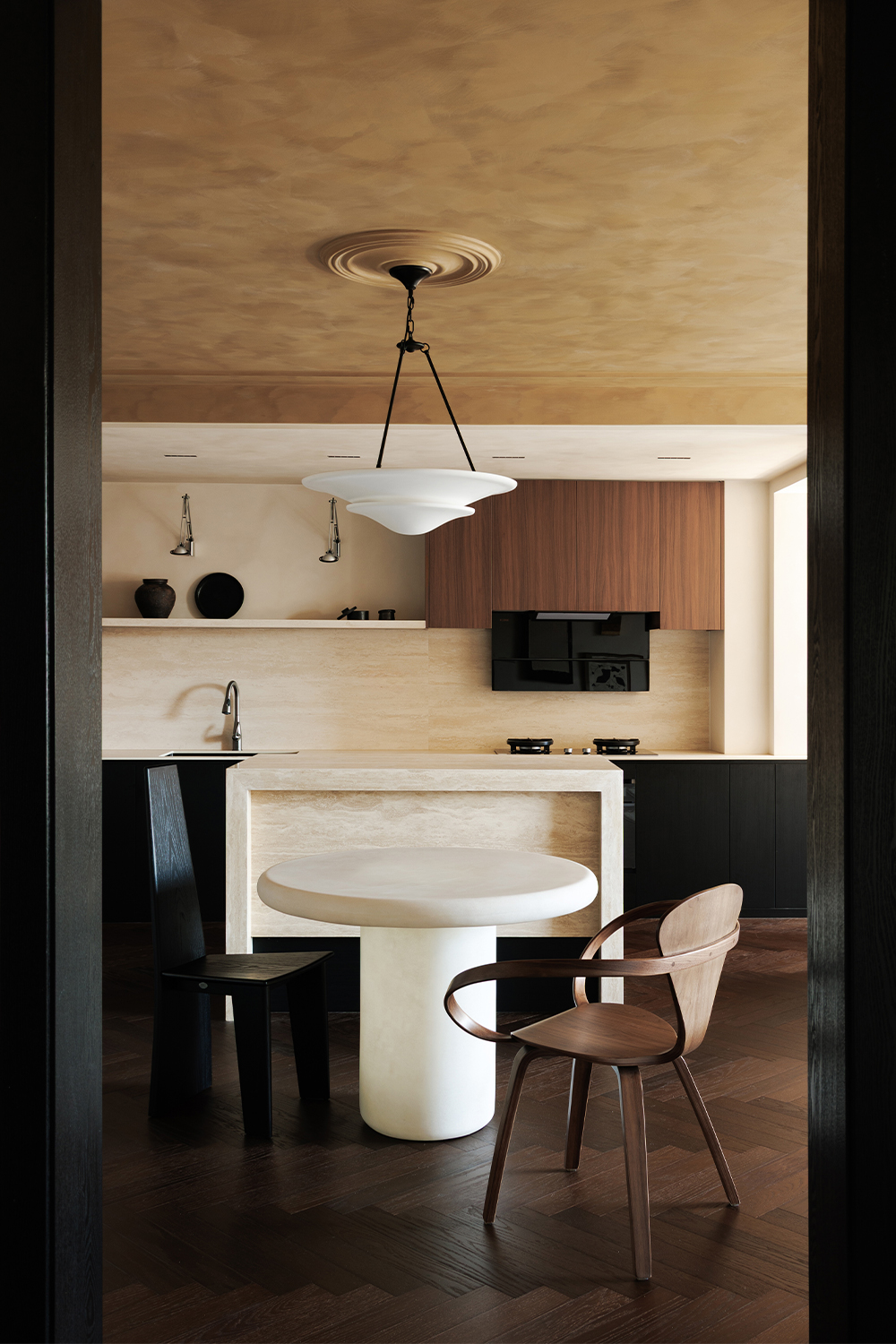 The owners, a man working in finance and a woman an independent media professional, embody a blend of rigor and style, rationality and sensibility, adding a refined layer to their new home. A long narrative about lifestyle, aesthetic preferences, and self-expression will unfold within this house.They enjoy expressing themselves and wanted their new home to be uniquely personal, not bound by eras or social status. Eclecticism became the most natural choice: incorporating the lines and brilliance of Art Deco while embracing the elegance of classical proportions; possessing the minimalist aesthetics of Eastern culture while not rejecting modern volumetric logic.