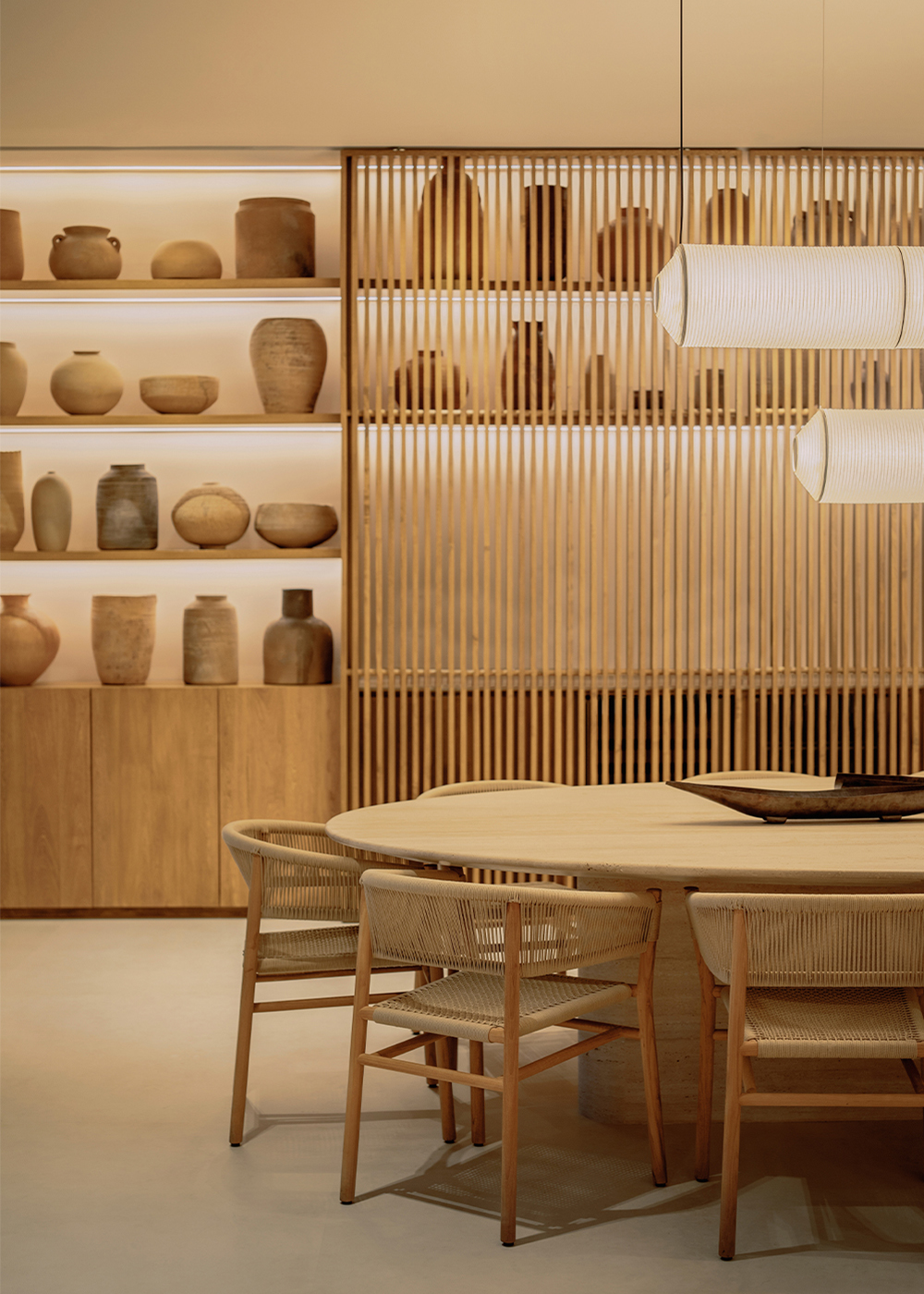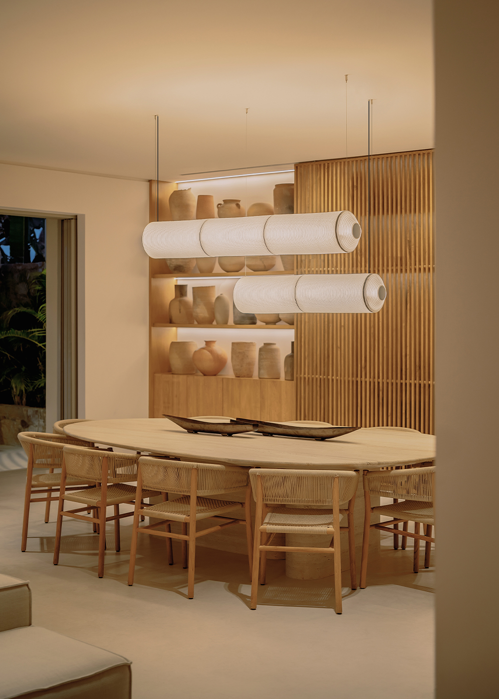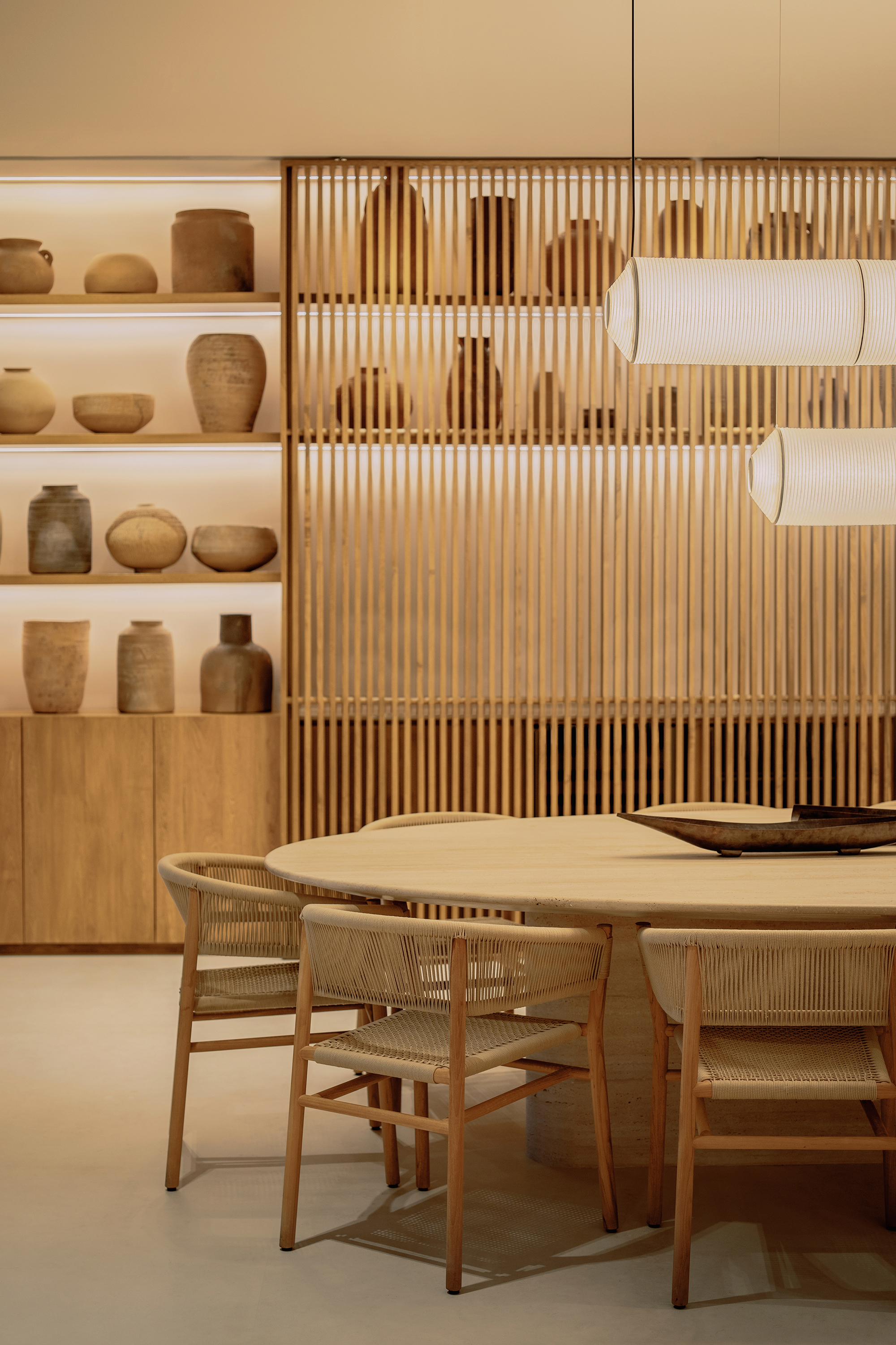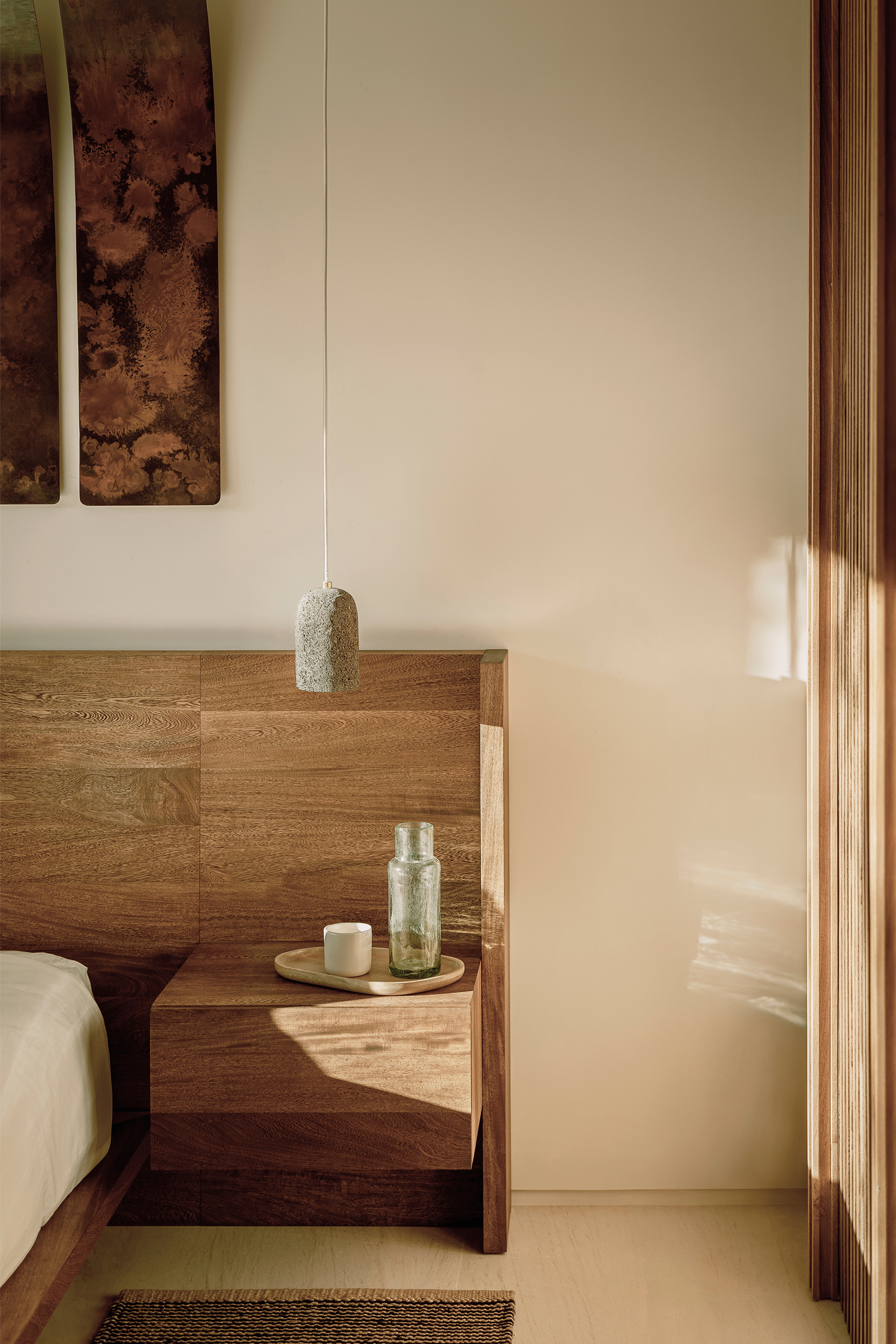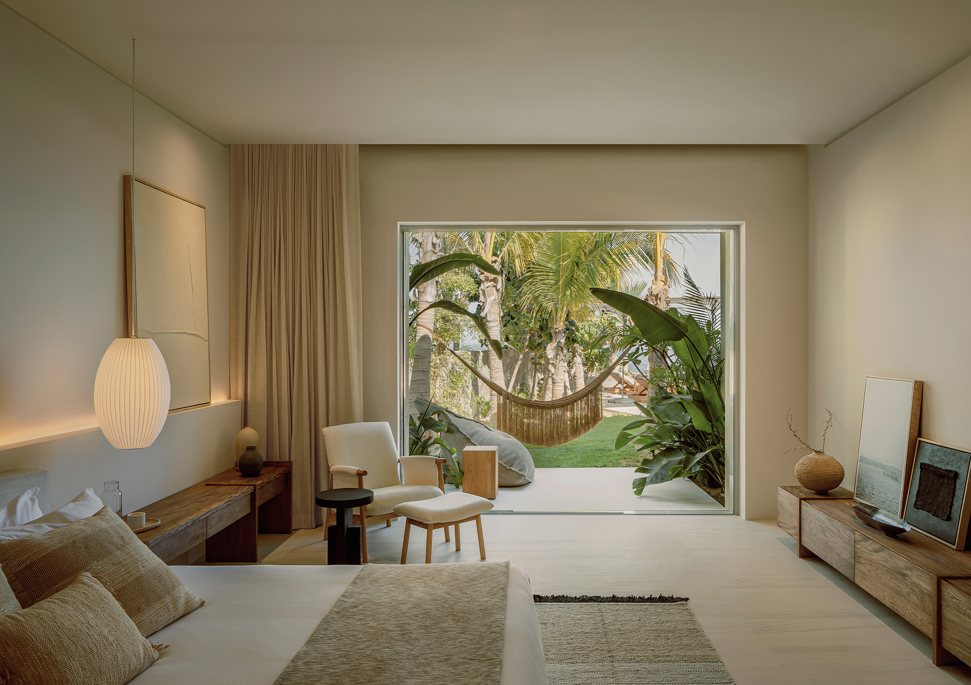 The neat design is complemented by an exquisite curation of jute, henequen, clay, copper and stone pieces from different parts of Mexico and the result of collaborations between Mexican artisans and artists.