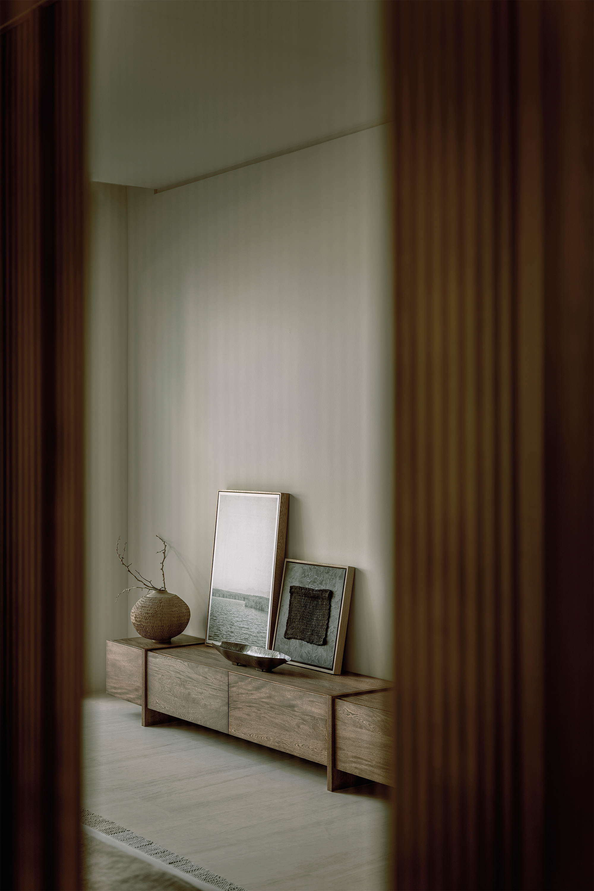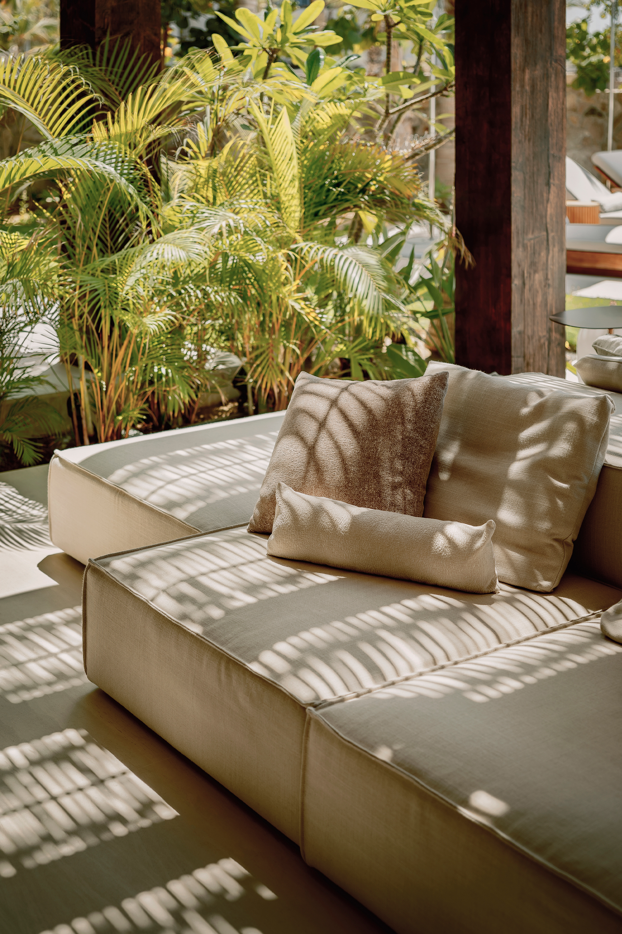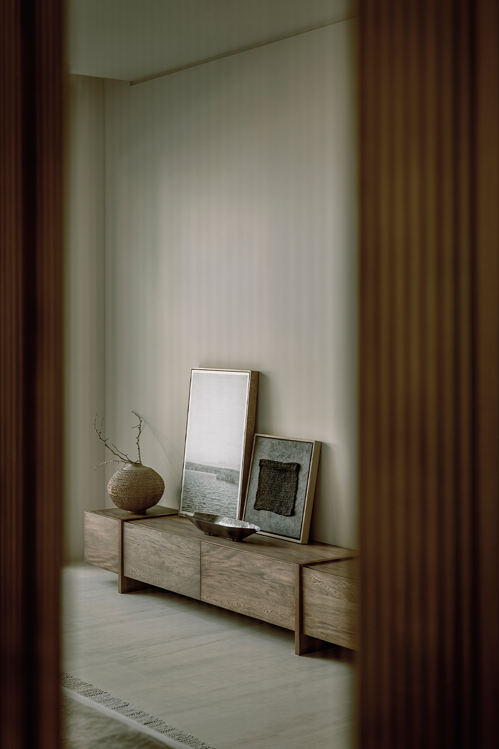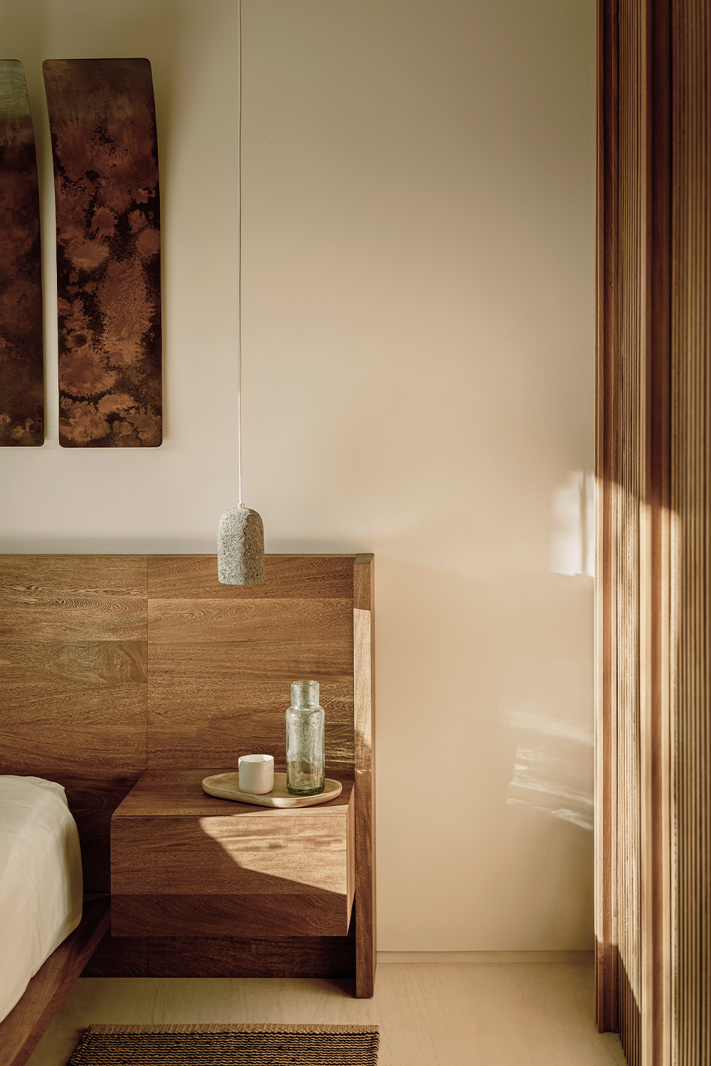 The neat design is complemented by an exquisite curation of jute, henequen, clay, copper and stone pieces from different parts of Mexico and the result of collaborations between Mexican artisans and artists.
