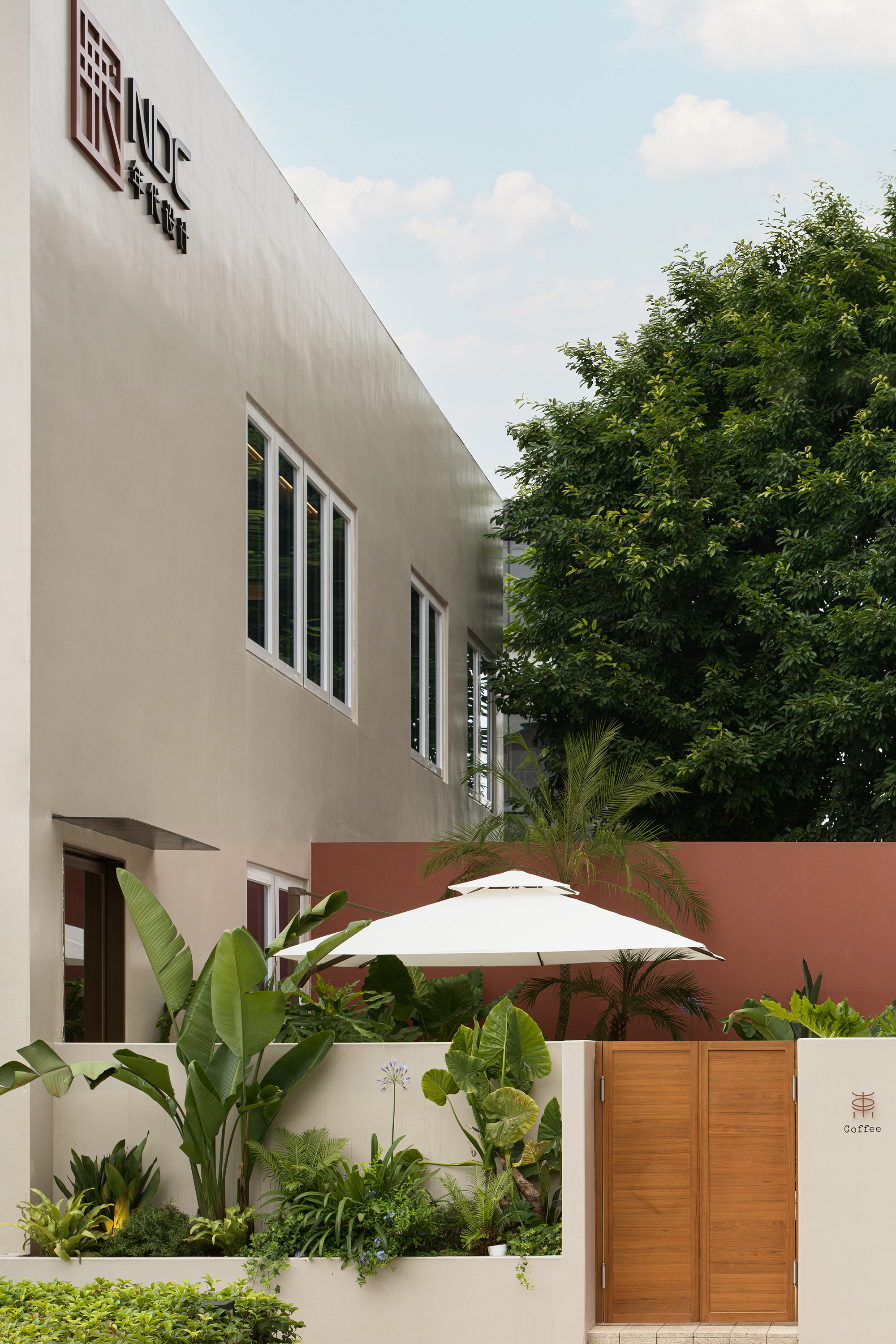 When Lai Xudong decided to create a new home for “ NDC Design ” it became his most personal project to date. More than just an office the space stands as a manifesto-silently expressing his philosophy on design, work and life. The new office is located in the Jinshan Yiku Cultural and Creative Industrial Park, a place where city, space and people grow together. This choice alone sends a signal: design is no longer an isolated art form. but the driving engine of both business value and human-centered expreience. Spread across two floors, the office blurs the line between work and life. The entire first floor is left open as a public Cafe with its own courtyard allwing design to flow naturally int the city’s everyday rhythm in the most relaxed and approachable way.