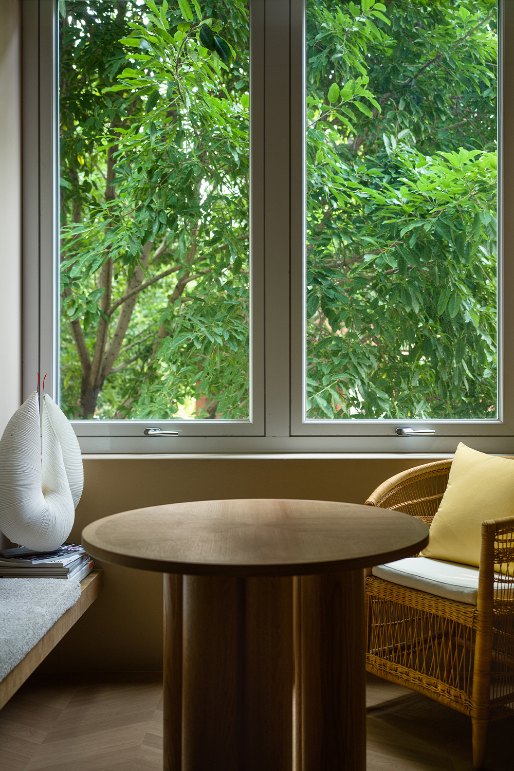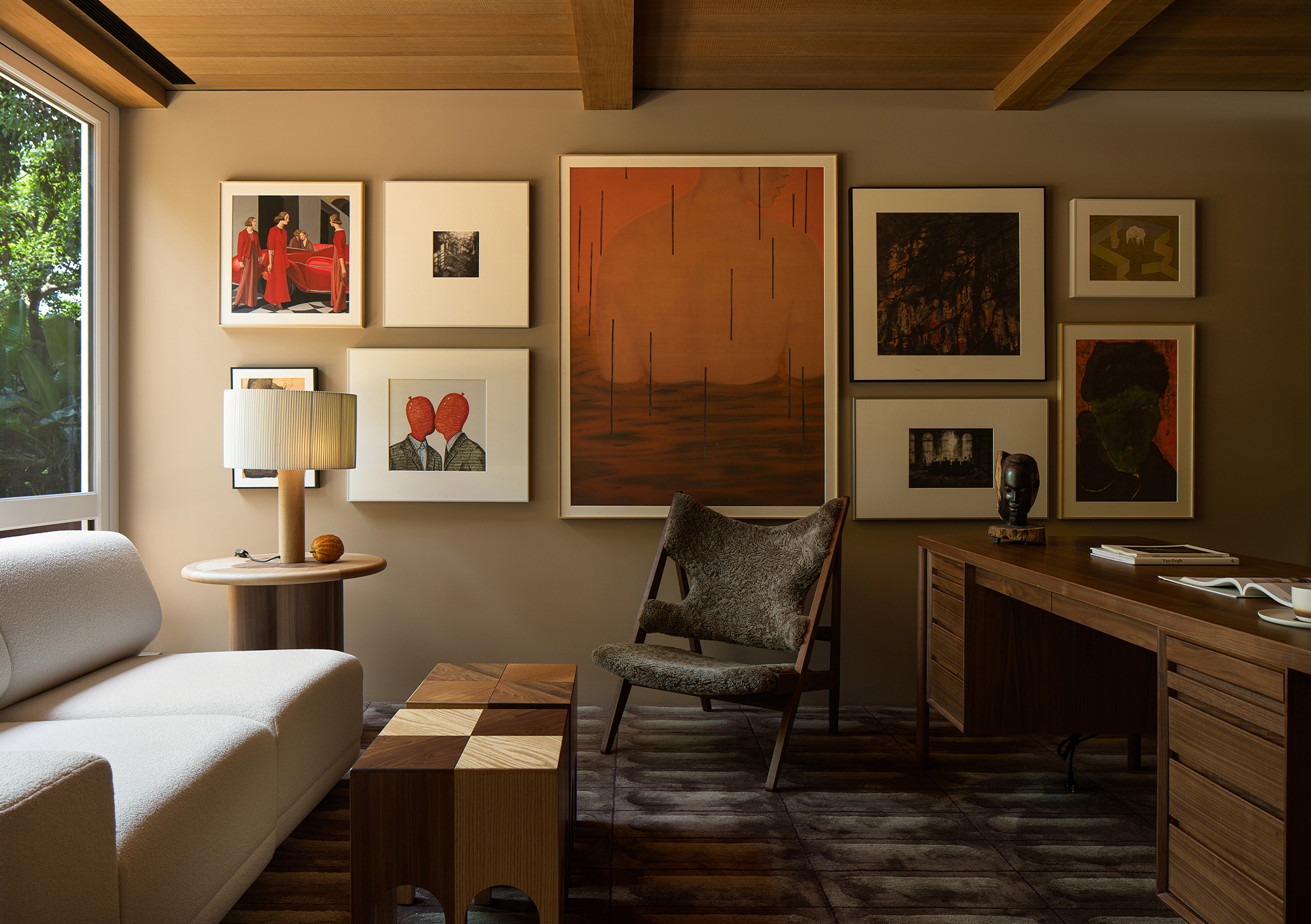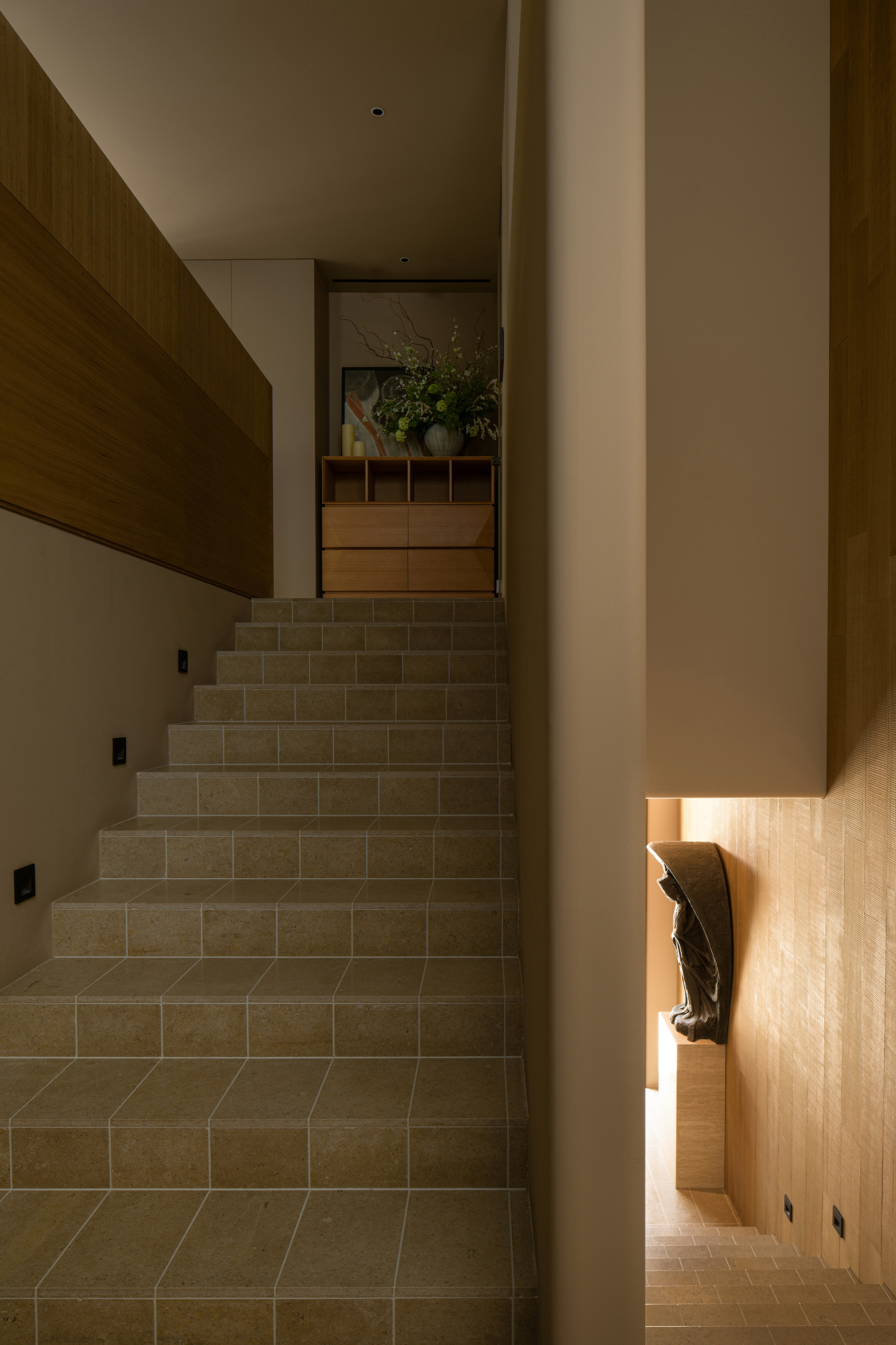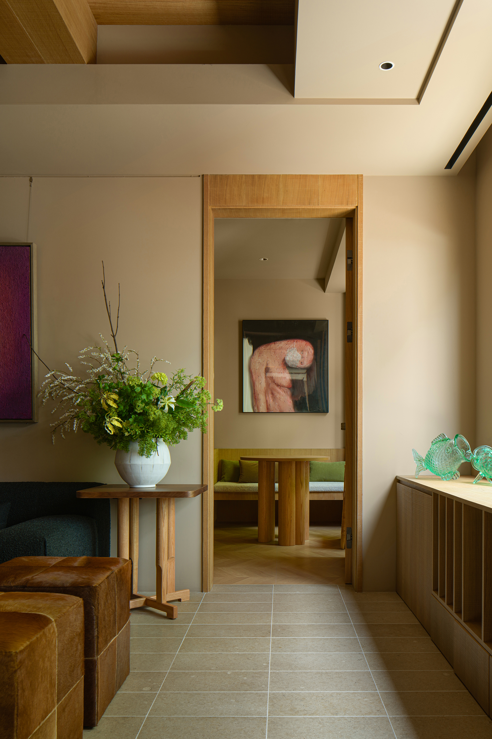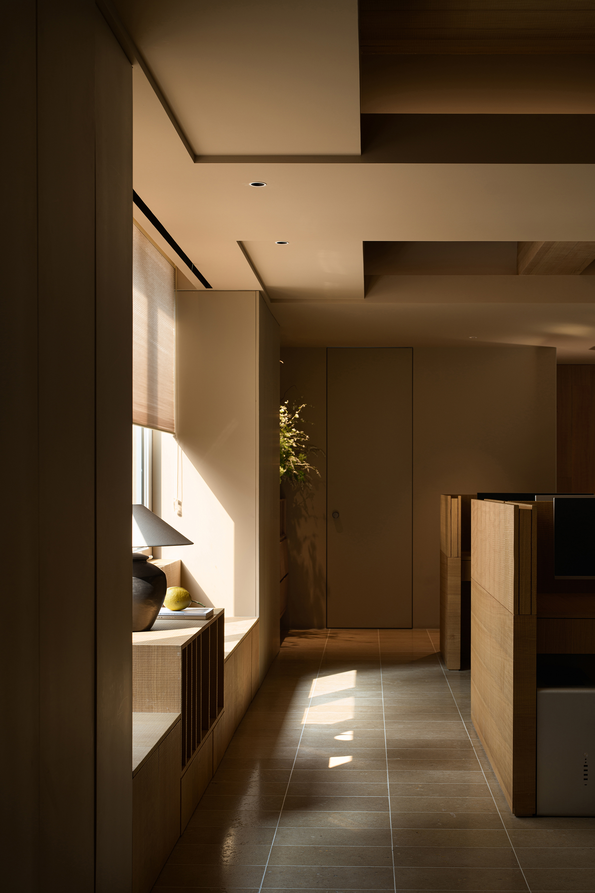 Ascending upstairs, the mood shifts from open to serene, leading into a focused workspace. Here, the atmosphere is not coldly corporate, but quietly artistic and restrained. Warm wood tones and light neutrals, paired with natural light and floral arrangements, create an environment of concentration and calm. The café’s lively aroma below transforms upstairs into a setting of tranquil professionalism.For Lai, the office is more than a workplace—it is a designer’s personal calling card. It carries both the professionalism of his craft and the taste of everyday aesthetics, radiating a quiet, confident, and creative energy.