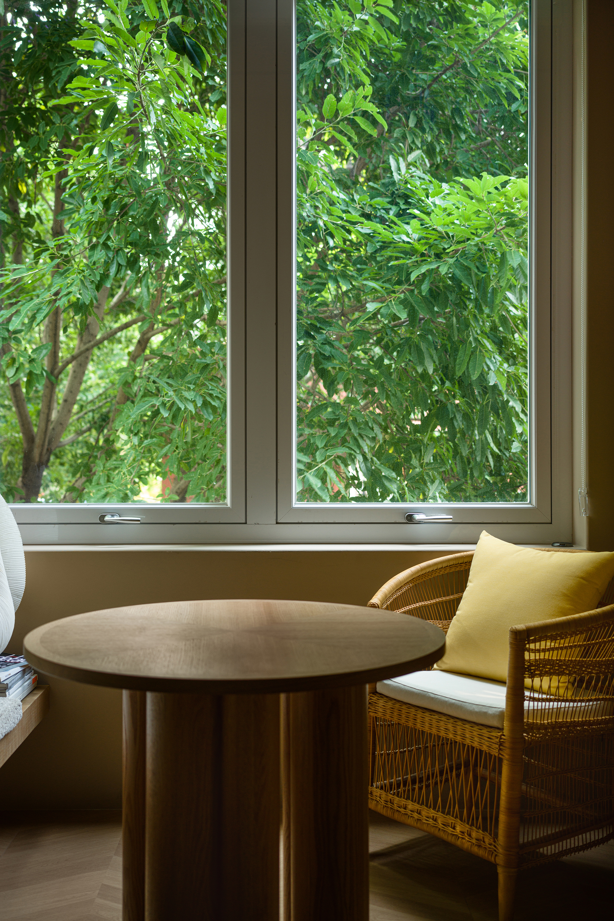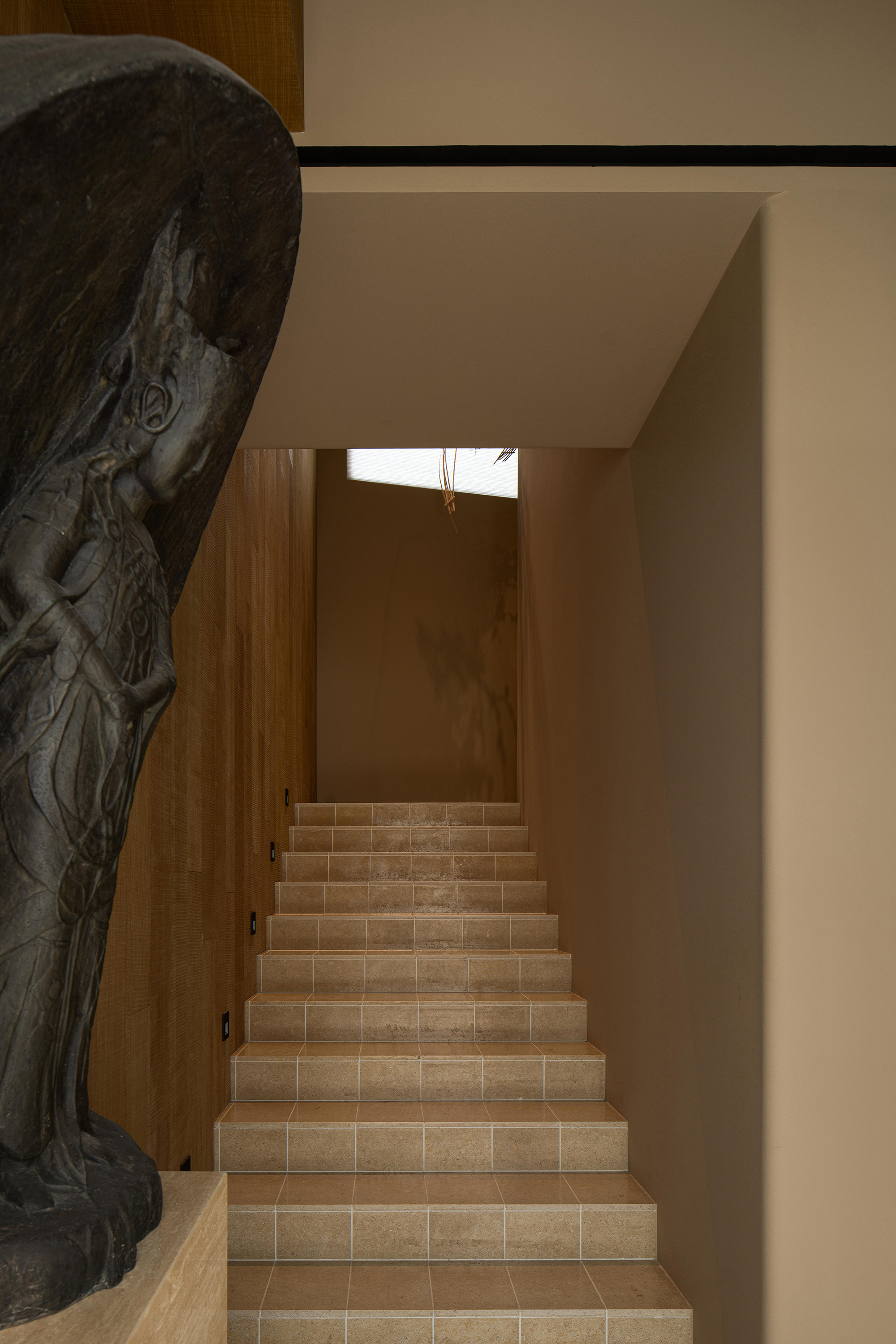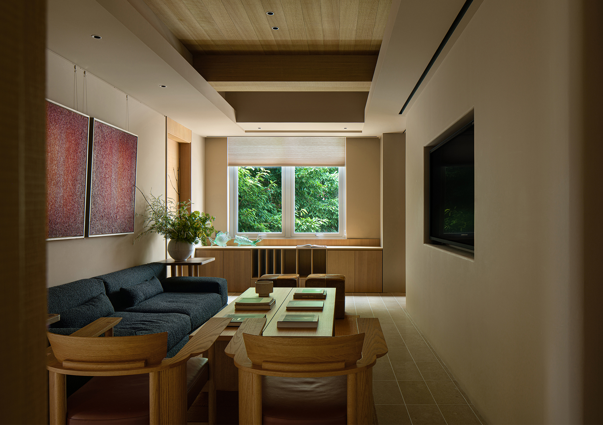Minimalist furniture and understated finishes ensure purity, while curated artworks throughout the space transform the office into a living gallery. Public and private spaces are balanced seamlessly. Meeting areas are simple yet versatile, designed for both hosting and collaboration. Upstairs, the team immerses themselves in creation, while a glance outside reveals the vibrant life of the courtyard below. This interplay of “life downstairs, craftsmanship upstairs” cleverly separates the dynamic from the contemplative, achieving a perfect balance between community and privacy.