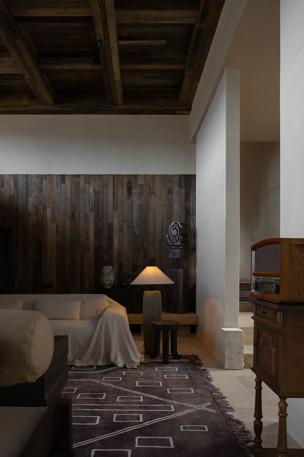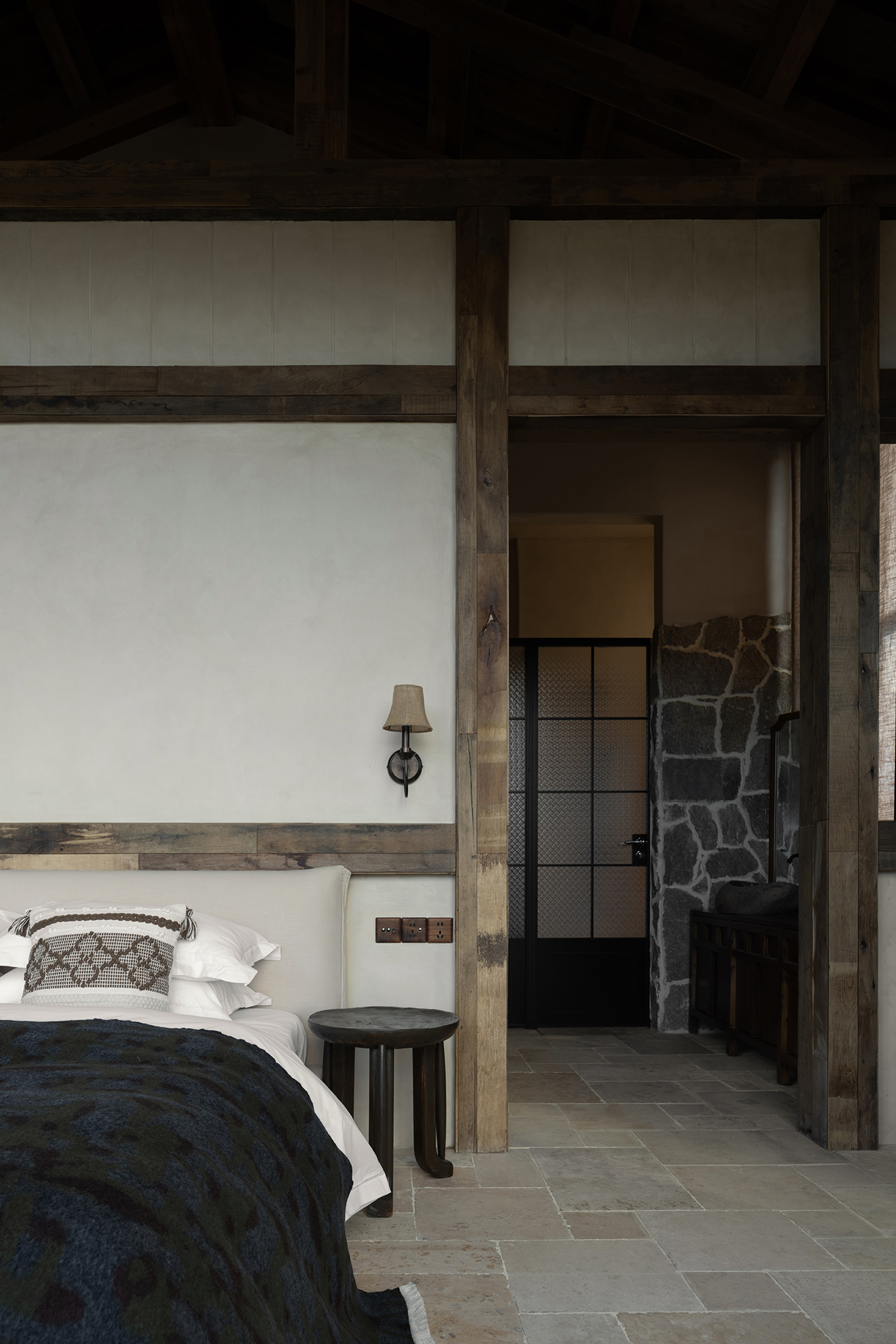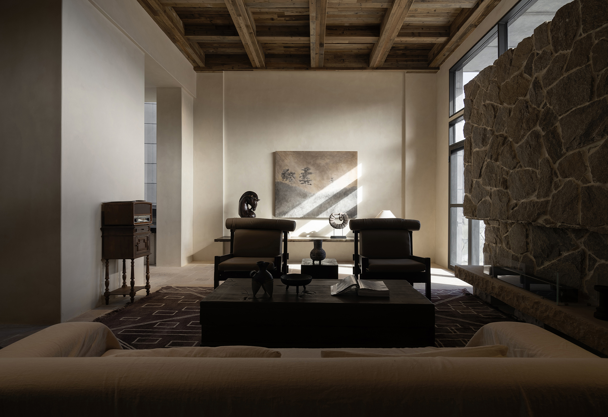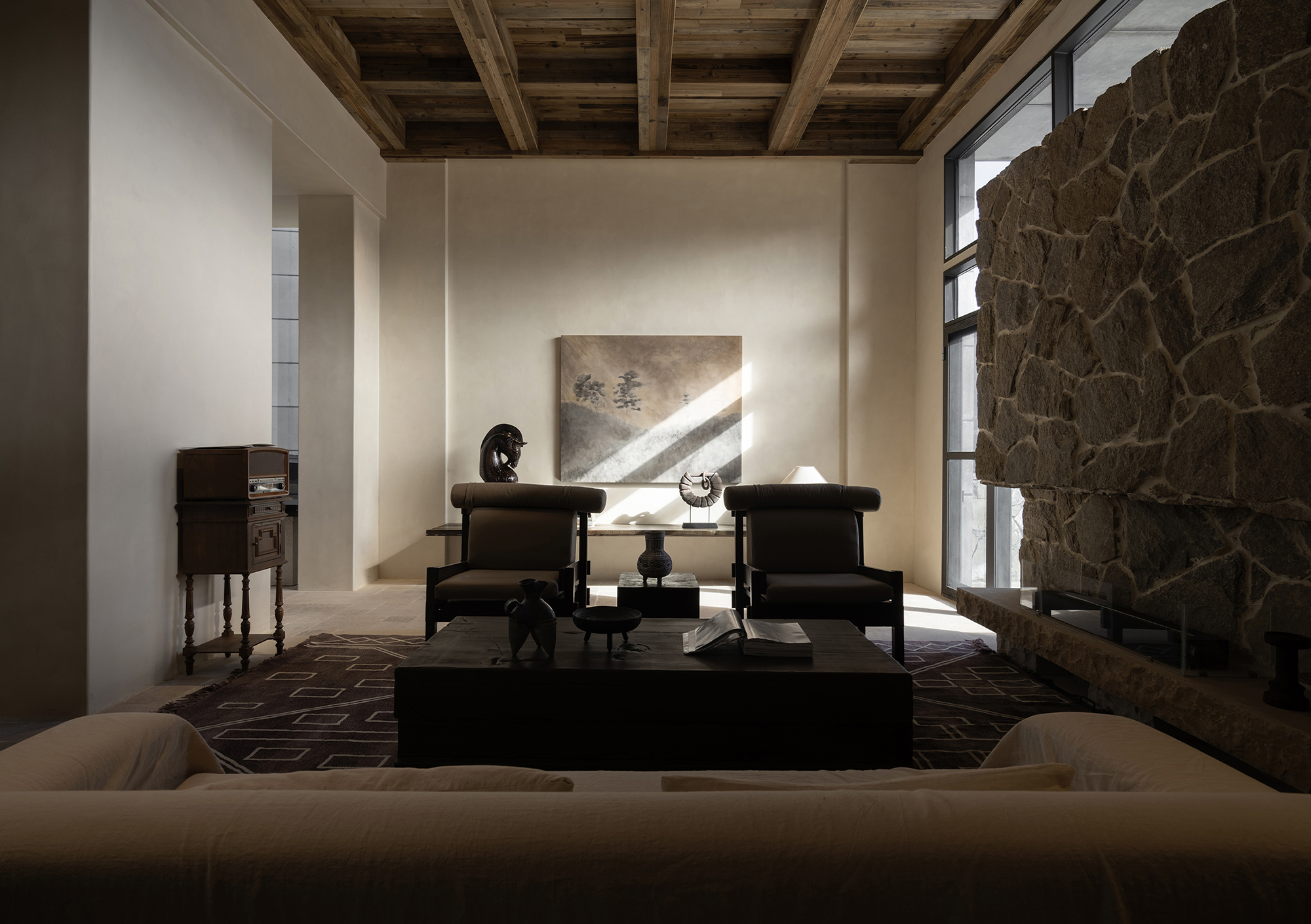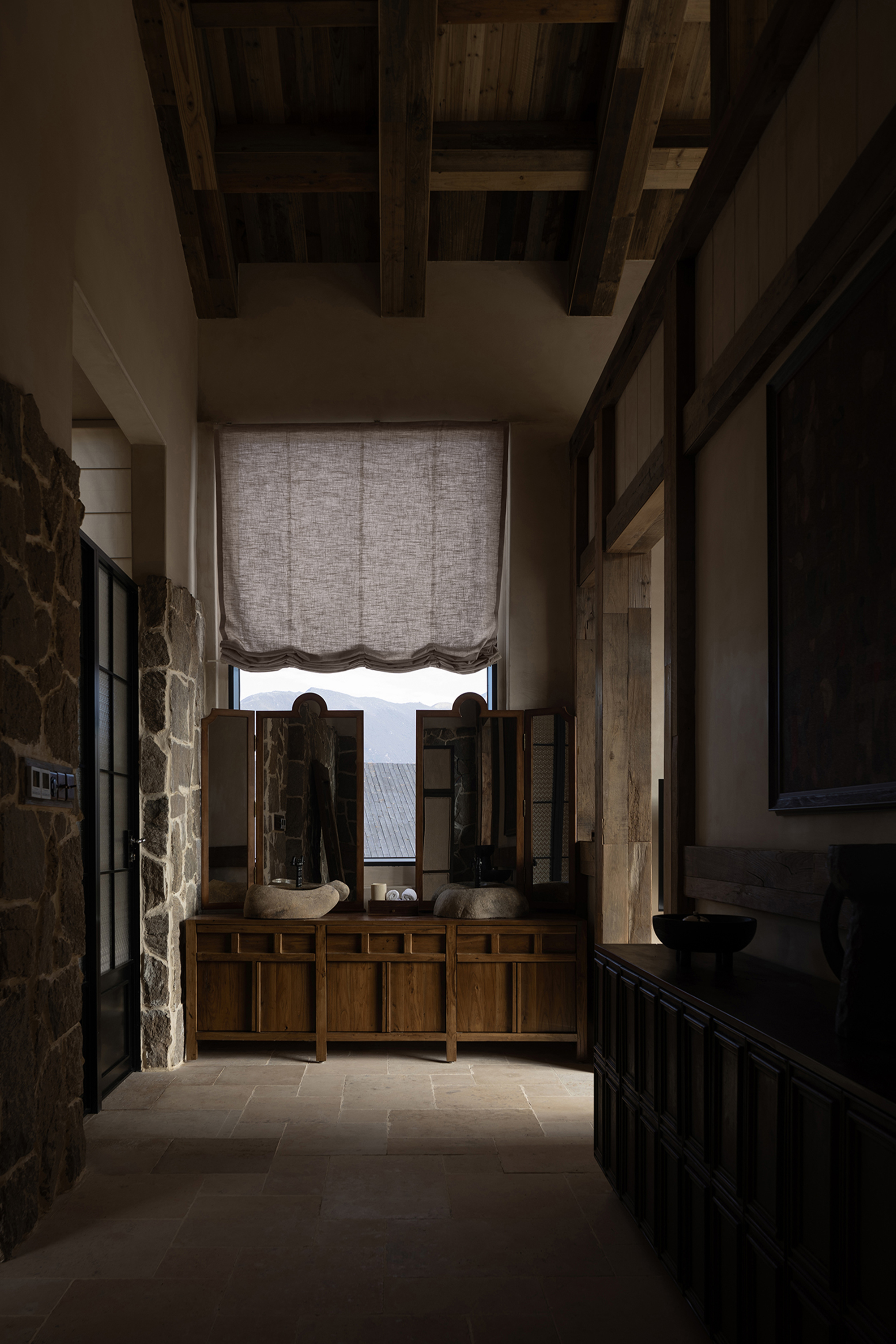 This is a renovation project located in Si'an Village, Rier Township, next to Siguniang Mountain in western Sichuan, which means "prominent platform" in Tibetan, and the Yunshan Mountain stands on a cliff held up by the forest. The roof of the renovated building is flush with the ridge of the Kanoer Snow Mountain, and the side near the cliff is opposite the direction of the sunrise of the Balang Snow Mountain. The original building structure sank into the forest, and the newly added buildings slowly disappeared into the mountain of Kanuoer Snow Mountain when the clouds and mist were filled, and the sloped roof and ridge converged into a "in" word, which is the origin of the project into the cloud mountain.