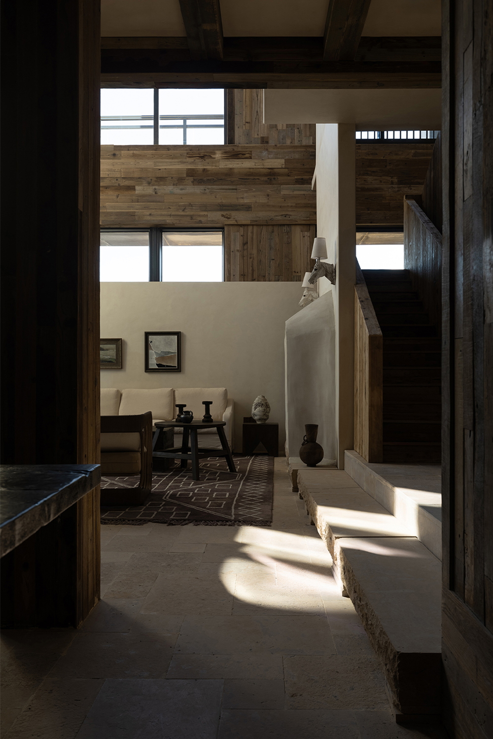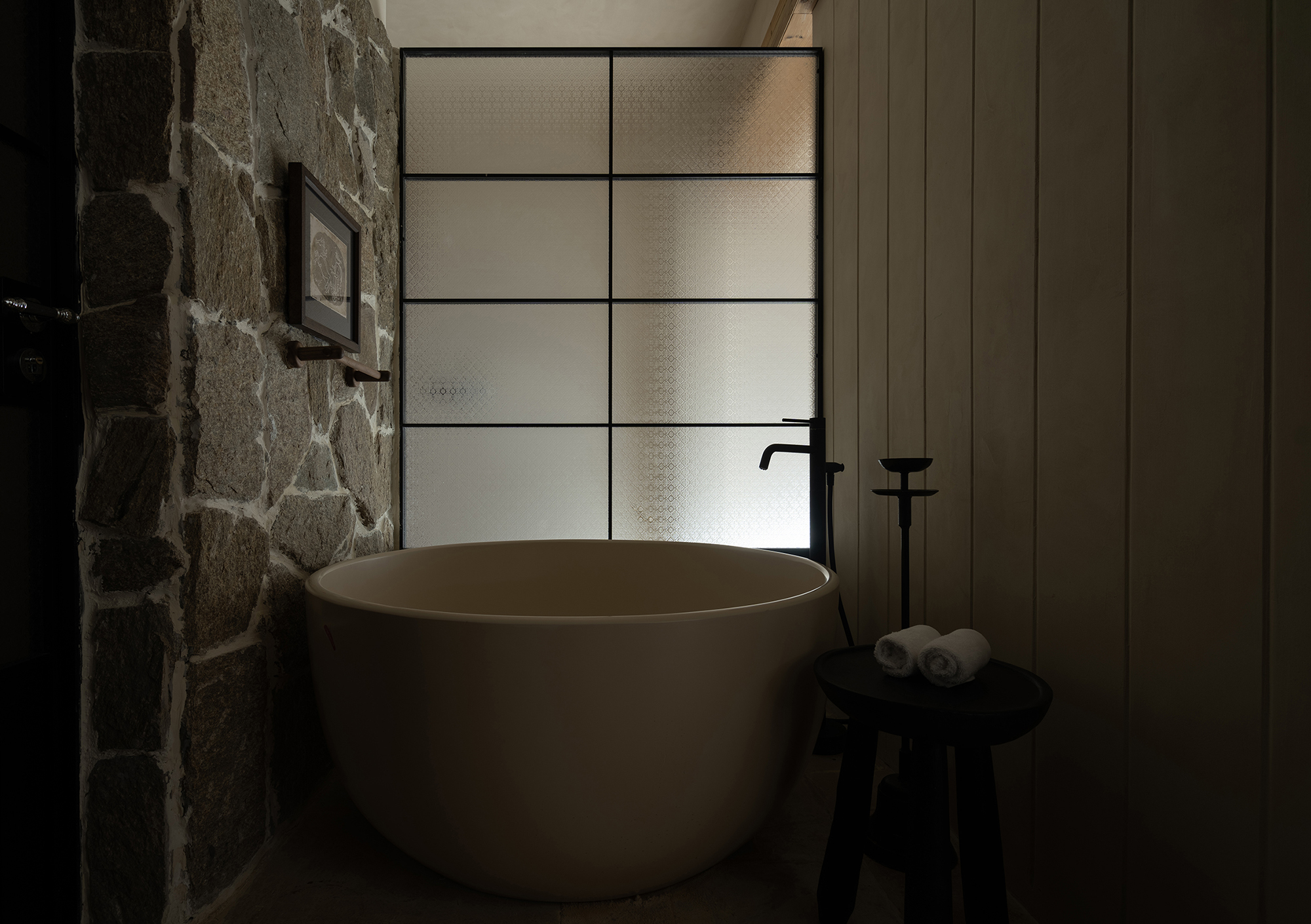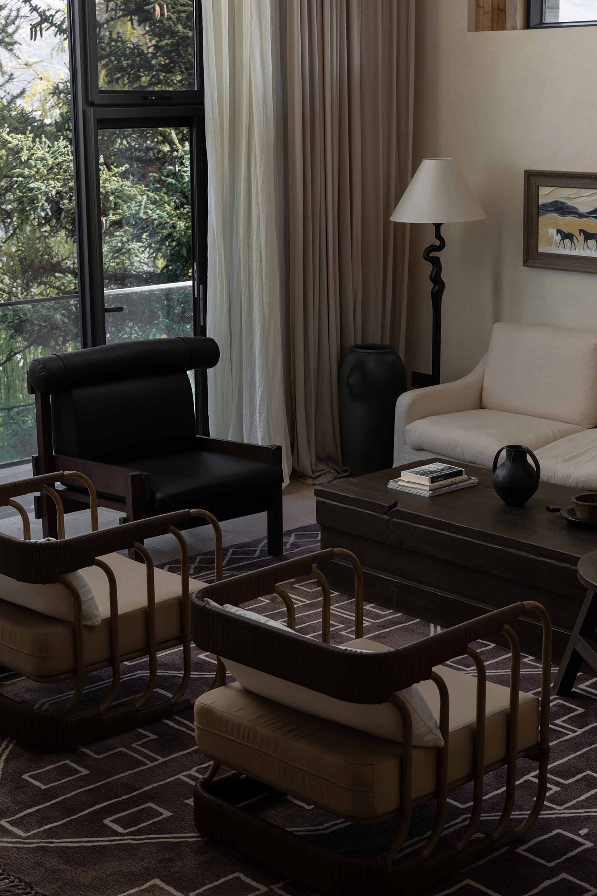The whole project can be regarded as an artificial continuation of the growth of the mountain peaks, through the localization of the materials of the external wall and the garden, the first floor and the mountain woodland are cleverly integrated, the living room and dining room are placed on the first floor, the landscape is divided by the wall and glass, the interference of other buildings is hidden, and each landscape is left to the snow-capped mountains, with the dense forests around it, as if you are in the mountains and explore outward.