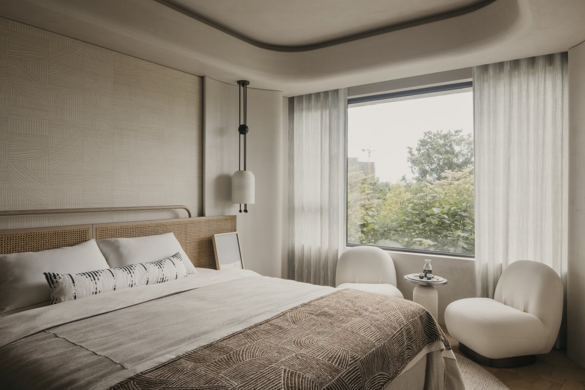 What resulted was an elegant flat in Hainan which takes its cues from a wild coastal landscape. It draws inspiration from sweeping waves and undulating forms which lie in the depths of the ocean floor. The design is based on an artistic couple who have built their dream home. They have two young children Jack and Hannah. Their family home is a reflection of their values and poetic outlook on life. They have cultivated a serene abode that goes beyond the mundane and merges art with life.