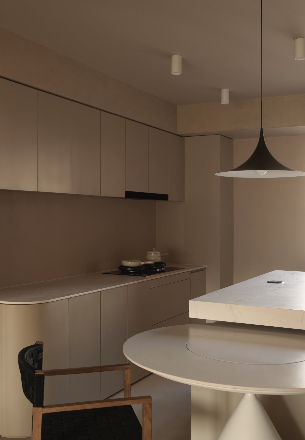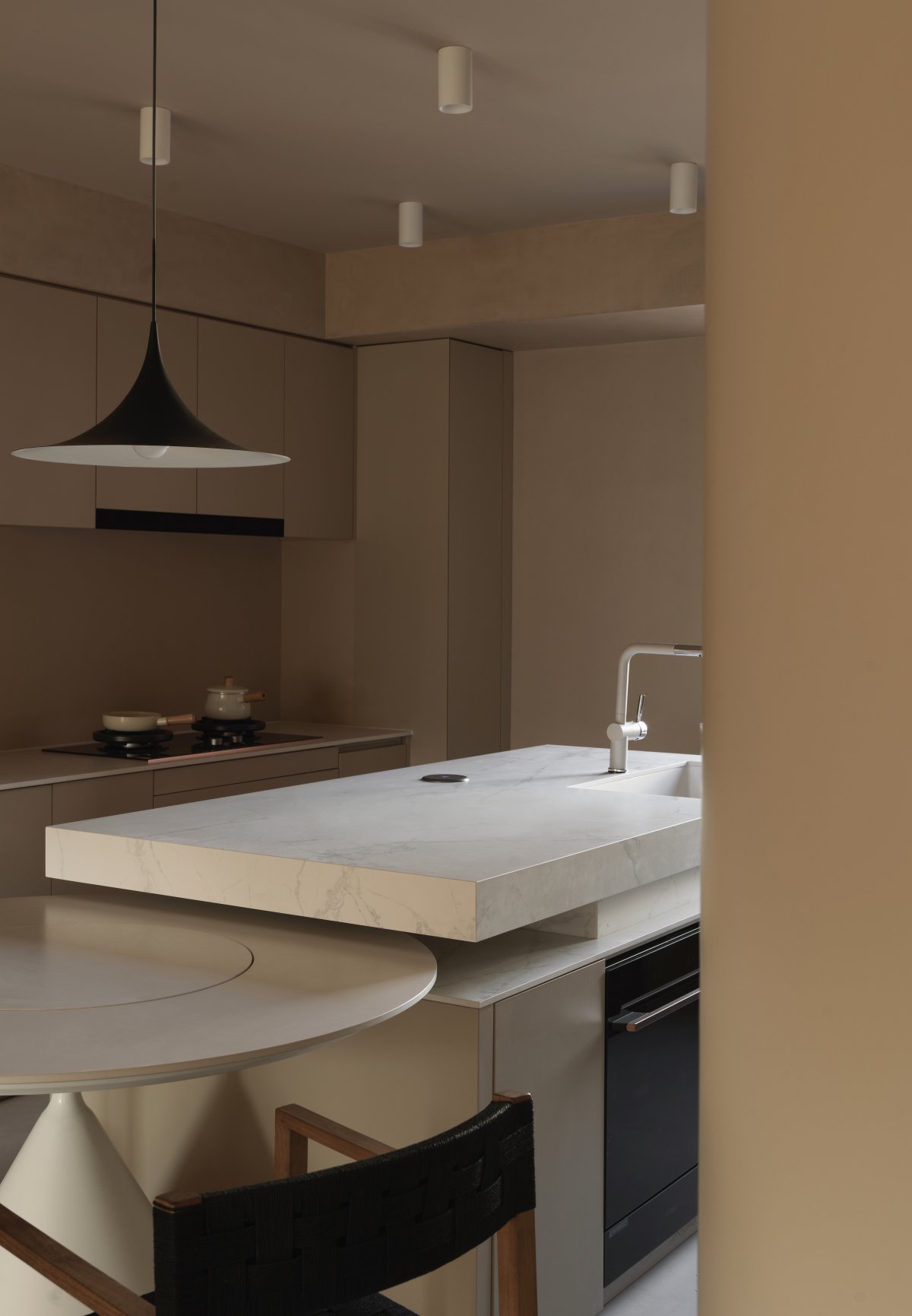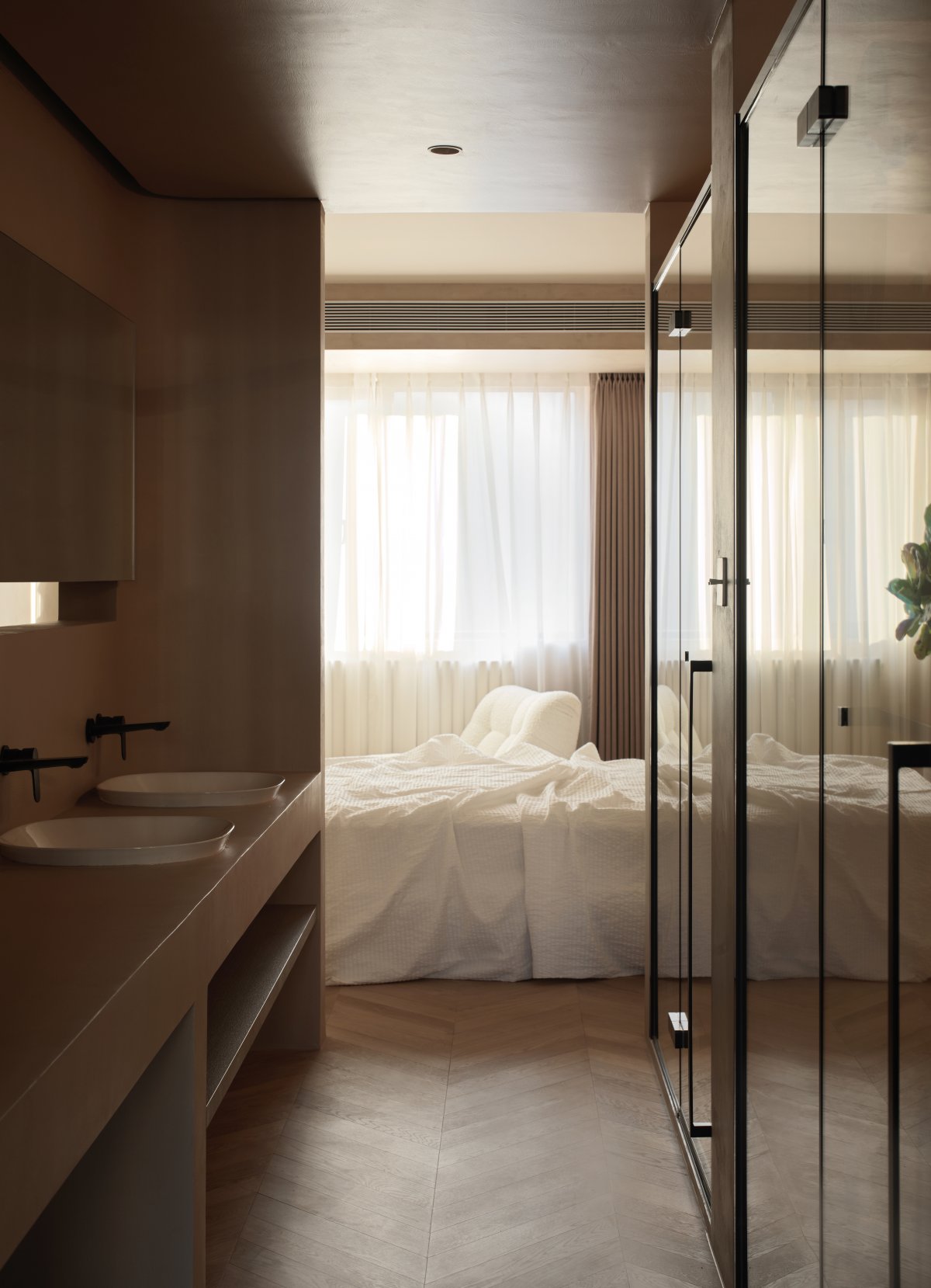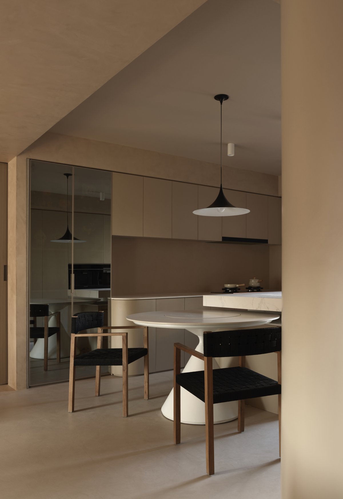 The open kitchen space and the layout of the central roundabout comply with the lifestyle of young people, endowing each functional space with close connection. The master bedroom takes the form of a suite, with a separate bathroom and a separate cloakroom for bringing the cosy living experience.