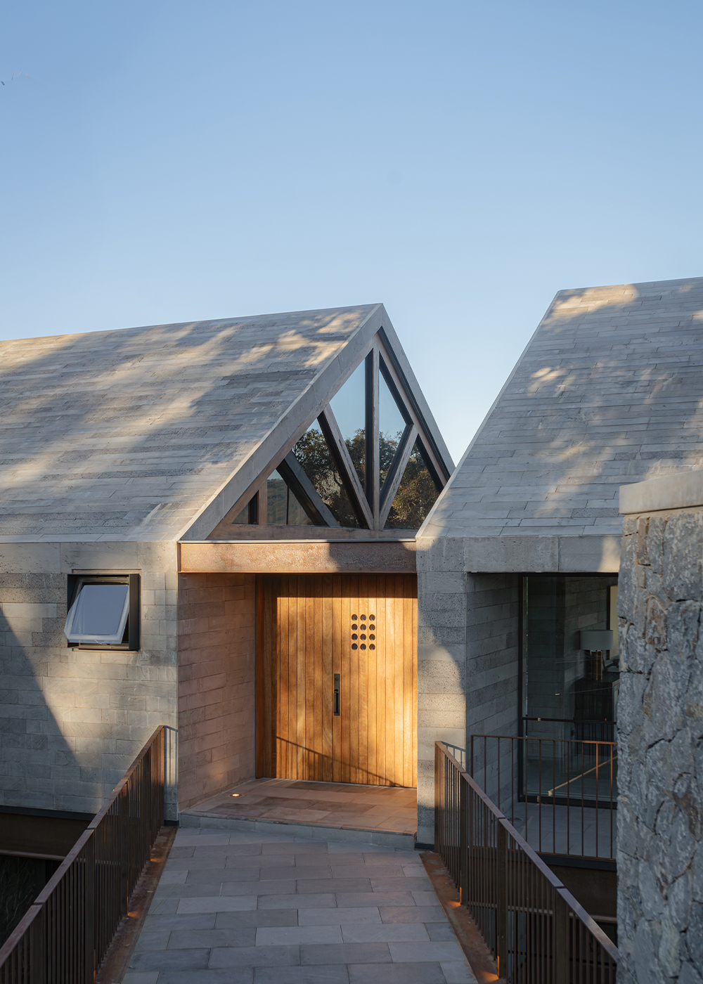The interior layout responds to the intention of creating distinct experiences: intimate spaces for rest, featuring comfortable furniture and soft textiles, and social areas designed for gathering, where furniture arrangement encourages fluid dynamics and interaction. Decorative lighting plays a key role in defining the atmosphere; floor, table, and wall lamps accompany the shifts in natural light, particularly during the morning fog and the sunsets over the terraces.