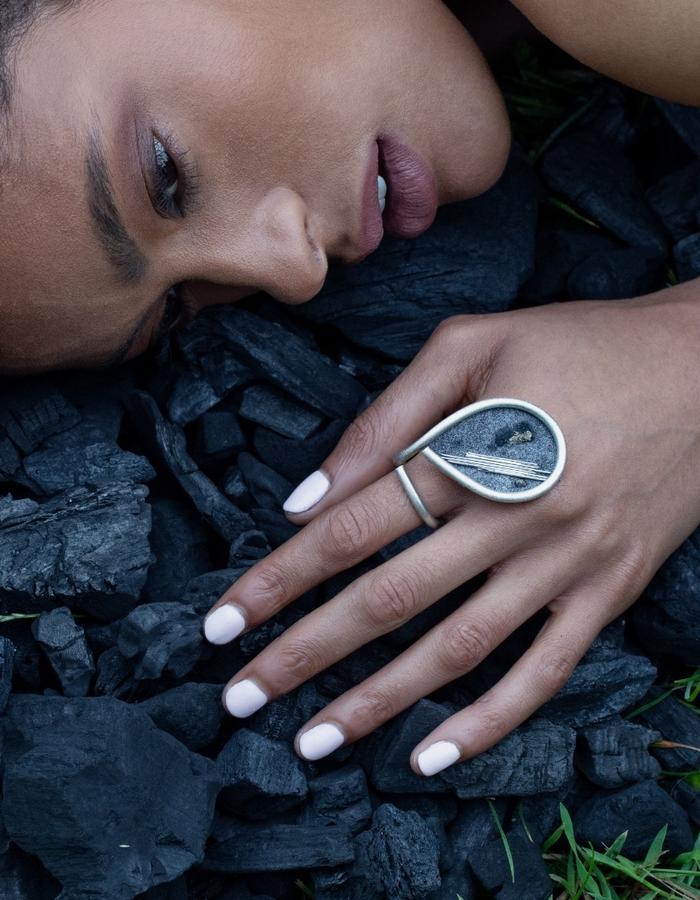 Her interest in contemporary jewelry appeared as a natural change of scale that she initially had the chance to experience in the larger, dimensionally speaking, context of architecture. Therefore, she started making jewelry applying the same creative process used in architecture, but the work has slowly moved from geometrical patterns and mathematical algorithms, deeply imprinted on her mind, to a more experimental approach. The jewelry mirrors her fascination with imperfections. Surprising details placed in apparently conventional shapes and she never cease searching for a certain unexpected strength that lies in fragility and lightness.