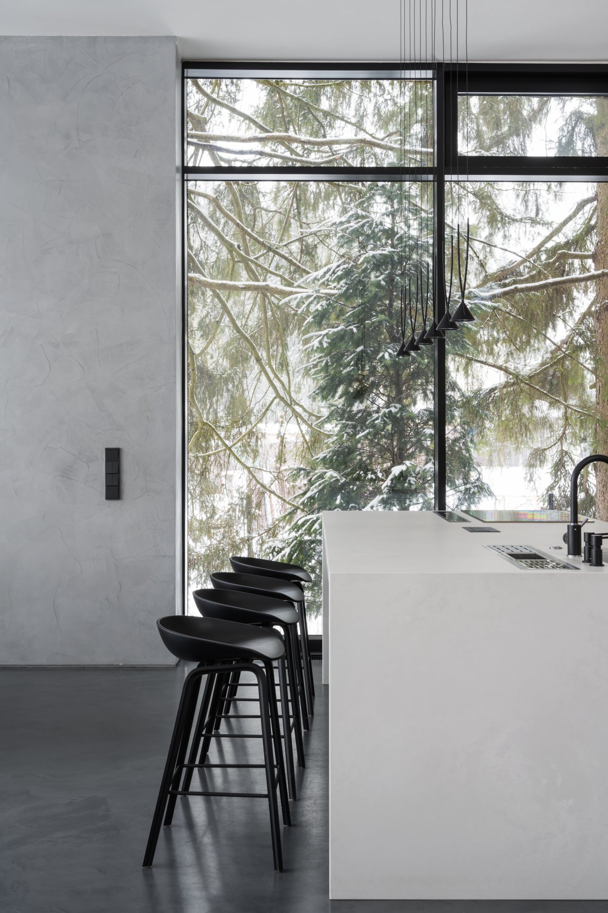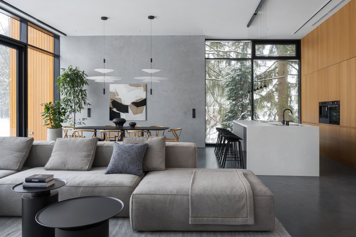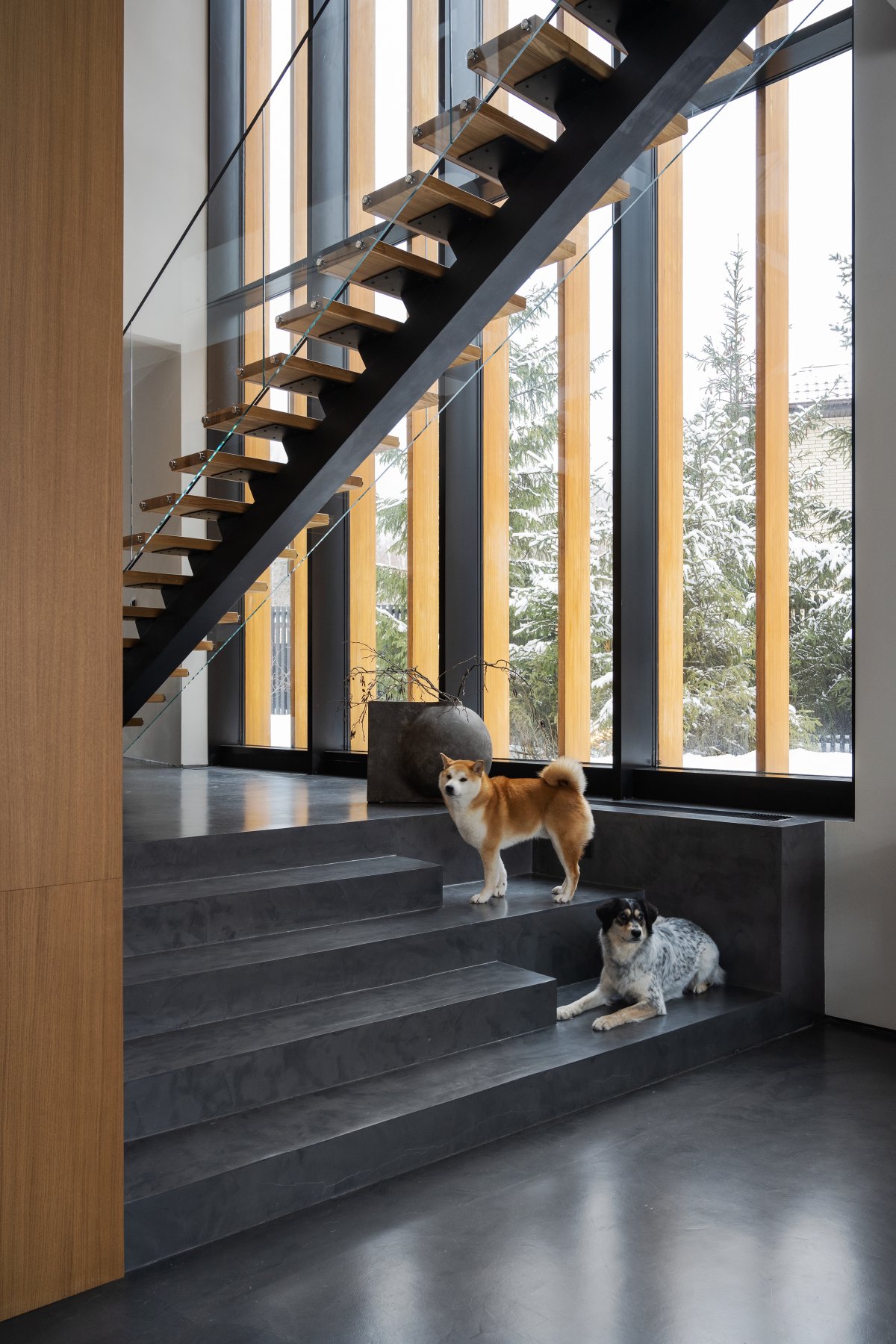 This 330 m² house in a cottage community in the Moscow region was designed and brought to life by the "80/88" team. Nikita Sergienko led the architecture of the house, while Ana Sergienko worked on the interior design. The primary aim of the project was to maintain a connection between the home's interior and its natural surroundings. The view outside changes with the seasons, influencing the perception of the interior.