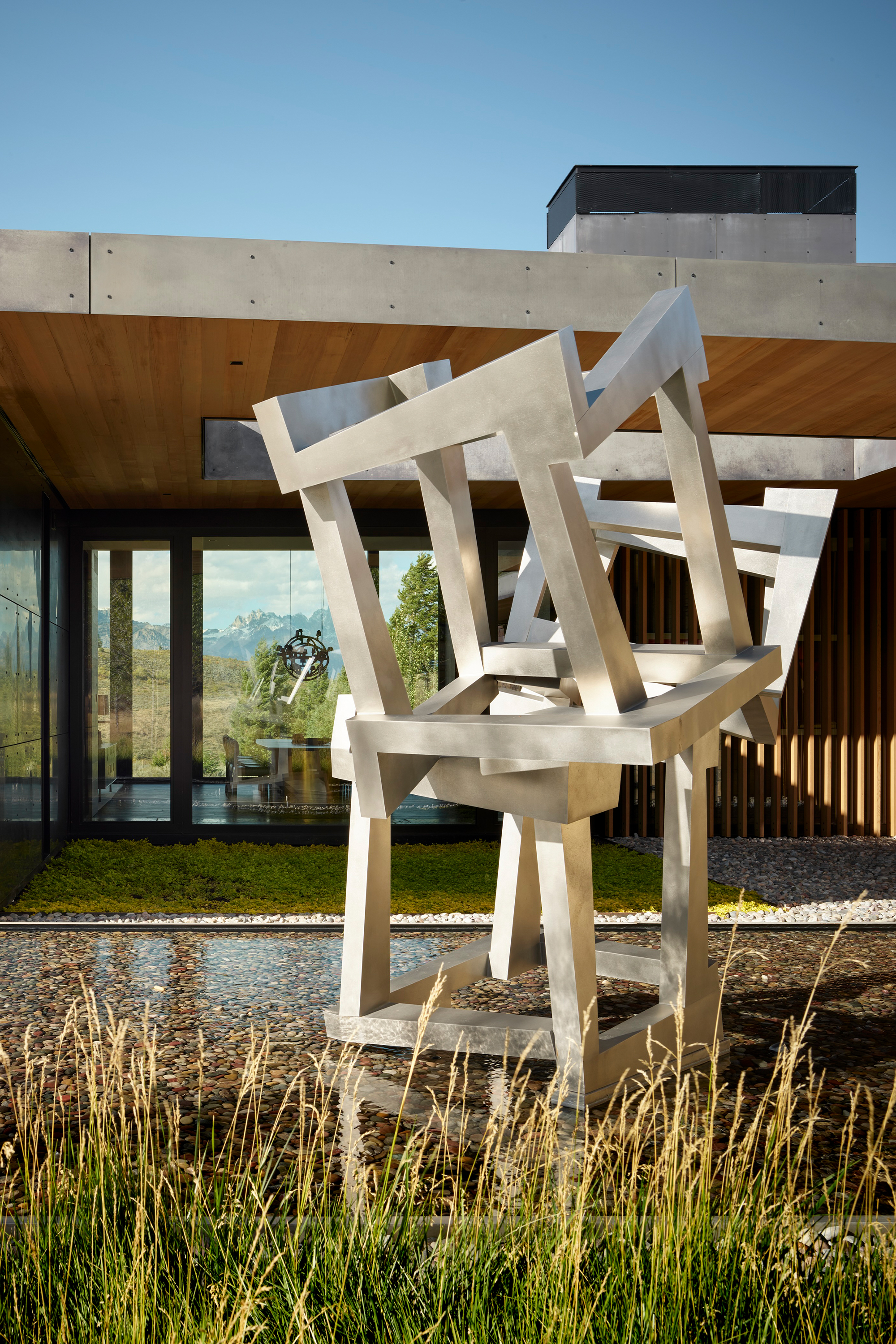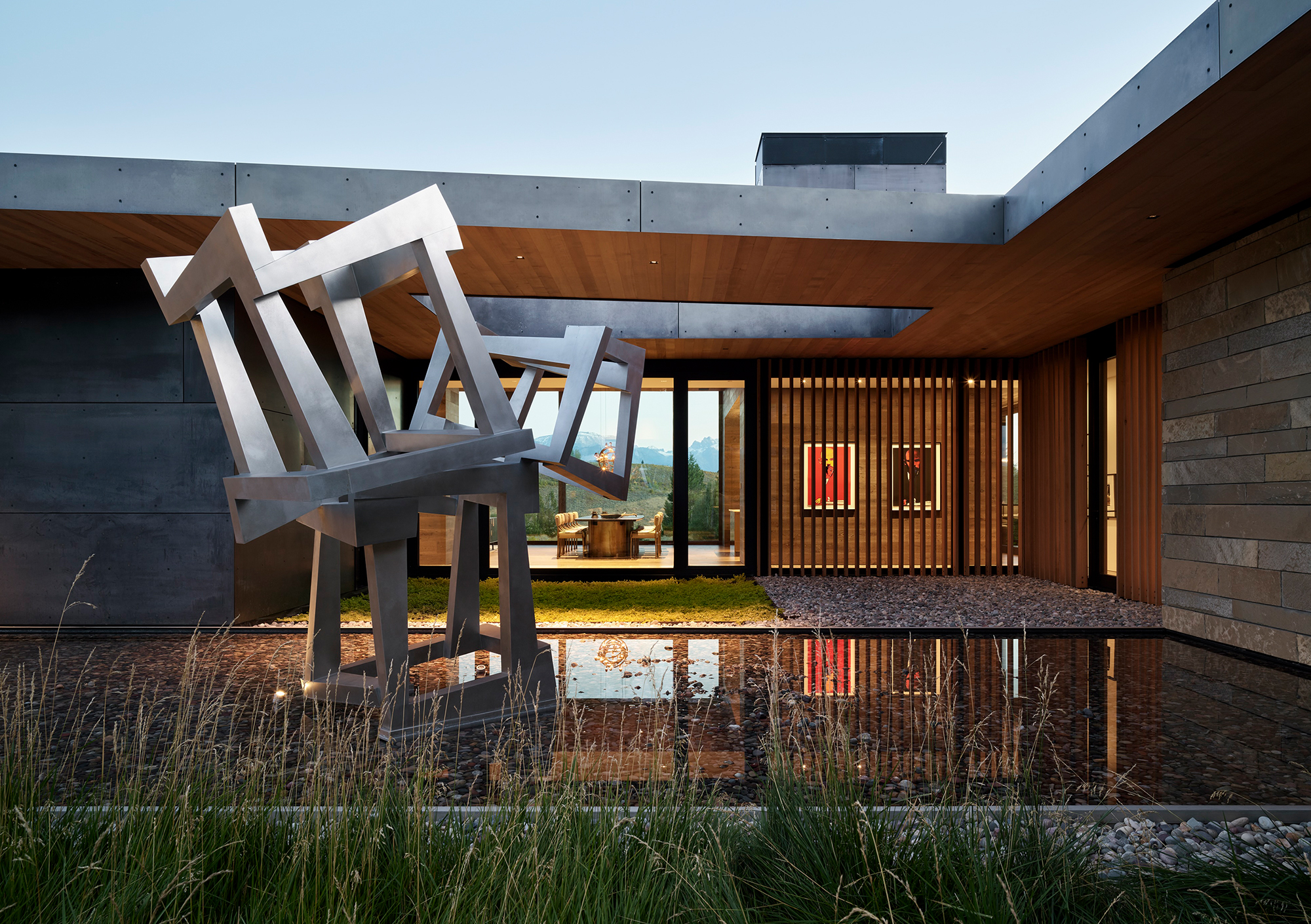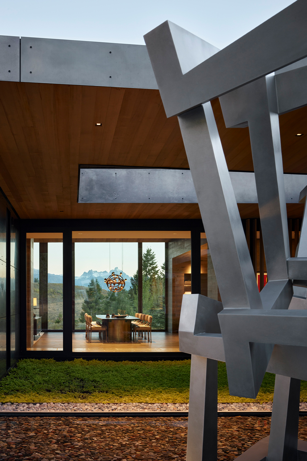 For the owners, longtime residents of Jackson, Wyoming, creating a home that reflected their shared love for art and the natural environment was a driving force for the project. Envisioned as a multi-generational retreat, the home serves as both a family sanctuary and a living gallery.