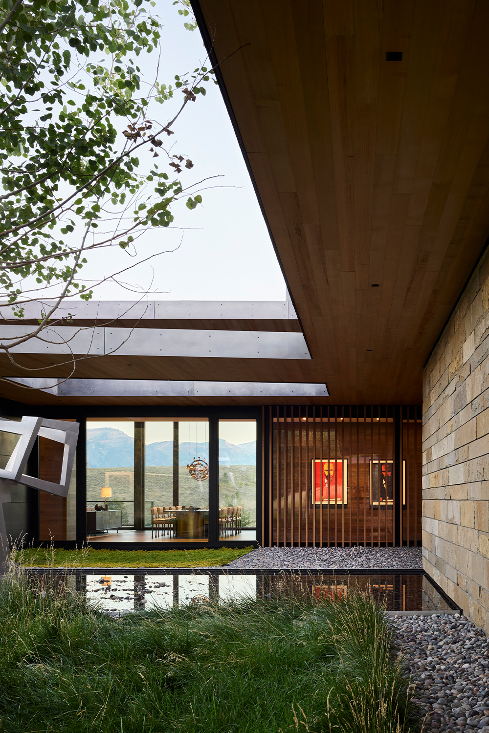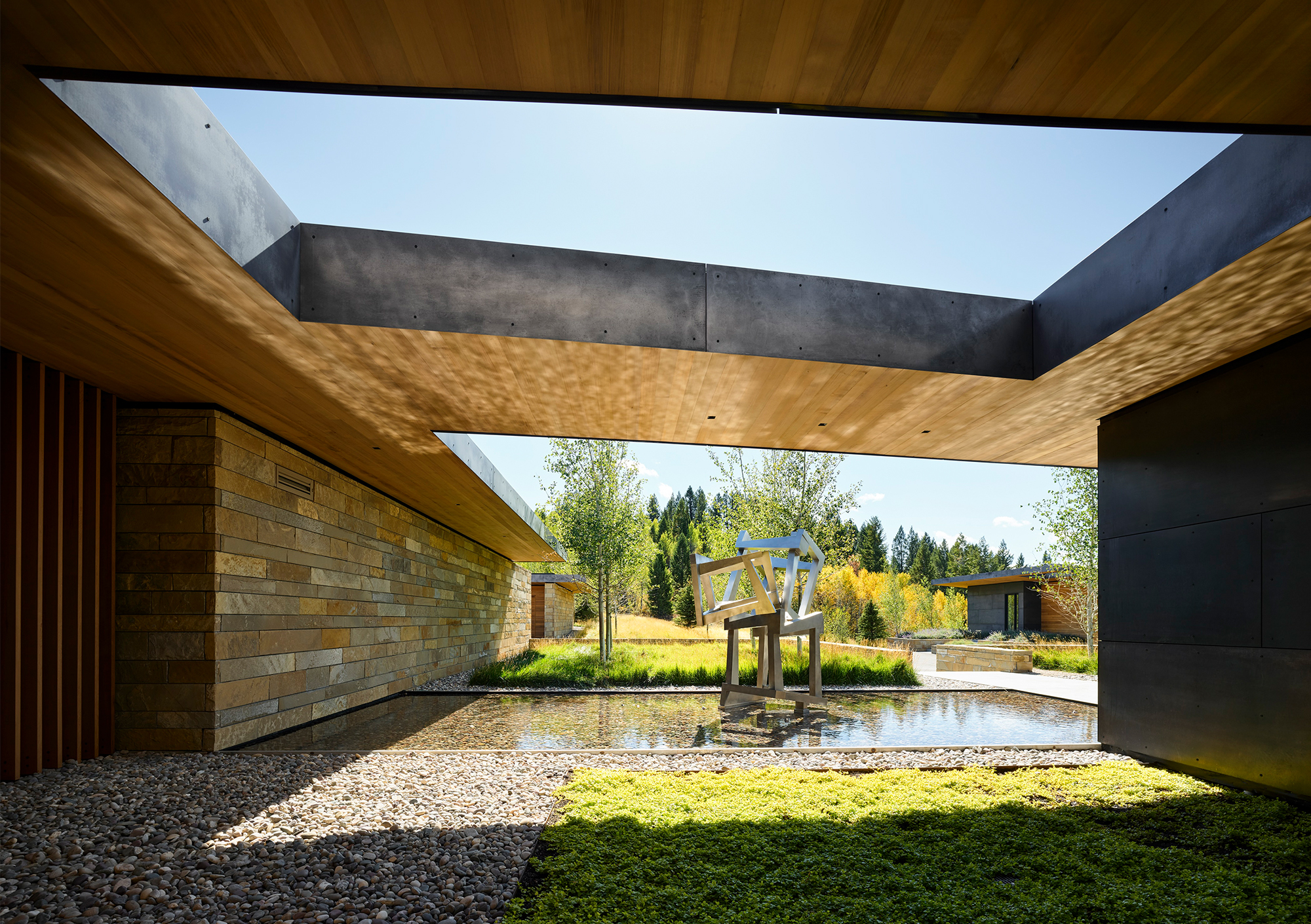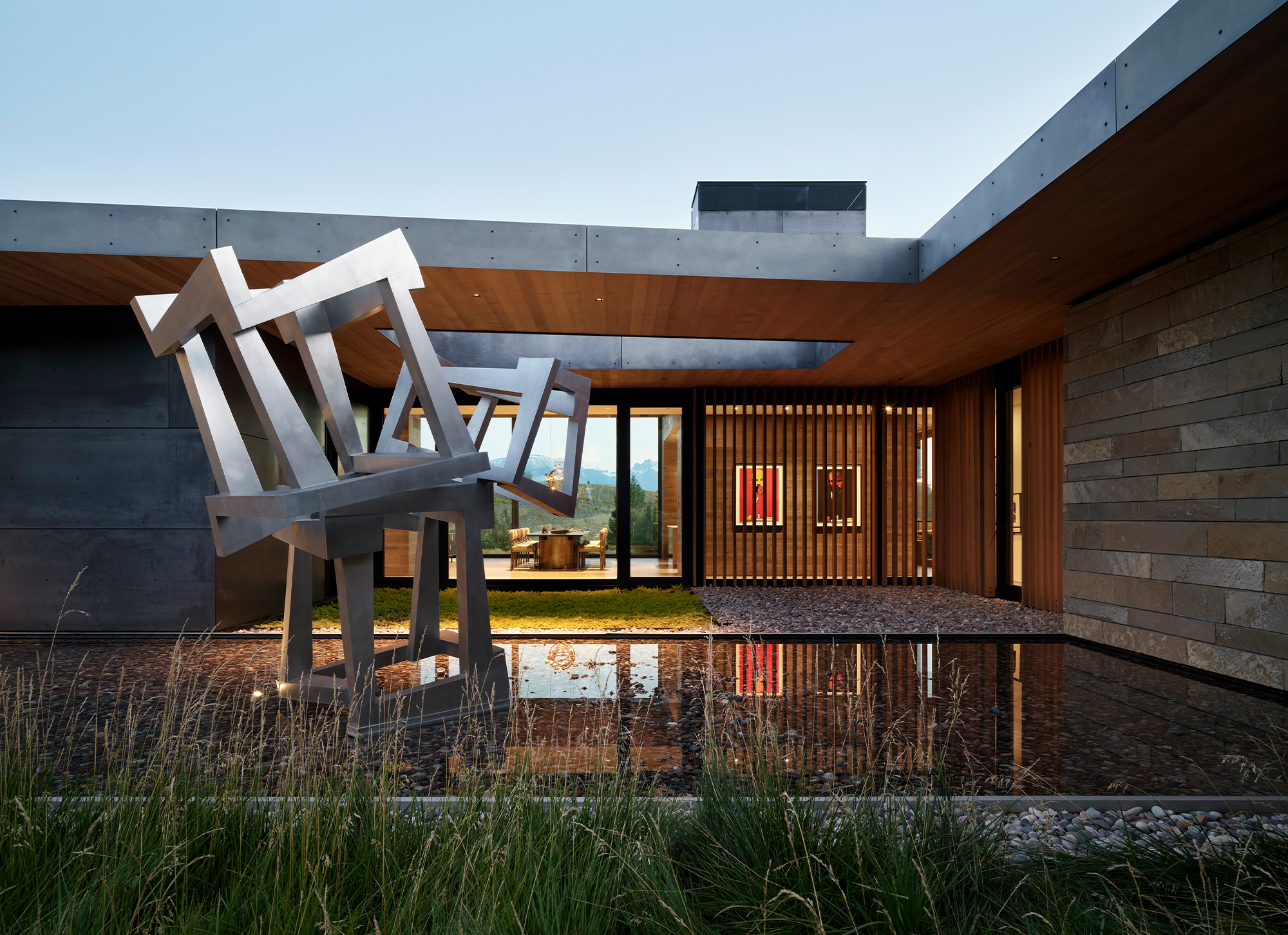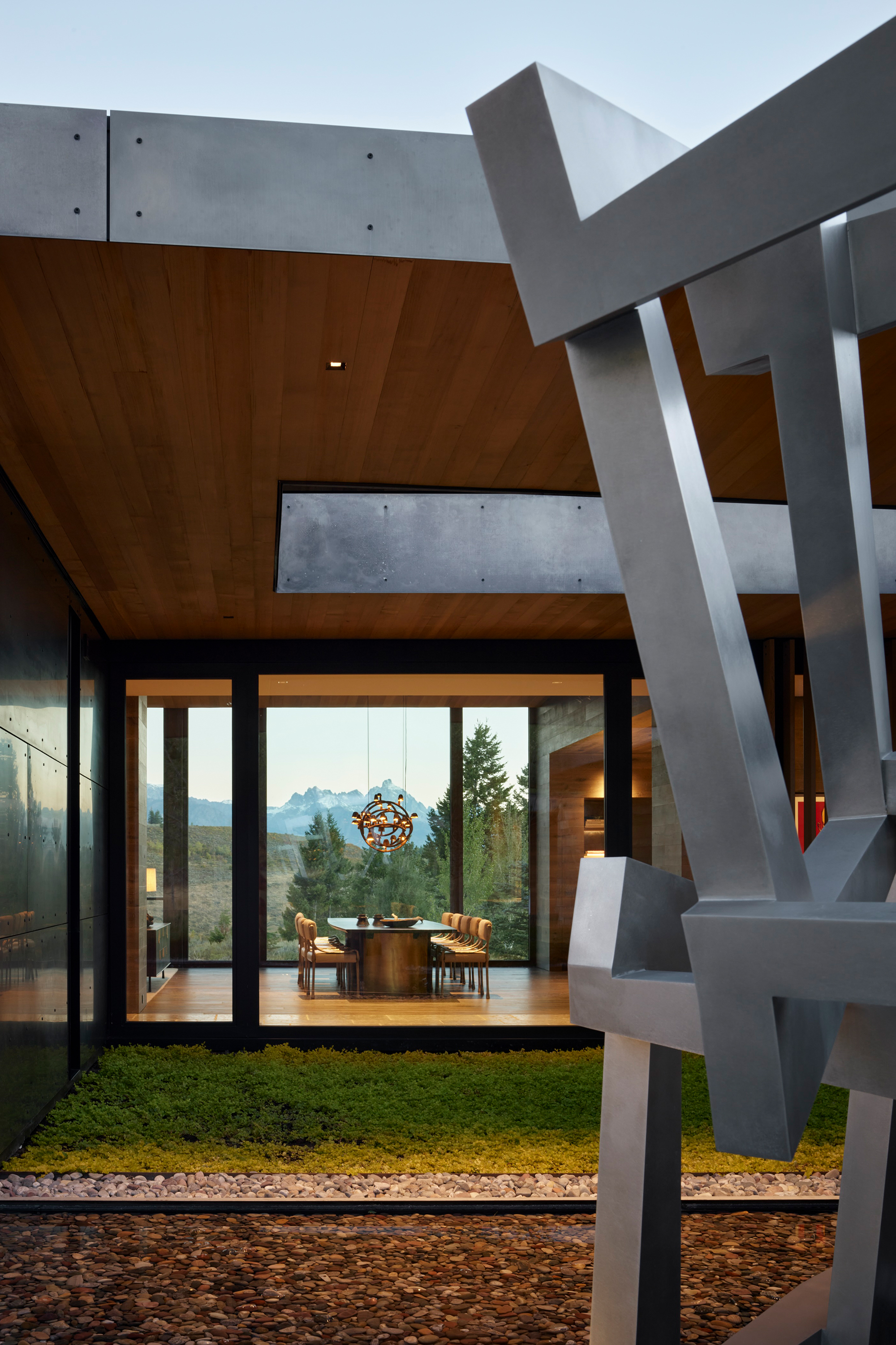 For the owners, longtime residents of Jackson, Wyoming, creating a home that reflected their shared love for art and the natural environment was a driving force for the project. Envisioned as a multi-generational retreat, the home serves as both a family sanctuary and a living gallery.