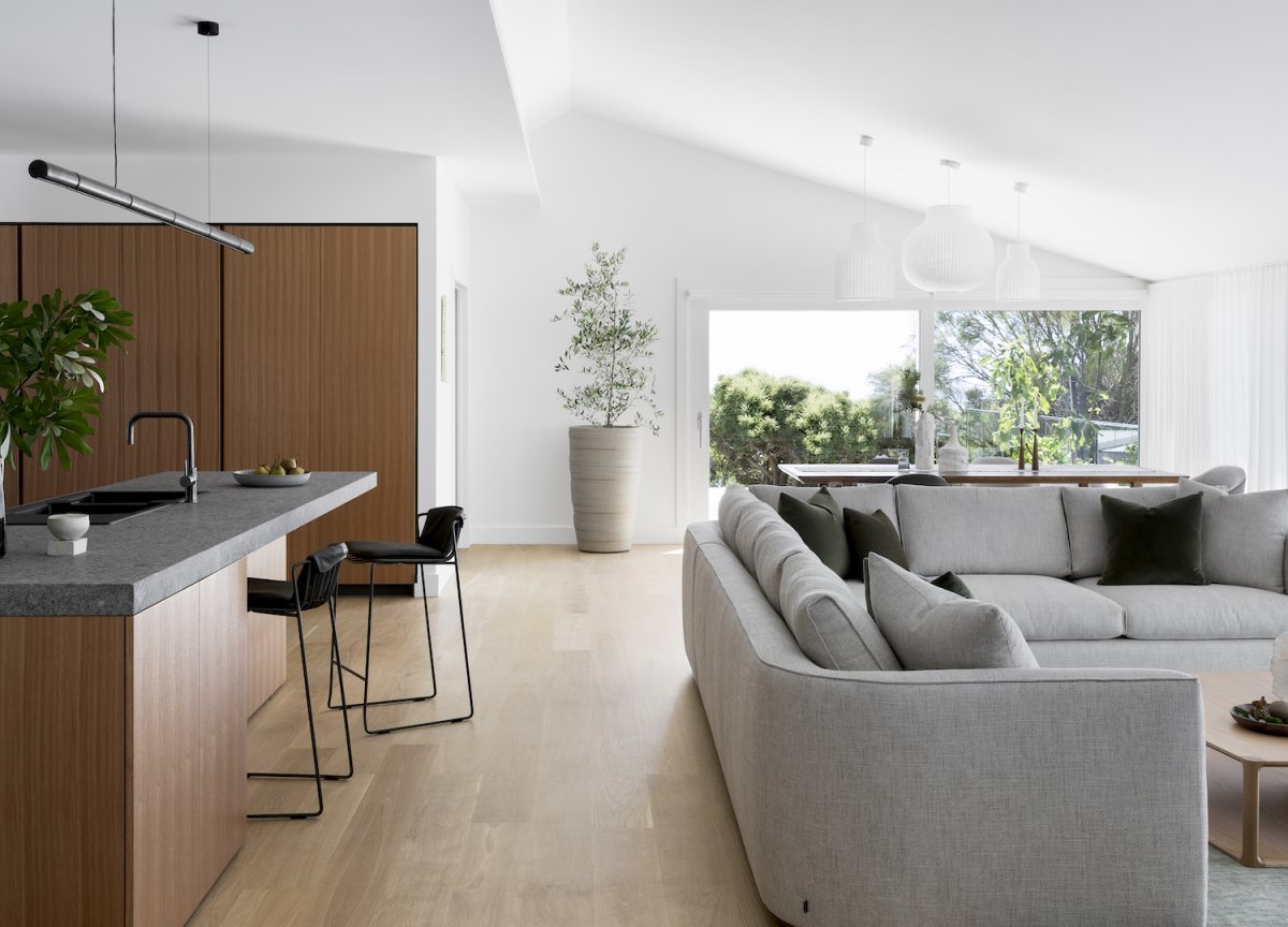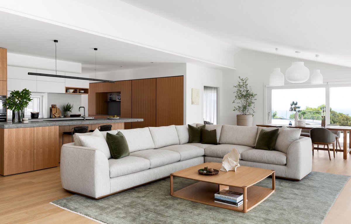 This stylish, modern beach house Cape Schanck, located at Cape Schanck on Victoria's Mornington Peninsula, is designed as a family holiday home for a couple and their adult children. In fact, the project is a renovation of an existing two-storey house. The house was drafted by Rod Hannah Design Group and built by Anderson Homes; The interior was designed by Cantilever Interiors in Melbourne, and the result is to create an extremely refined, functional family home with soft tones and natural textures that allow the spectacular surrounding landscape to take centre stage.