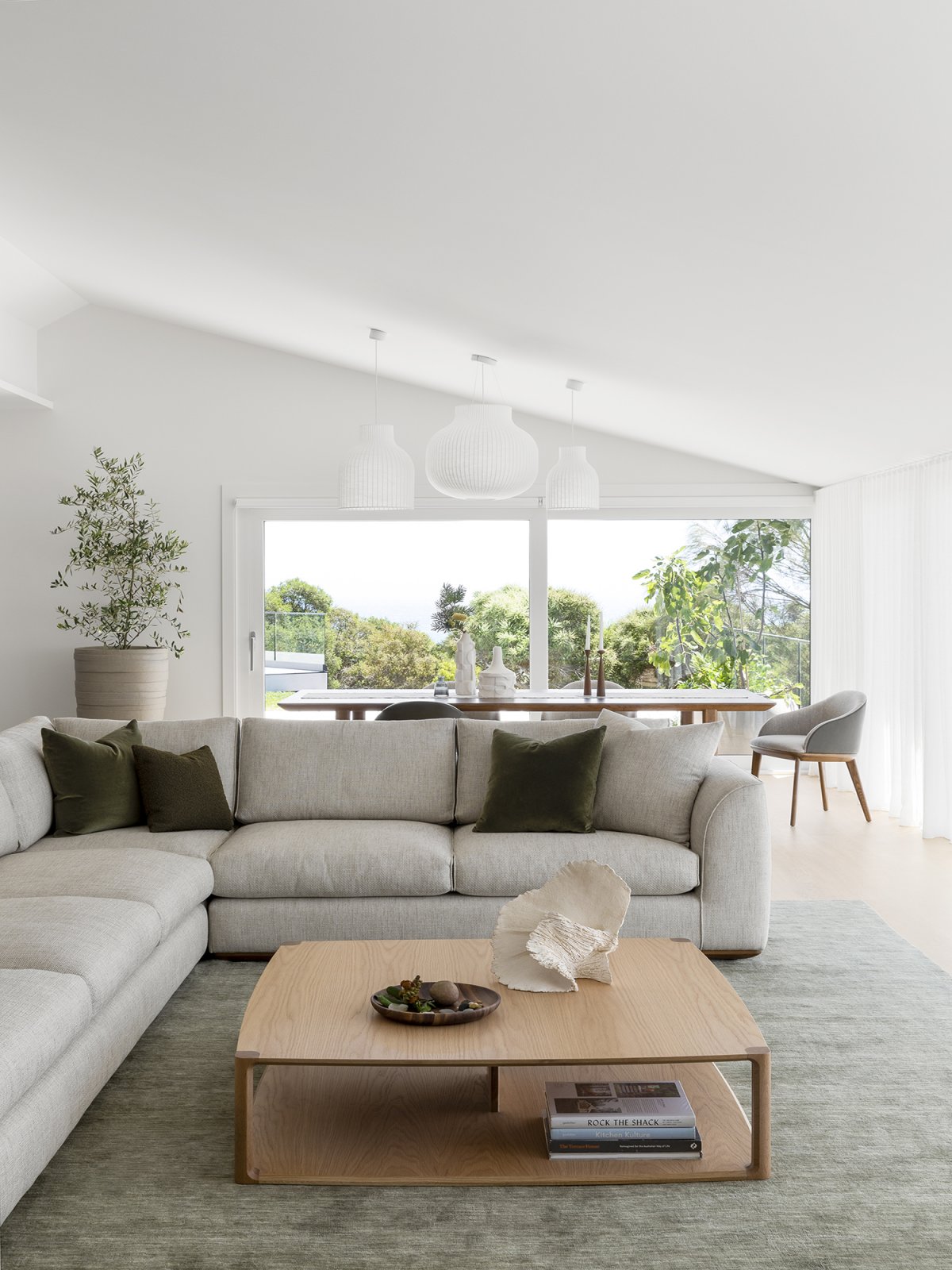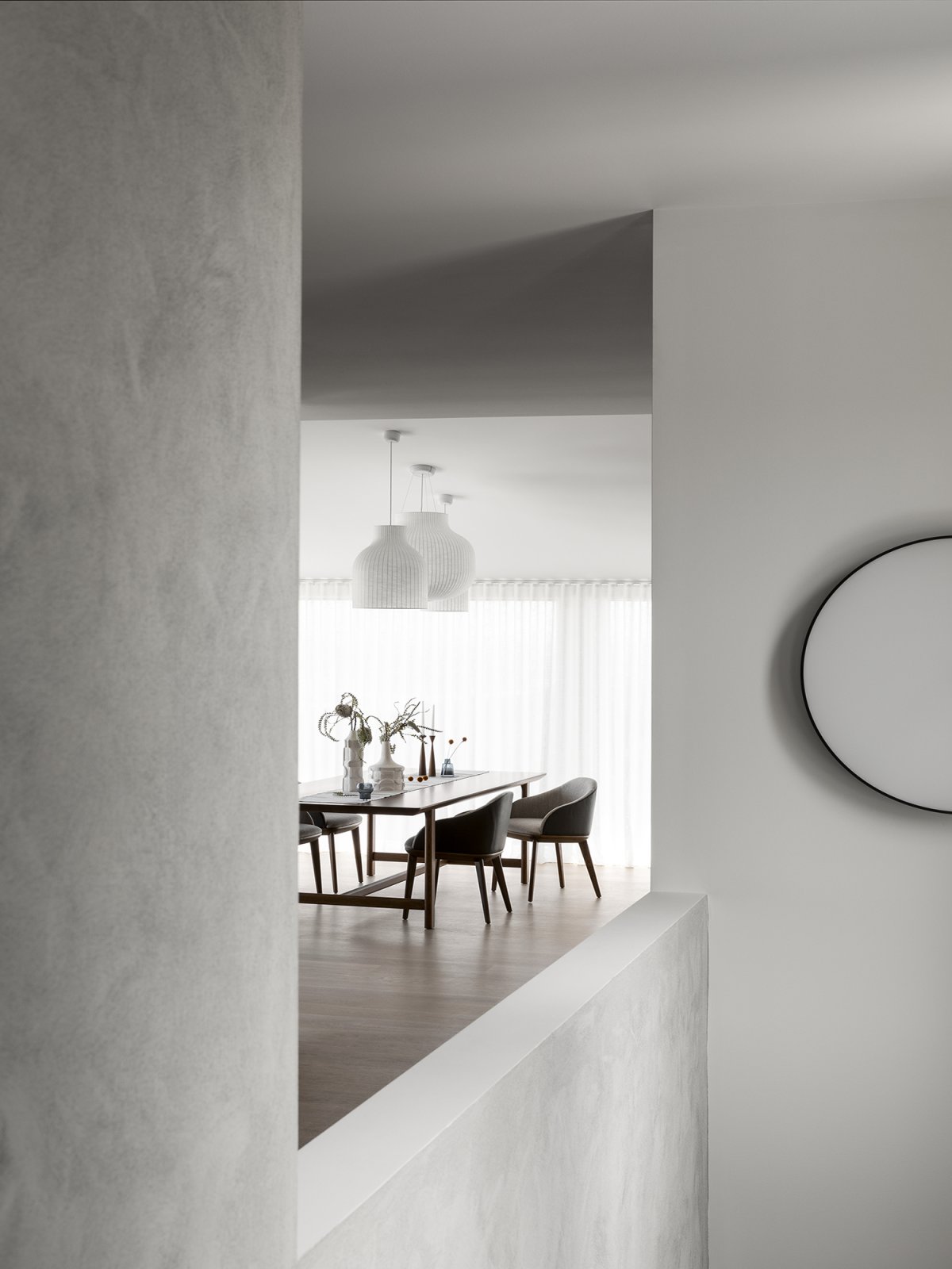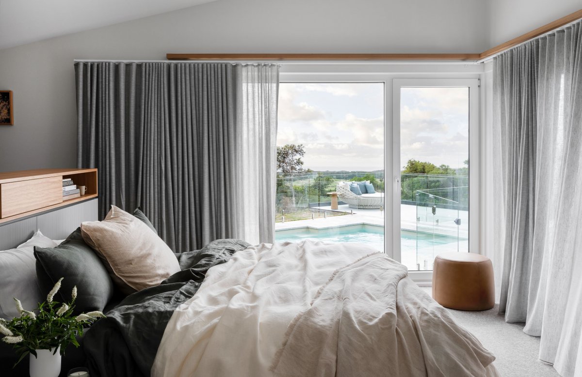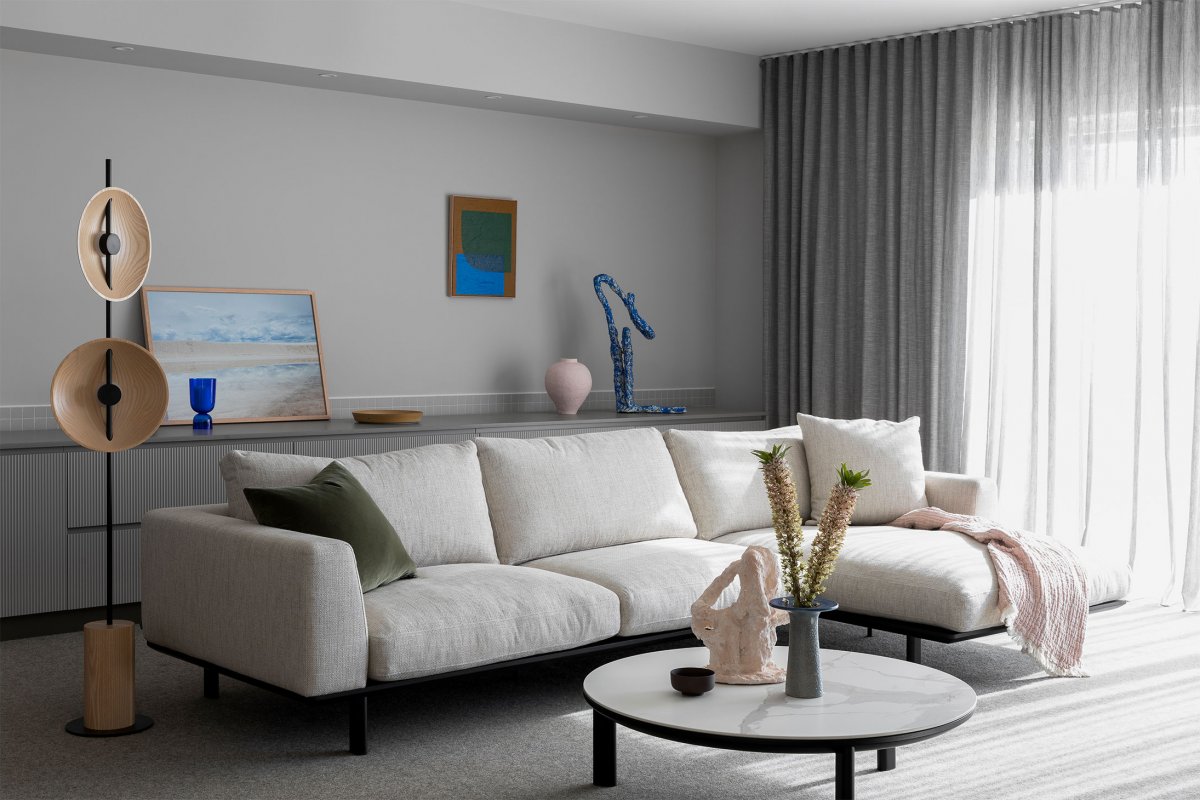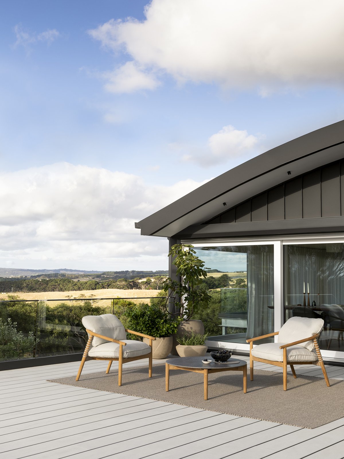 Cool, pastel tones continue throughout the house and reference the surrounding coastal environment. The combination of soft tones and natural textures successfully expresses and celebrates the landscape. Subtle tonal variations create a calming environment that allows the expansive landscape to take center stage in any event. The result is Cape Schanck as an exquisite, peaceful and communal family home.