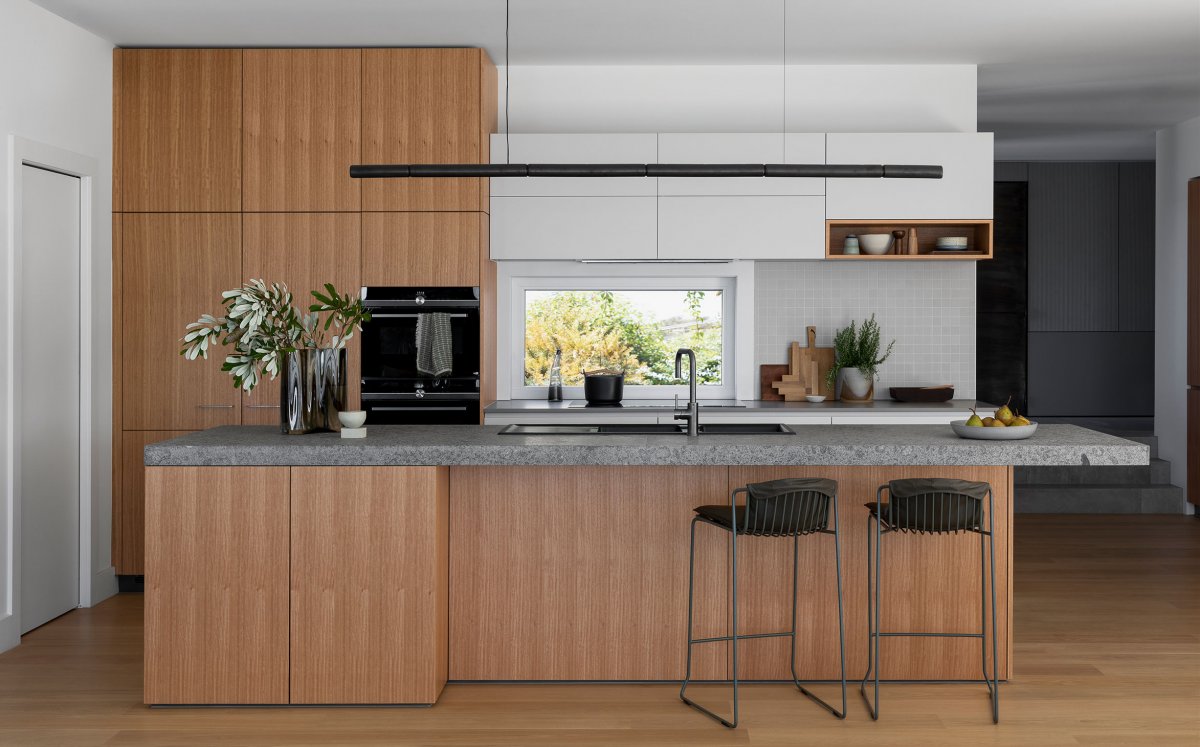 Extensive renovation work was subsequently carried out to make the house larger and more functional, while retaining an important connection to the landscape. The lower level of the home has been enlarged and is now large enough to accommodate more guests and relatives, while the upper level offers views of the entire peninsula and is primarily designed as an entertainment area centred around the kitchen. Beyond these two levels, a roof terrace was introduced to expand the entertainment space and take advantage of those epic views.
