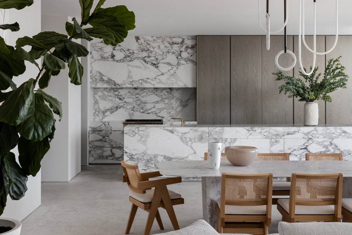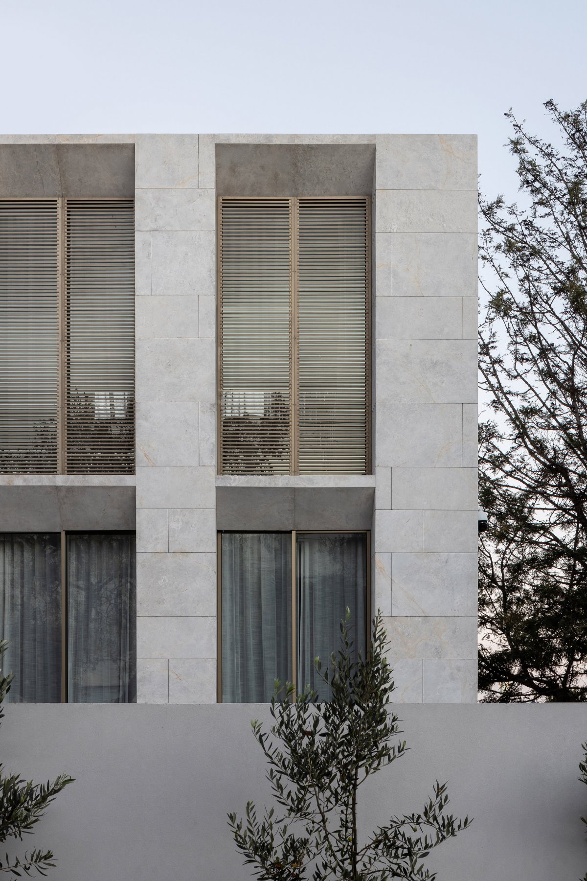 Conrad Architects has designed Grange House with a rooftop terrace and swimming pool overlooking the Melbourne skyline. The four-bedroom house in the suburb of Toorak has been described as a "split form of minimalist stone" because of its acid-etched marble cover. It was designed to comply with local planning regulations and has a different height on each boundary.