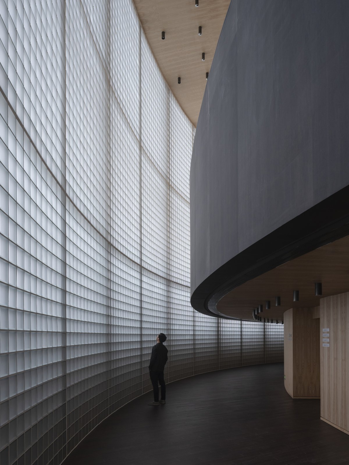 The Taoxichuan Grand Theatre incorporates two venues, a classical opera house and a black box theatre.The curved form of the horseshoe-shaped opera house is visible from the street and also extends into the foyer. Its 1,200-seat auditorium is lined with walnut veneer and framed by three balcony levels.The black box theatre has a more contemporary feel, with a flexible and mobile stage setup.The space is lined in blackened wood and can be opened up to facilitate open-air performances.
