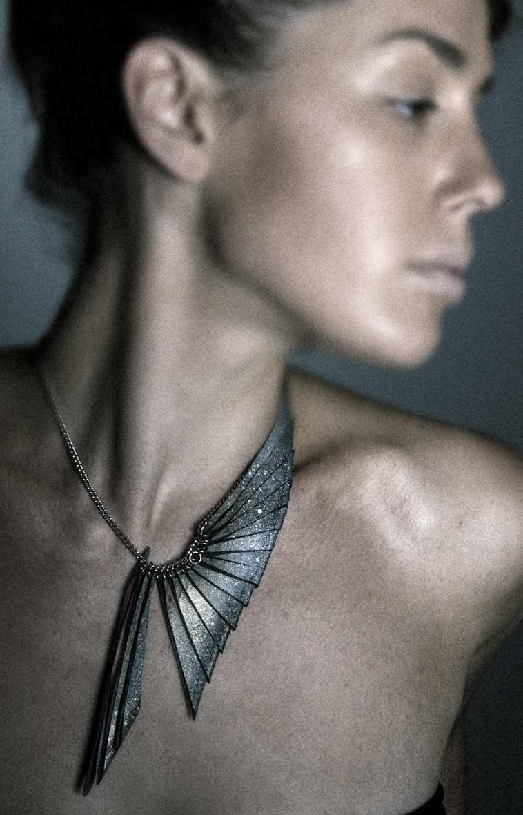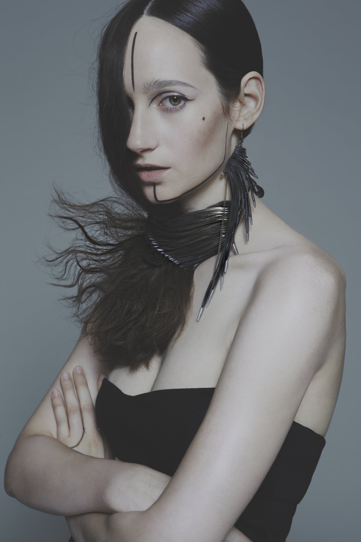 Borne out of a desire to celebrate the human spirit, Emma Ware's visual artistry and individualistic approach to the concept of jewellery undoubtedly set her apart from her peers. Emma creates wearable art to empower and inspire using sustainable processes and materials: rubber, leather, recycled metals. Made by juxtaposing malleable dark rubber with polished metal, these are intricate sculptures that are framed and complimented by the body: reflecting our curves and angles to emphasize and celebrate the beauty in nature. Not only are these pieces unique, they grow from a sustainable, ethical perspective.