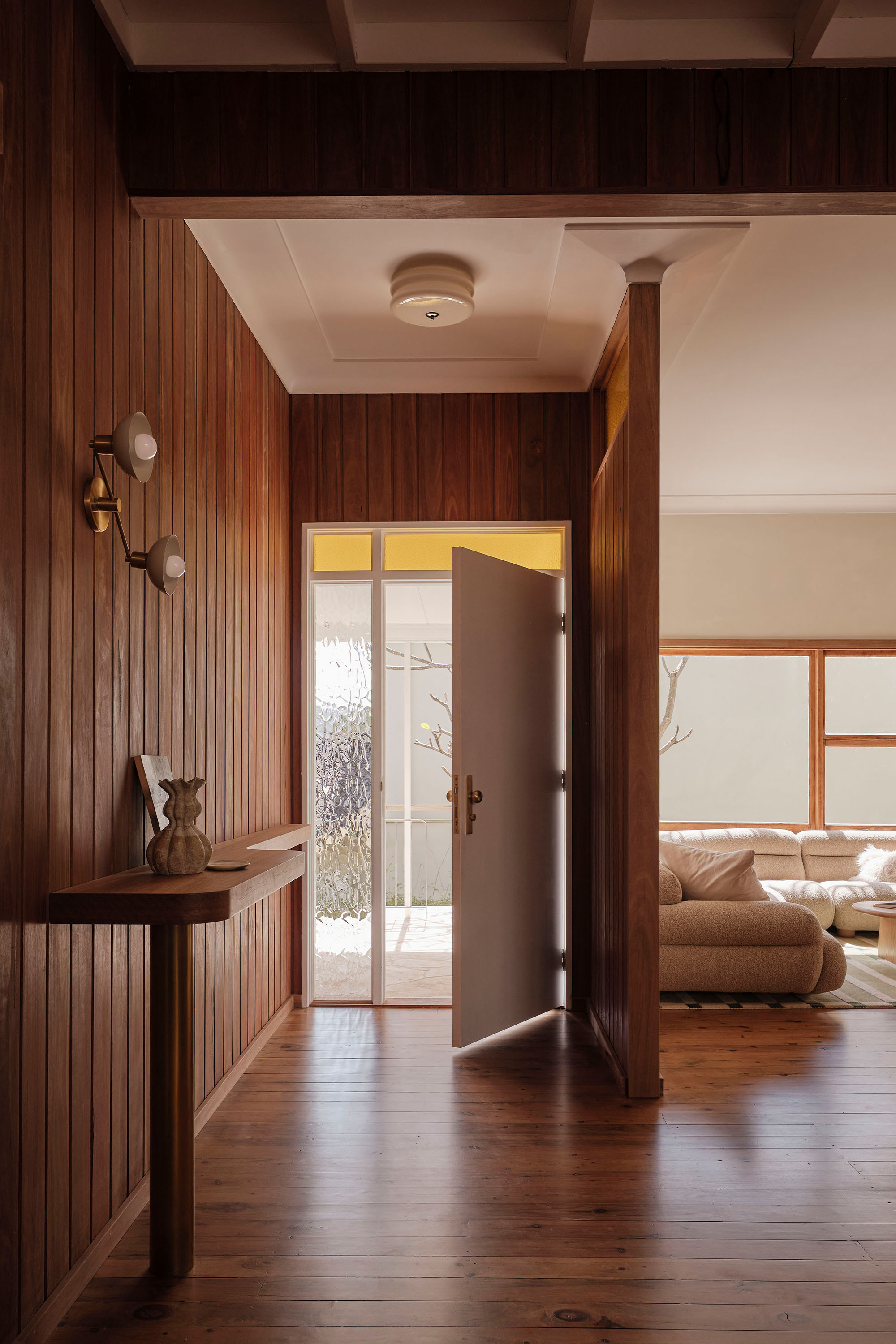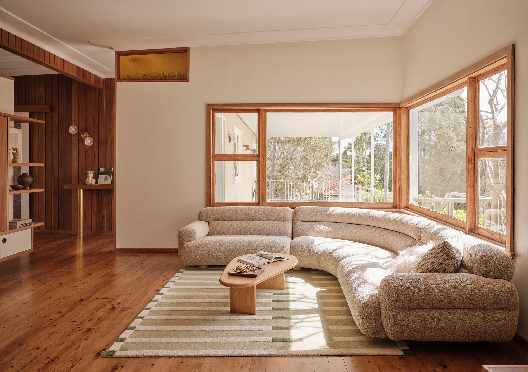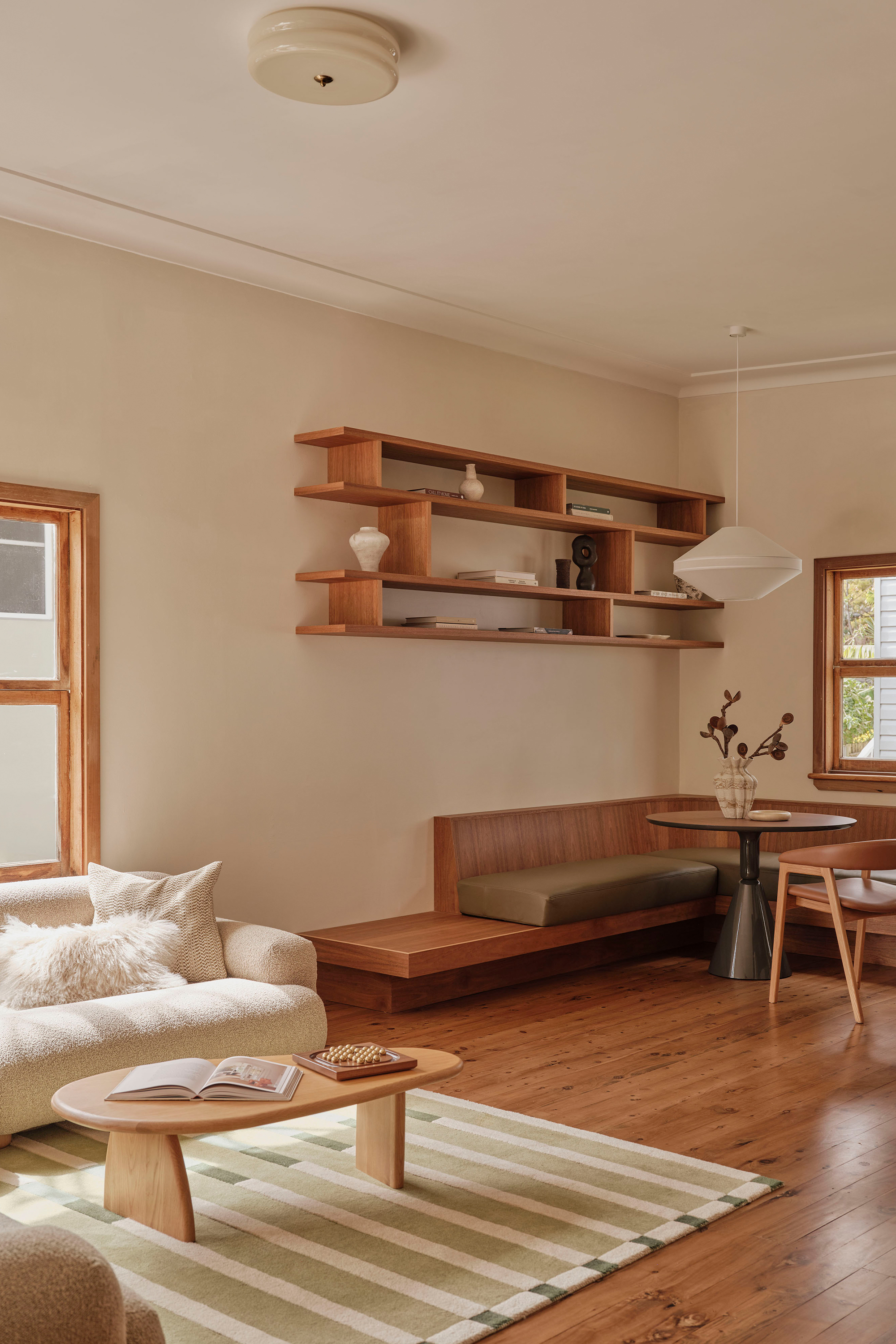This Newport residence is an original 1960’s beach house, purchased by our client for its distinctive architecture and strong bones. Our design brief was to celebrate the home’s mid-century charm, carefully retaining its character while making it relevant for contemporary living. The result is a home that balances playful 1960’s details with a fresh, modern sensibility.