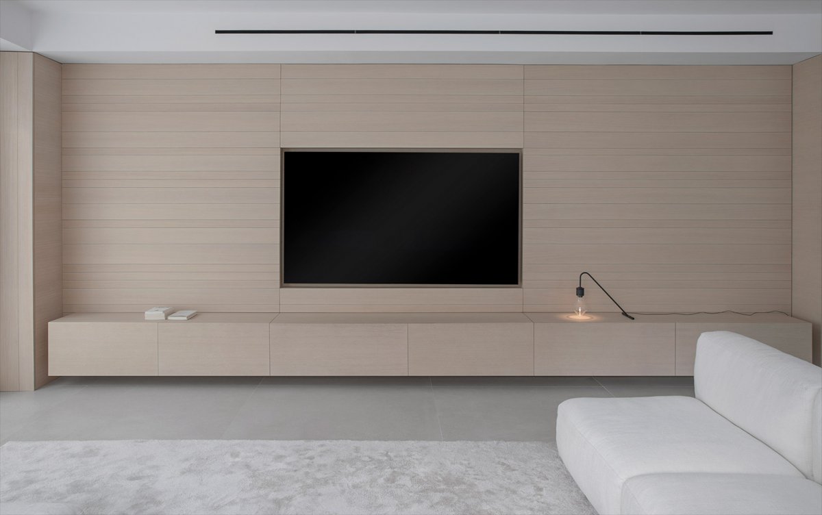 BI Apartment, Spanish designer Francesc Rife's new project in Barcelona, is defined by a visual silence that generates a few murmurs here. The irregular rhythm and conscious detail of the oak slats give the whole project a unique narrative.