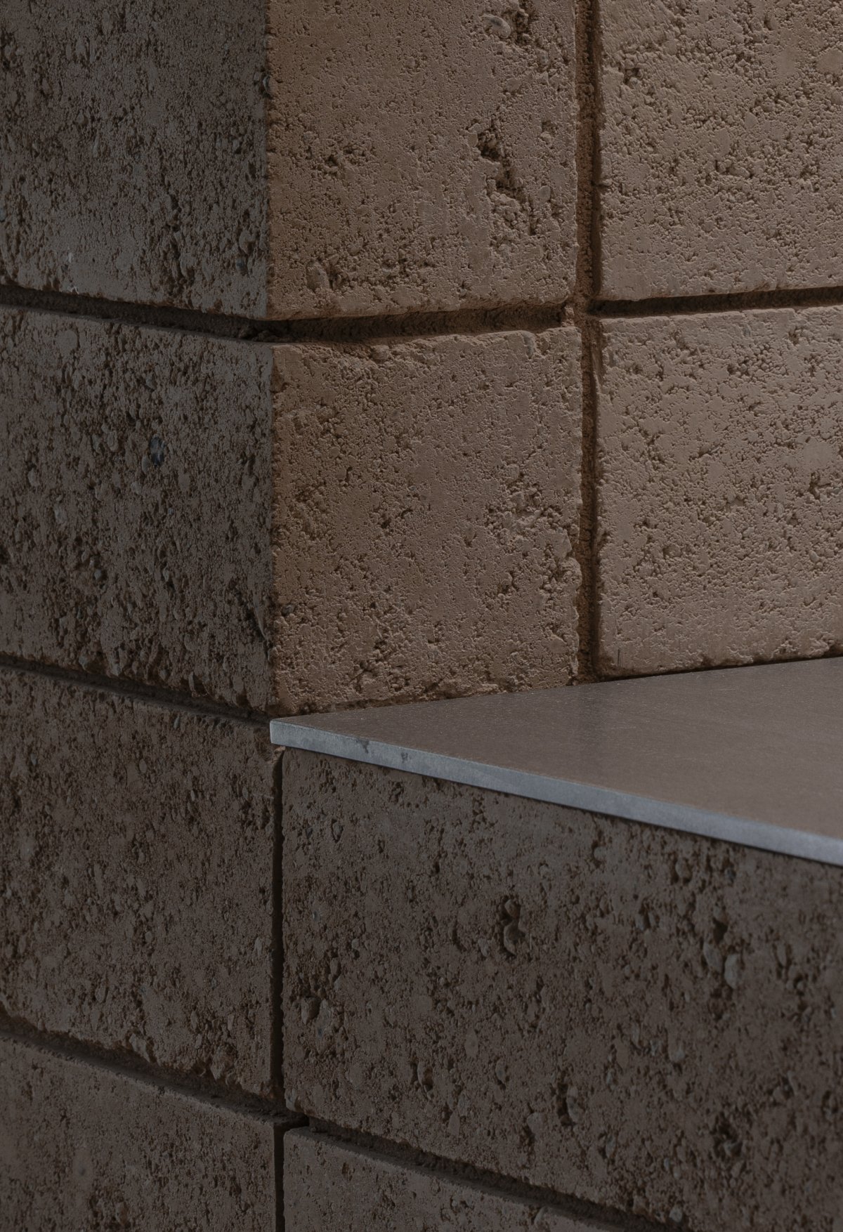 The few colors are mainly found in natural materials such as compressed earth blocks, whose compositions define both the interior and exterior layout. Inside, this material is responsible for dressing the open kitchen and a large bar counter, as well as longitudinally separating the entire service area of the restaurant, which is accessed through three large openings finished in black steel.