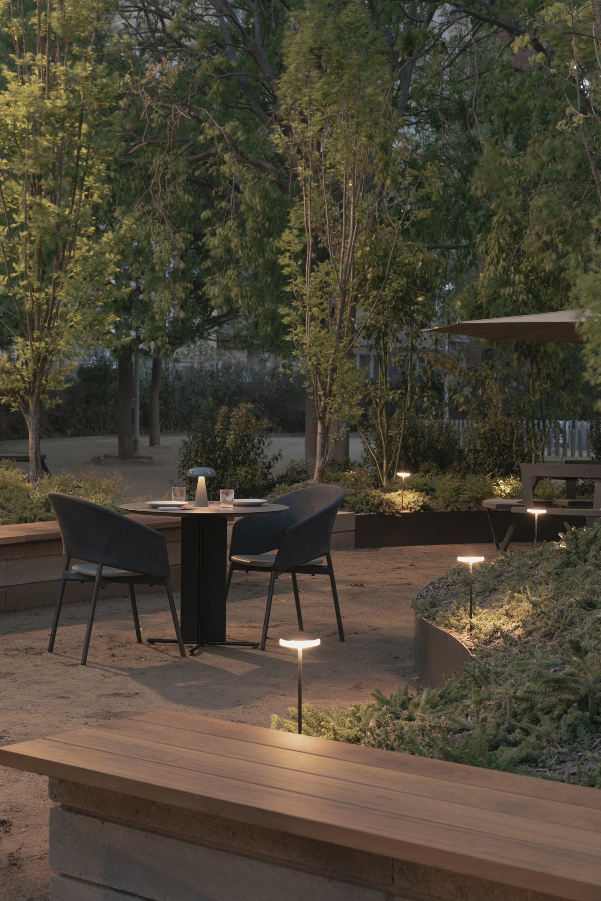 On the terrace, the blocks help organize diners at different heights and frame the flower boxes with exuberant vegetation. To achieve a leafy sensation, new trees are strategically added to the surrounding ones to offer diners the magic and mystery of the forest.