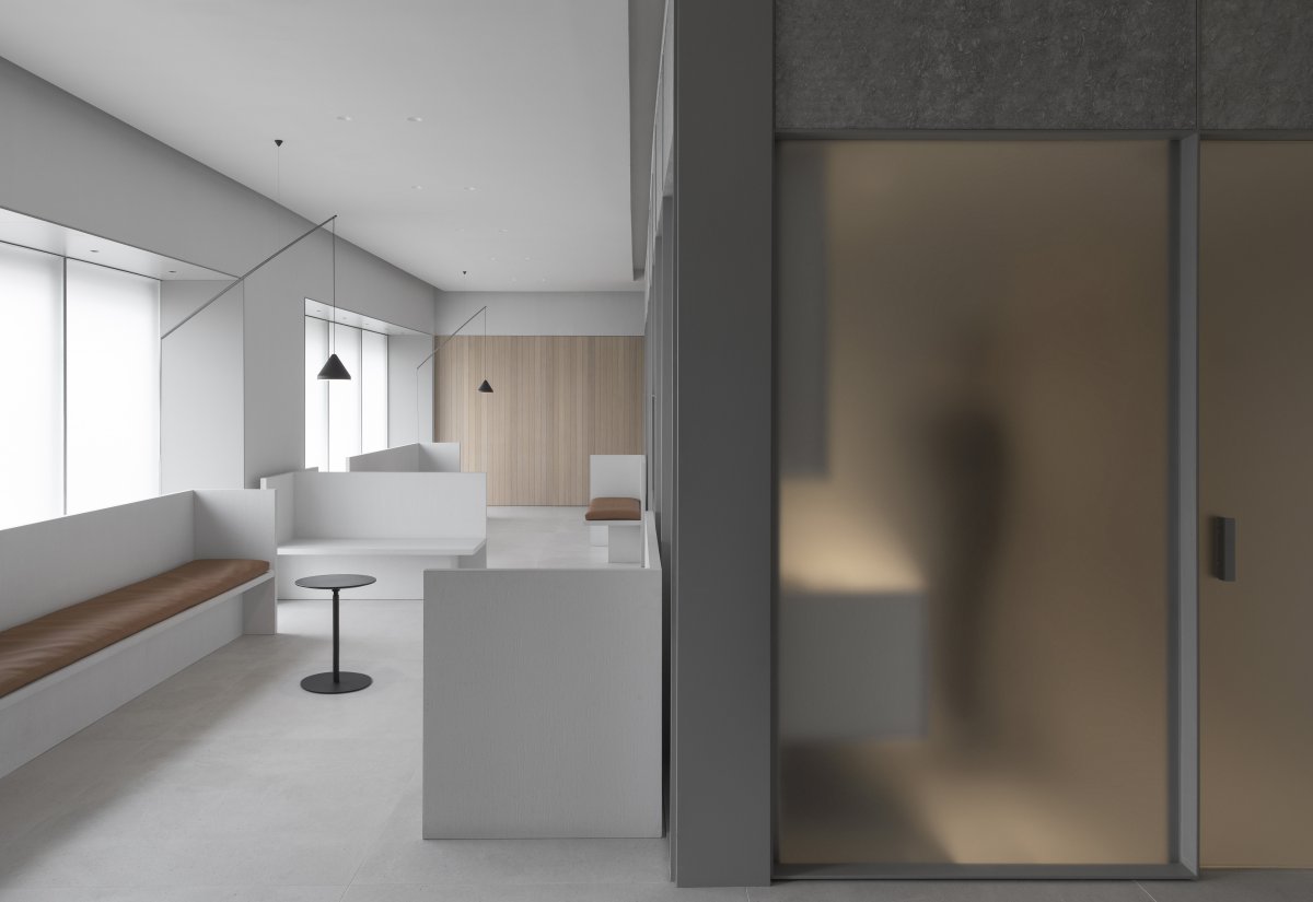 The interior of the Bousono Vargas clinic is divided by optical glass in order to avoid the feeling of isolation of the interior sub-spaces, thus presenting a clear state of interface. As a special material, optical glass not only has permeability, but also can be dimmed according to the needs of privacy protection. The mode of visual and occlusion is easy to switch back and forth freely.