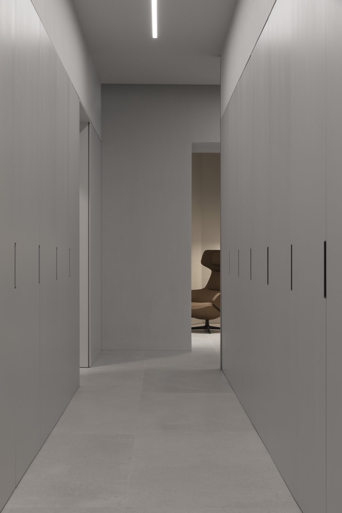 In the reception room, smooth paint and materials such as natural stone, optical glass and vertically grooved oak finish open up a continuous dialogue, their combination presents the final result of the coordination of the office, meeting room, multi-function room and other Spaces. The interior space is based on a clean neutral palette, interspersed with a variety of light fixtures designed in specific points to help raise the aesthetic standards of the space.