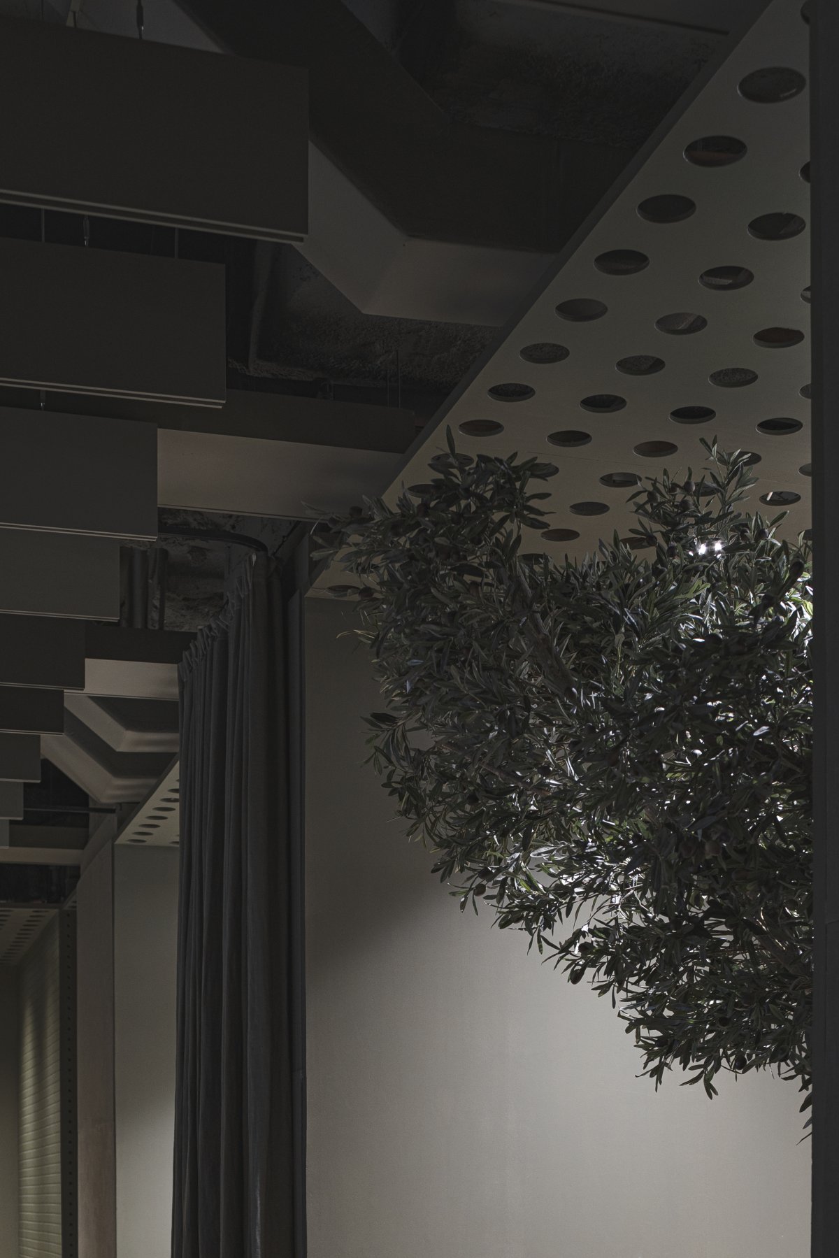 In order to highlight the fresh energy of the restaurant, the studio chose the elegant green as the main color to define the tone of Ricard's dishes. At the same time, soft cushion sound-absorbing board is used in the soft fabric to ensure the sound insulation effect; Some of the walls and ceilings have been fitted with painted lamps of the same colour to hide visible lighting. Two vertical gardens at either end of the room add to the drama of the space, and the light casts a mysterious shadow effect on the textiles.