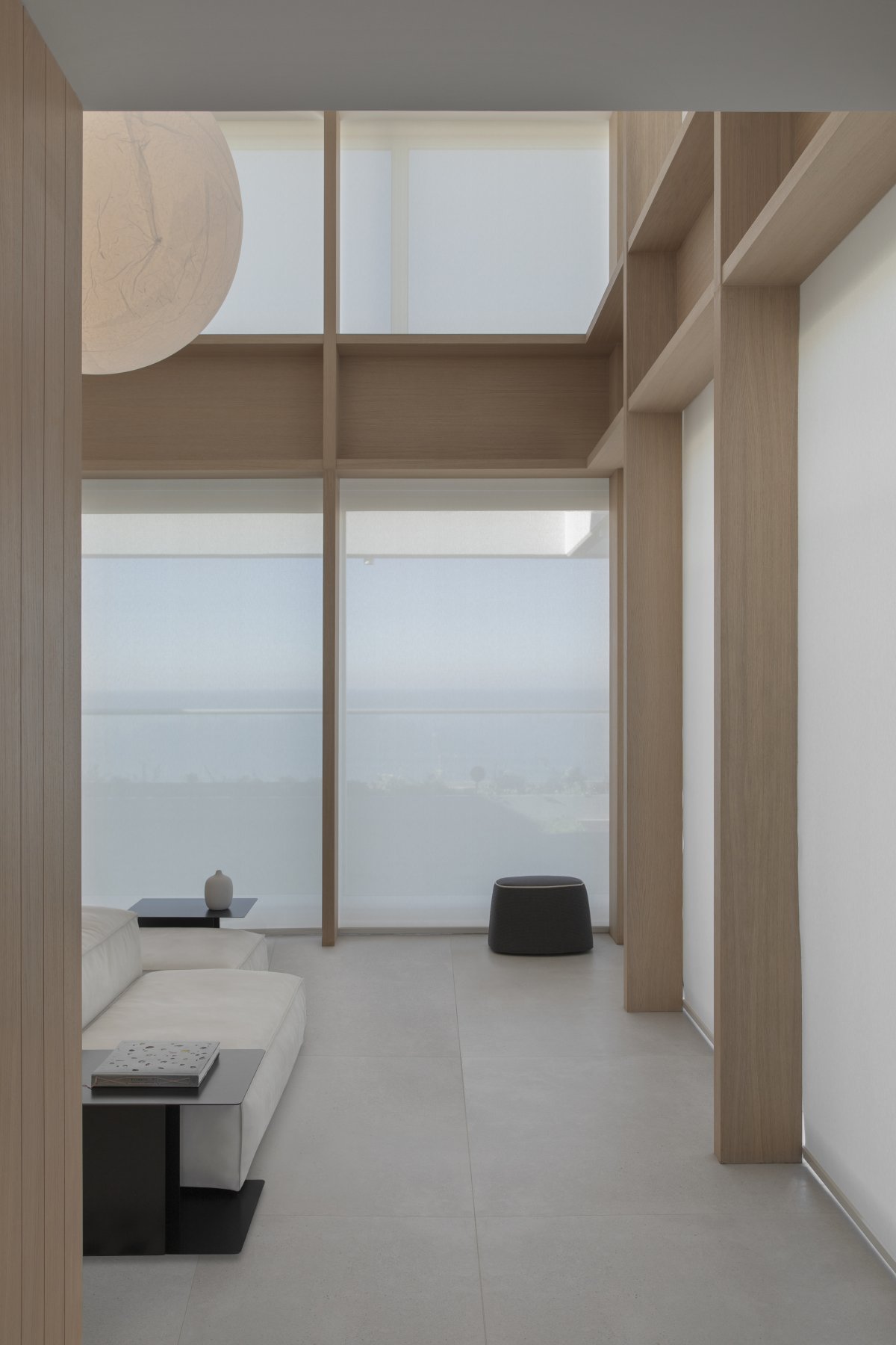 Natural wood work is the most important formal language of Mat Apartment. No matter the continuous wood work facade, or the nodal approach of vague grille or slot, a single material shows the purity of space. As for the living room area, the wooden frame structure with a certain scale variation creates a visual internal frame view, which echoes the natural seascape of Uruguay's Punta Del Este behind the semi-veiled flowing white gauze.