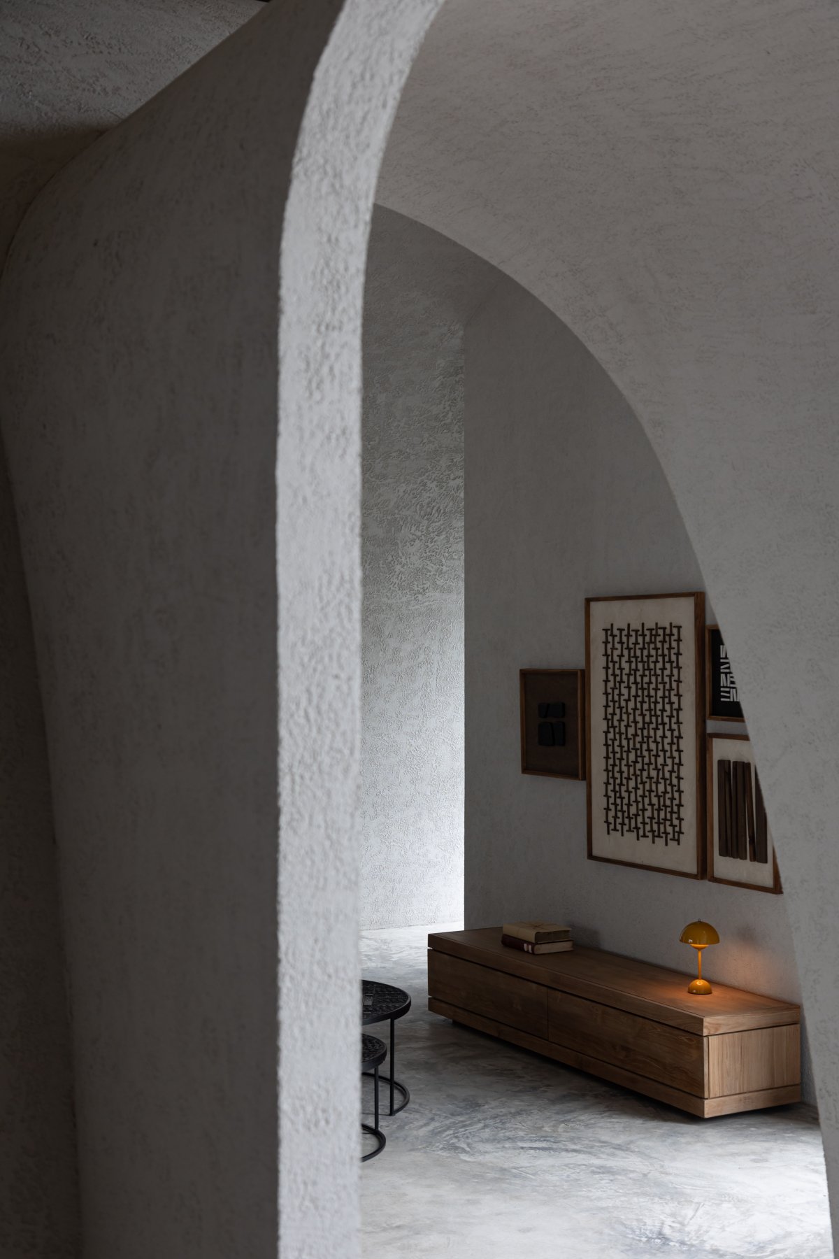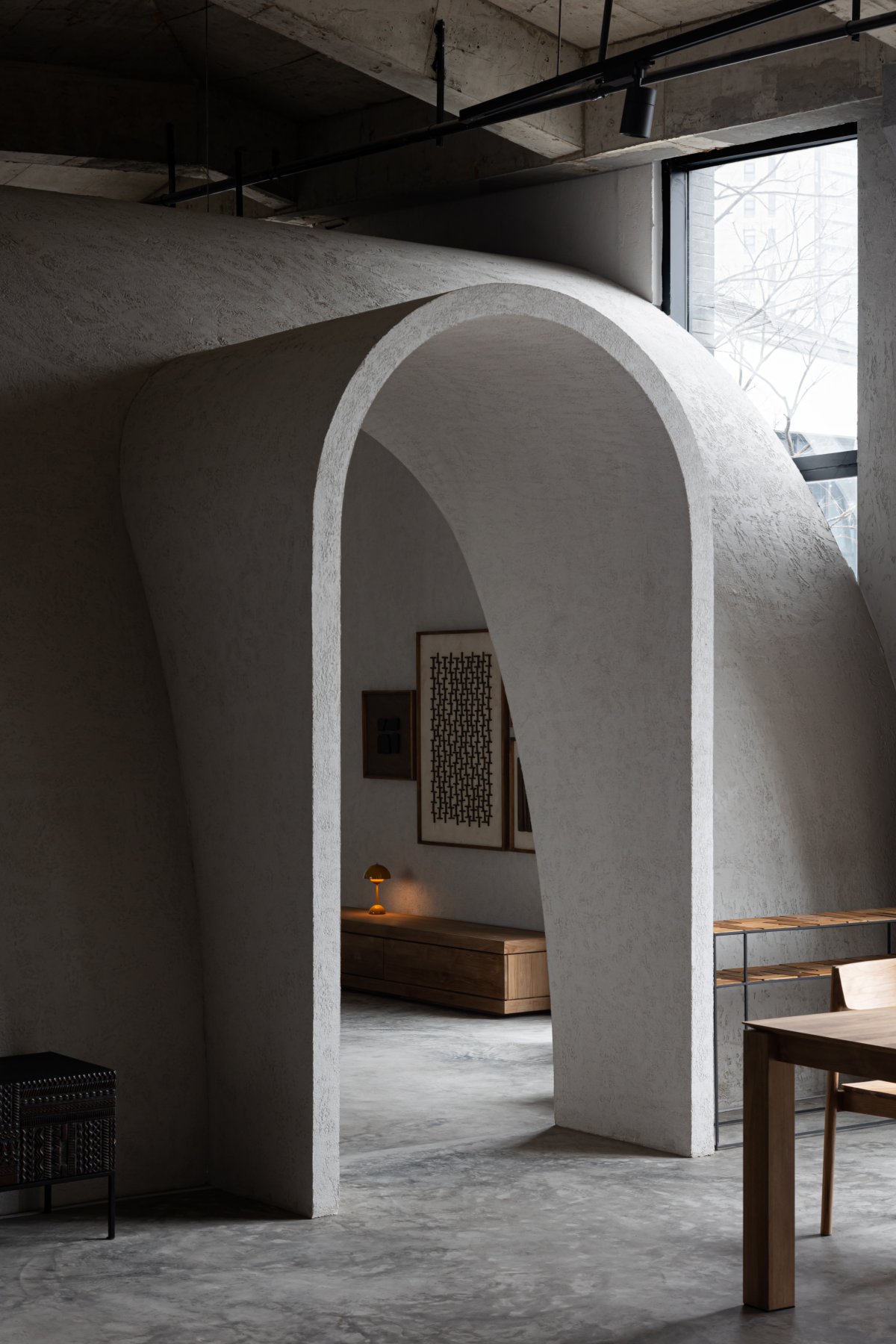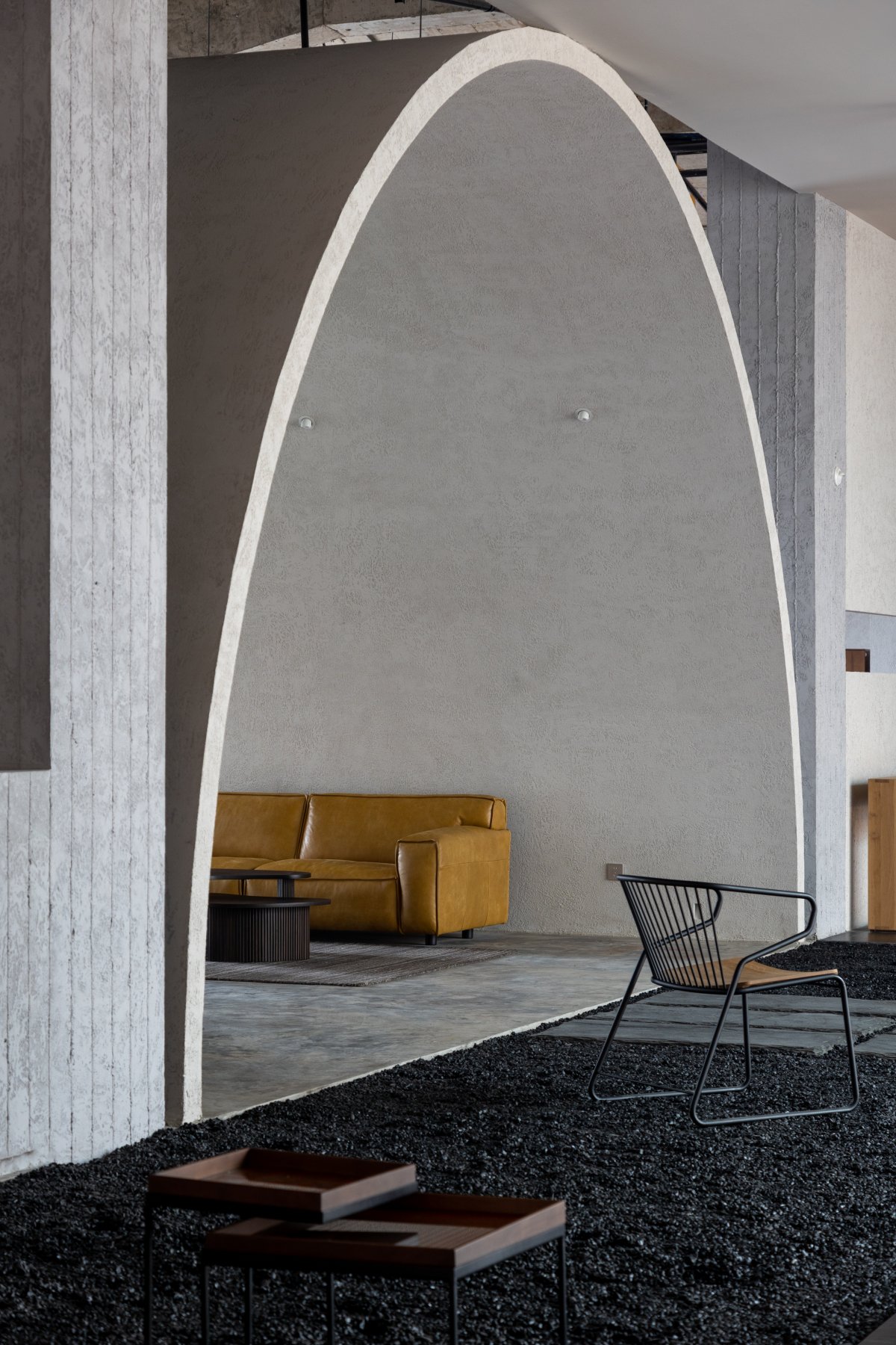 The design team responds to people's sensory experience while creating material, extending the display units of different products from the core area, and breaking through the boundary level of the internal and external space with the arch of parabolic bars, presenting the unique encapsulation of cave space. As the initial shelter for human beings, its solid and stable characteristics bring people a psychological sense of security.